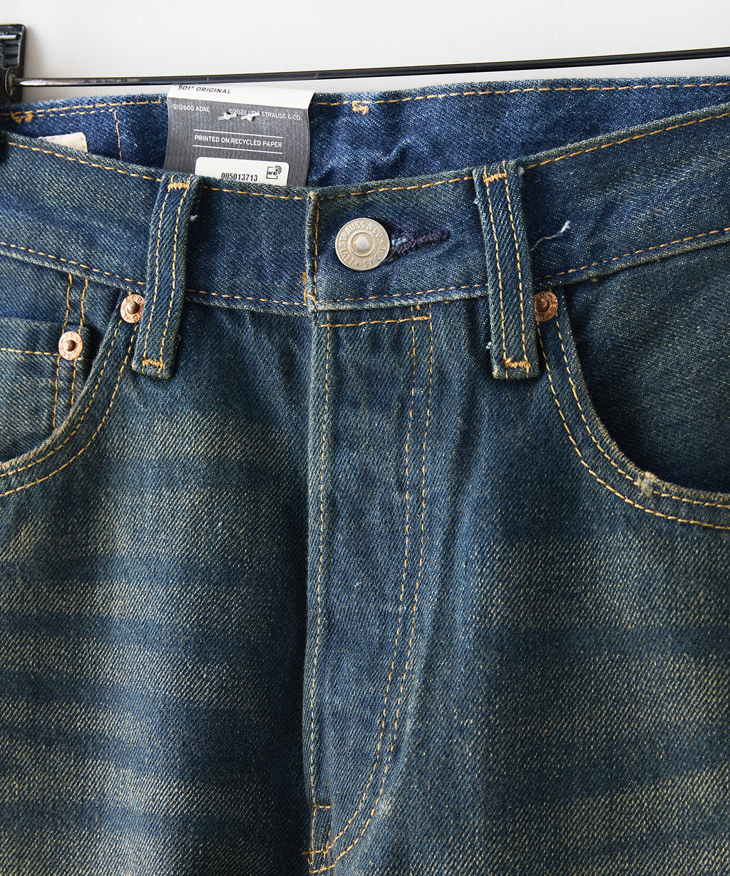 リーバイス(LEVI'S)の長い歴史の中で築き上げた5ポケットというクラシカルなデザインはそのままに、オリジンである501はモダンなストレート。経糸に異なる太さの糸をミックスしたデコボコ感のある表情が特徴的で、デニムの原点を思わせる、穿き込むほどに味わいを増すスペシャルデニムとなっている。カラーは、ヴィンテージ加工されたアンティークウォッシュ。ウエストが広がり、すっきりとしたヒップ周り ・バックポケットの開口が大きくなり、利便性アップ ・膝から裾にかけて、スリムになり、よりモダンなシルエット。