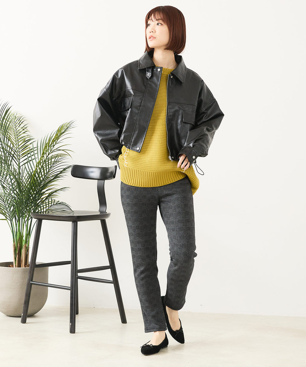 レザージャケットやジャケットを合わせるとしまった印象になります。