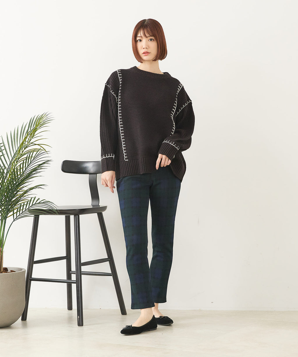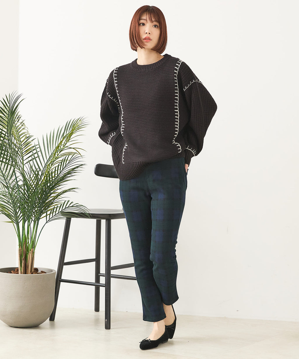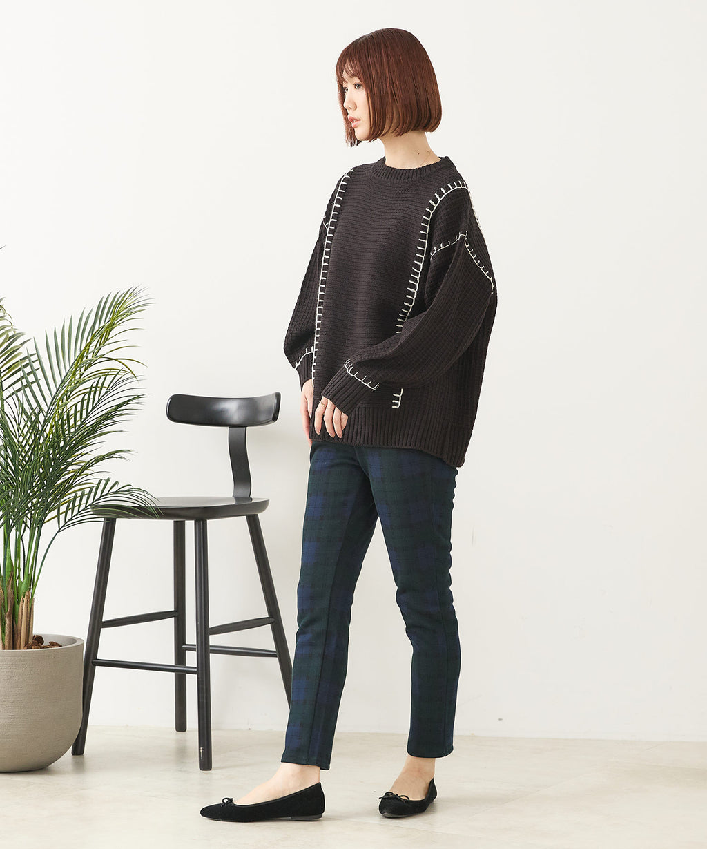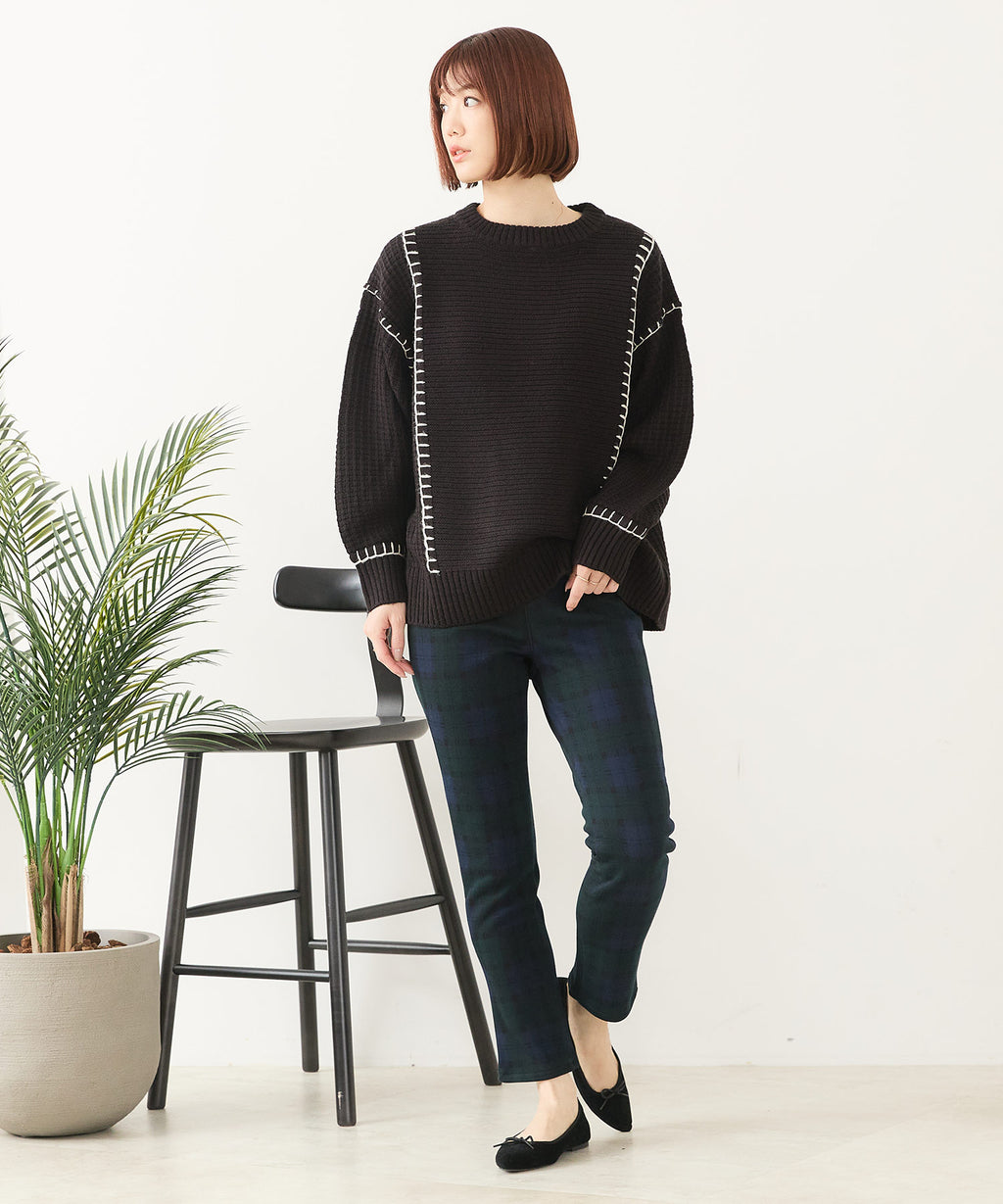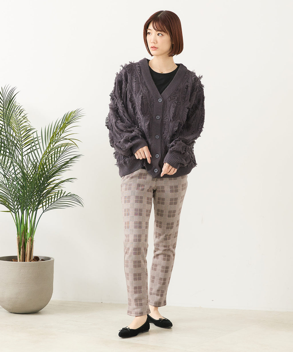 トップスにビッグシルエットのパーカー、シャツ、ニット、Tシャツを合わせるとゆったりスタイルに!