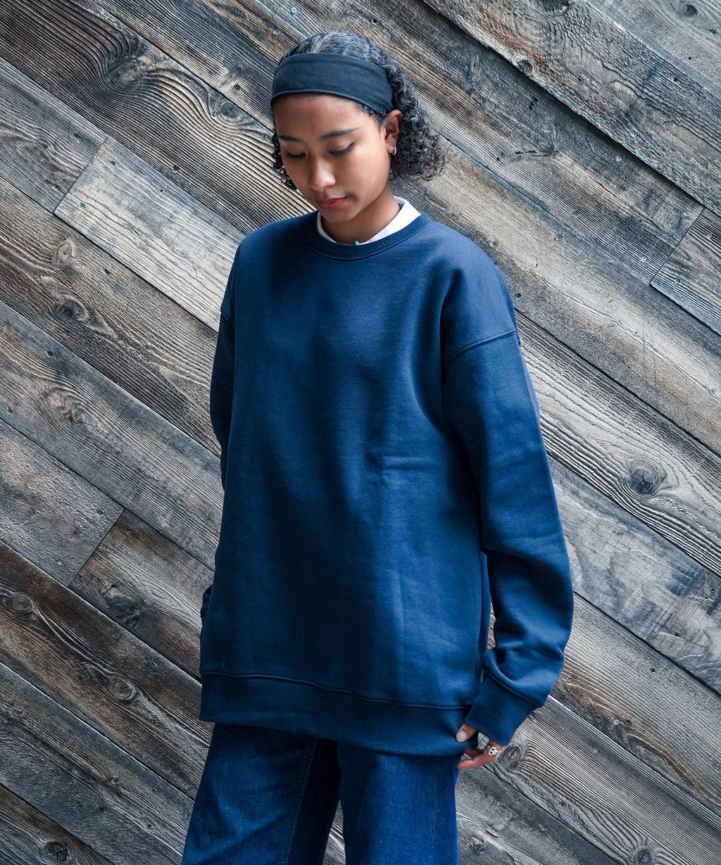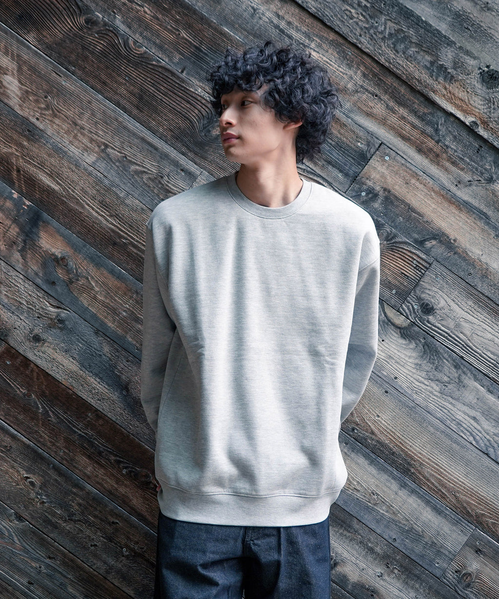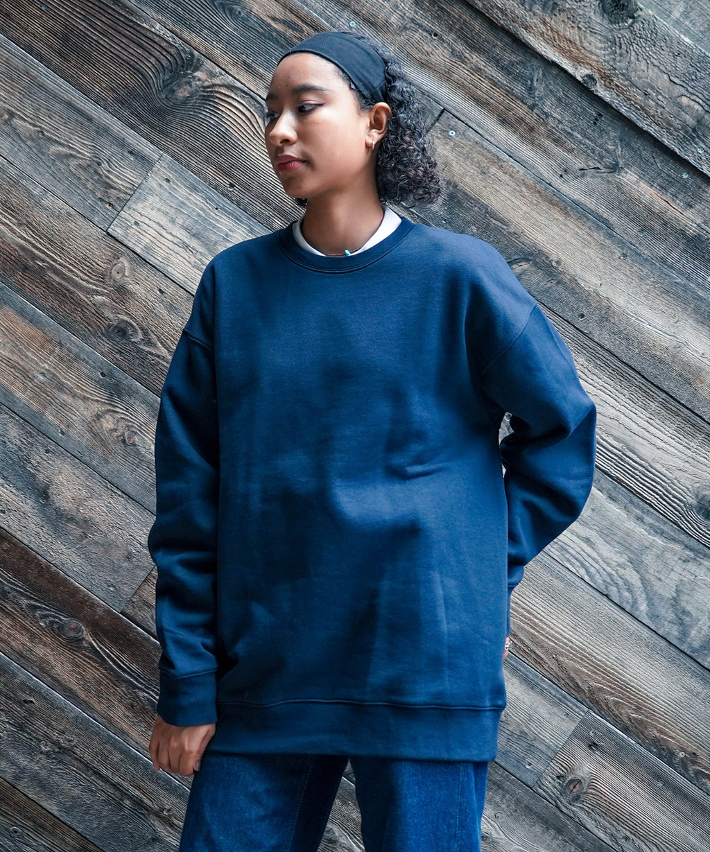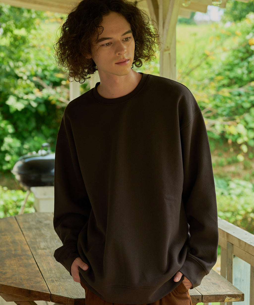 裏起毛素材のヘビーウェイト生地を使用したクルーネックスウェット。