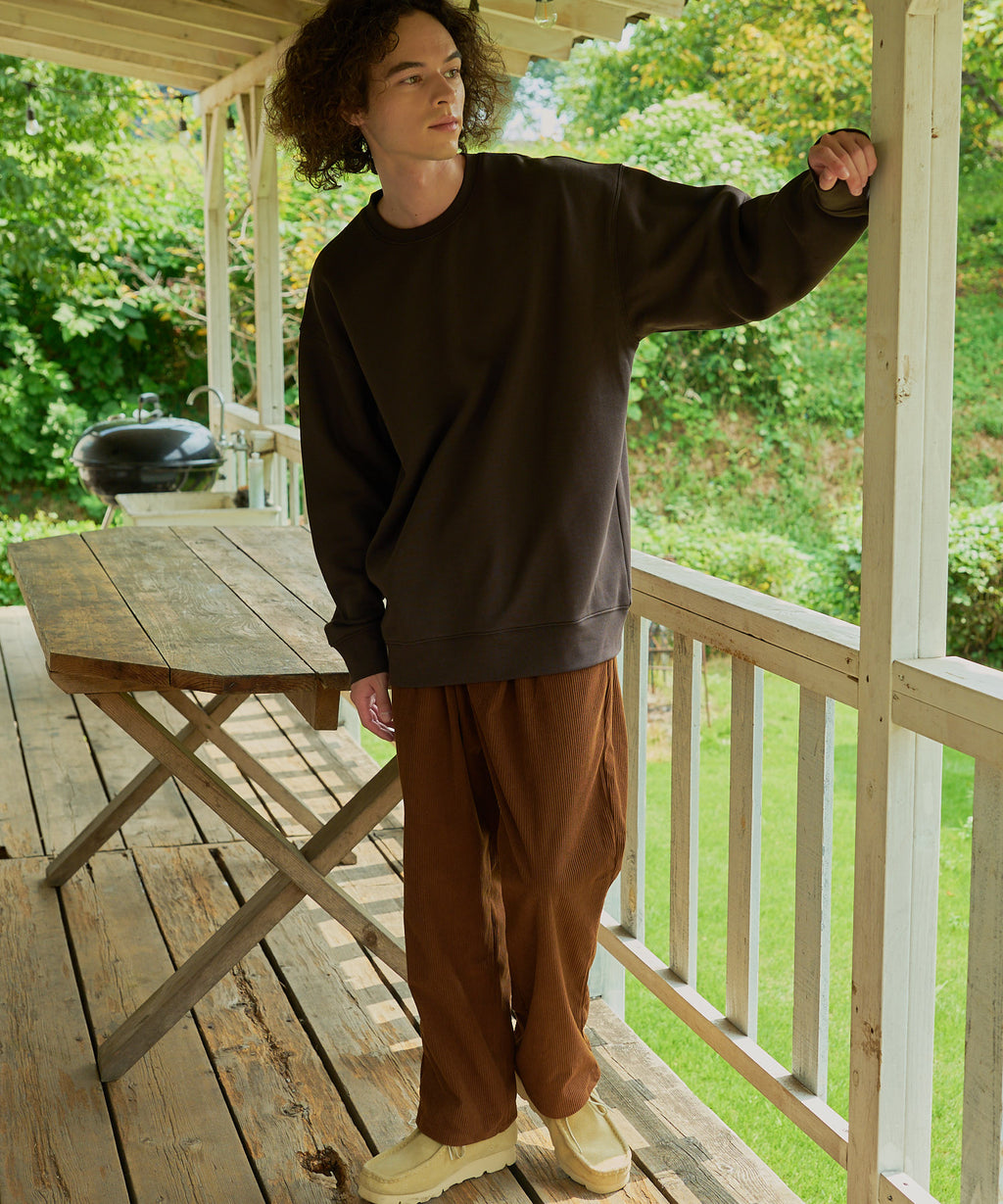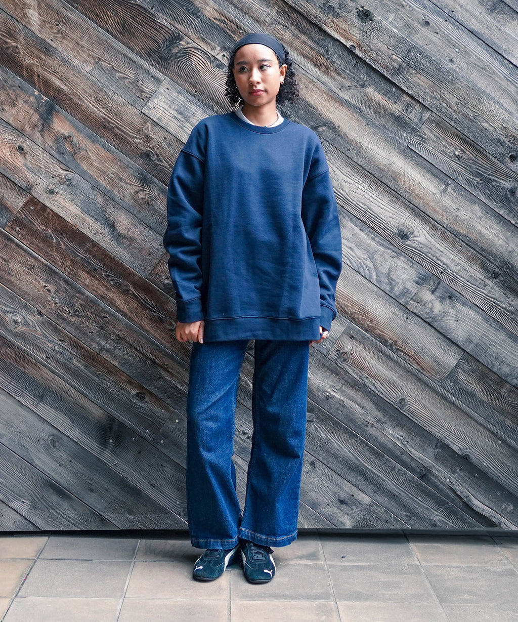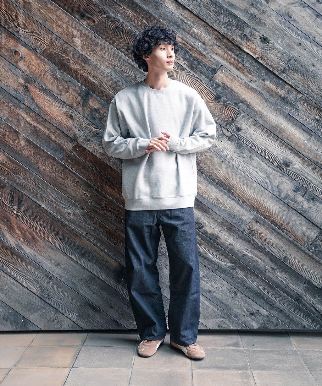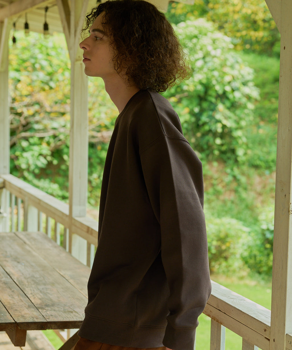 裏起毛素材のヘビーウェイト生地を使用したクルーネックスウェット。