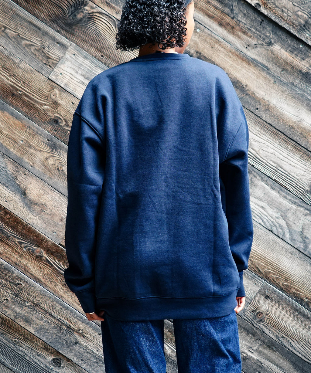 裏起毛素材のヘビーウェイト生地を使用したクルーネックスウェット。