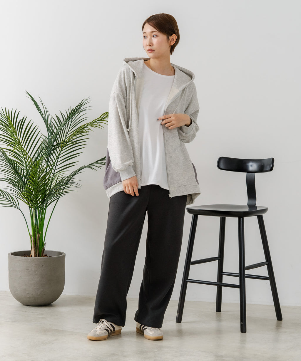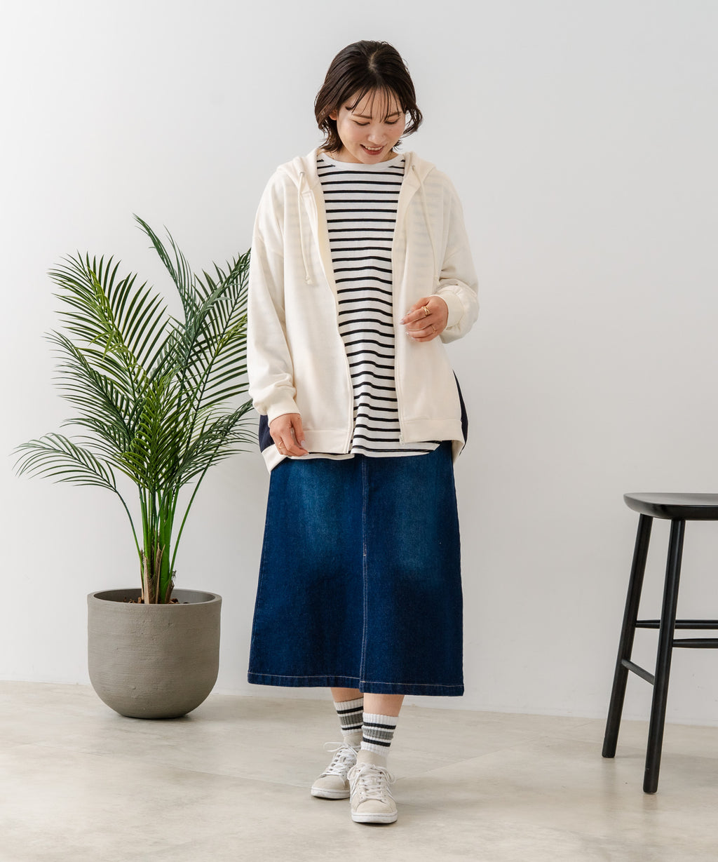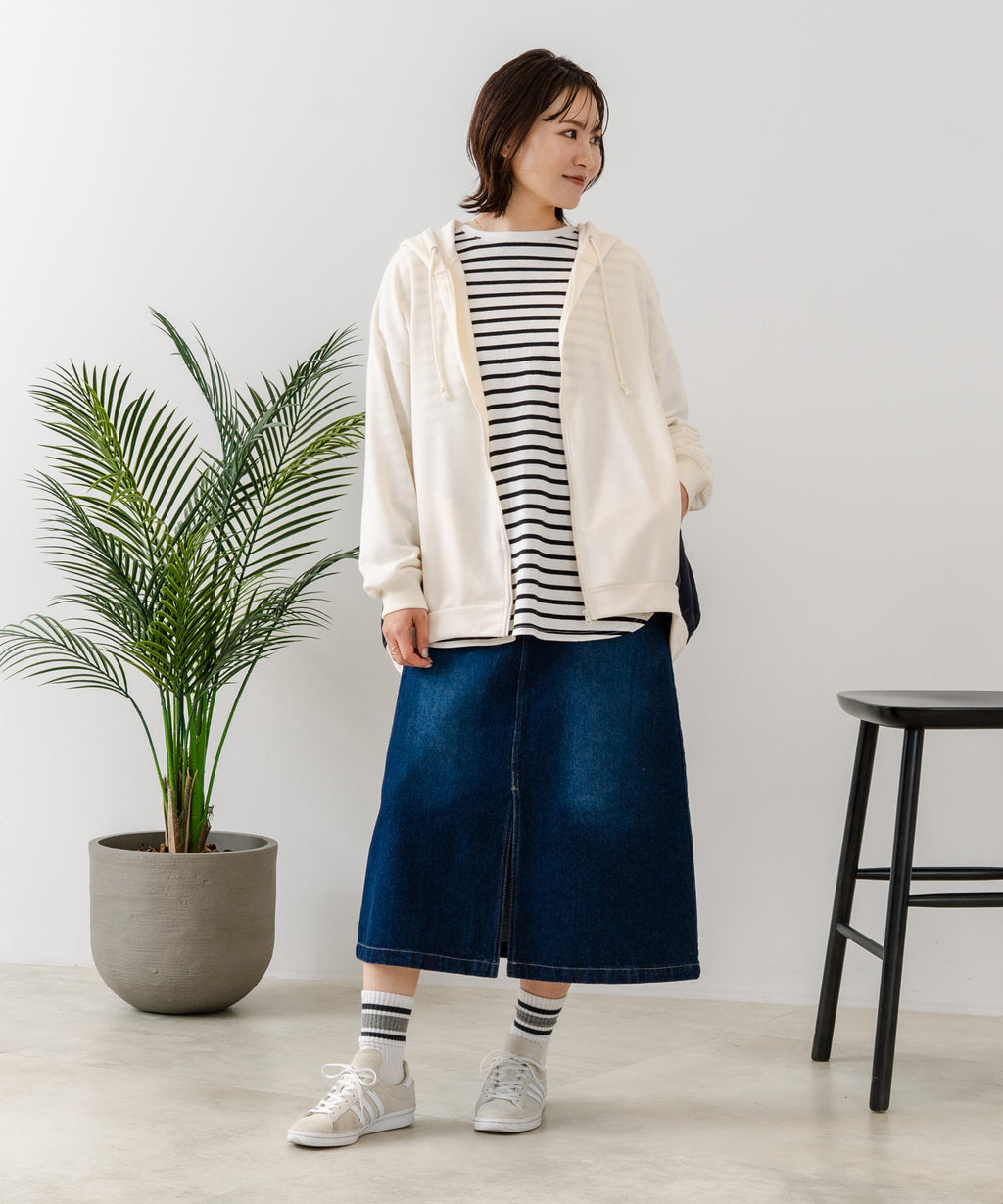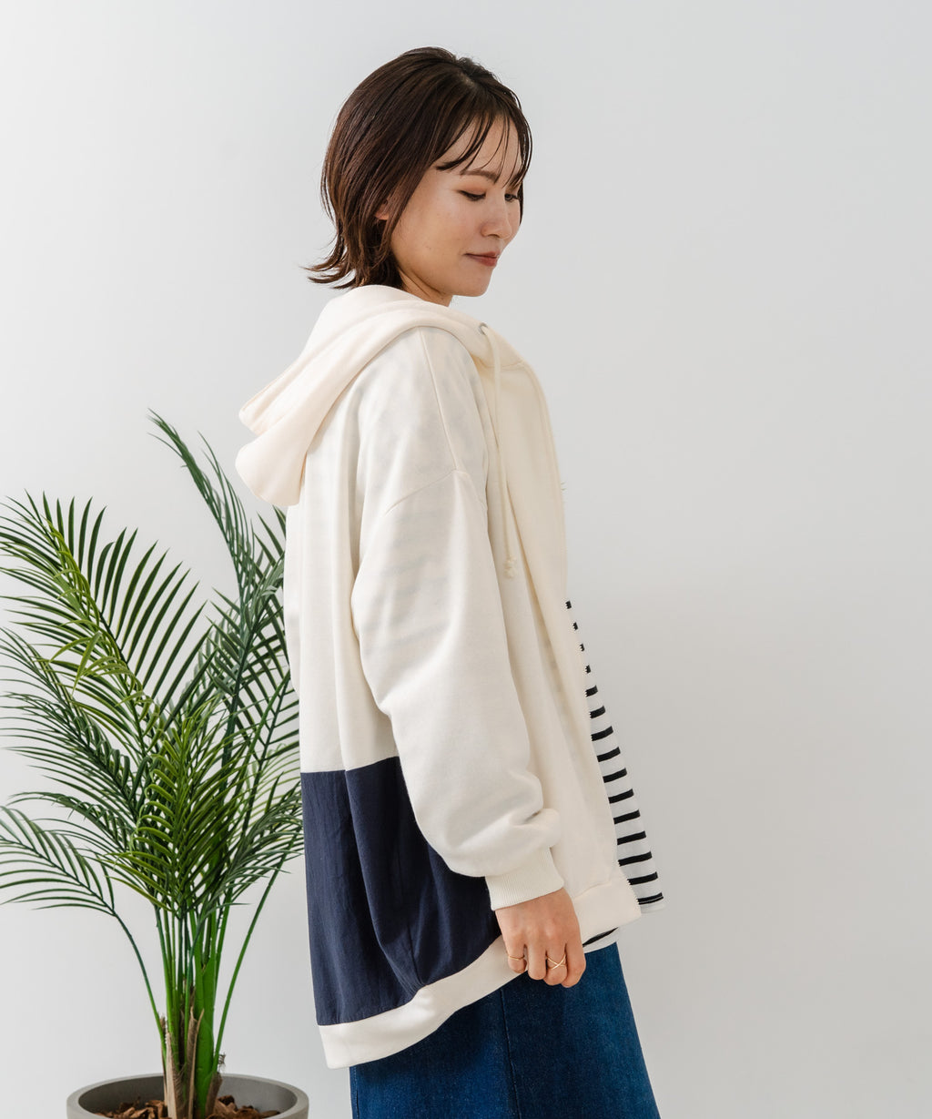 コクーンシルエットが特徴のフルジップパーカー。