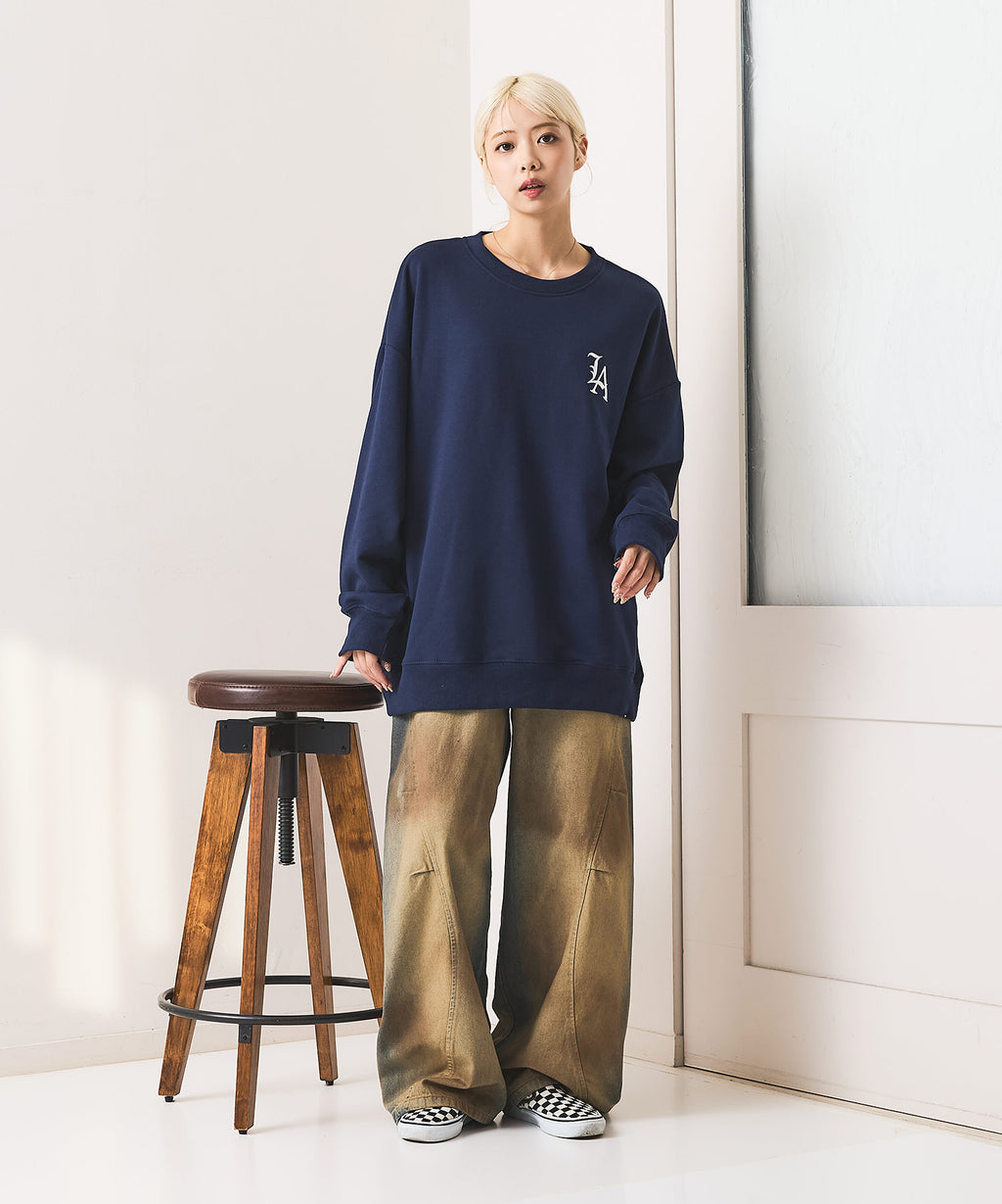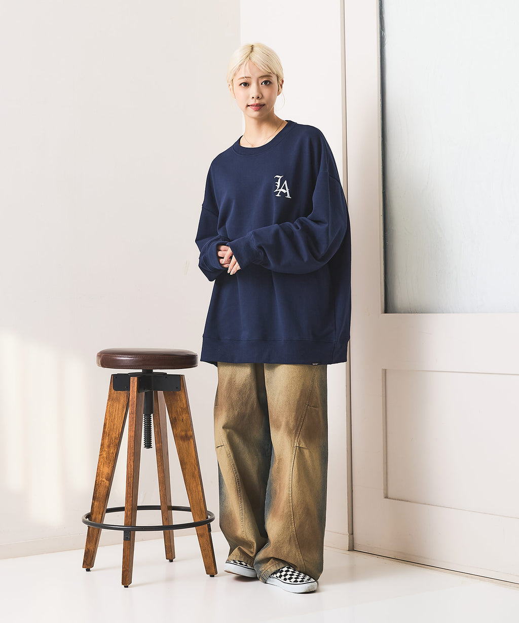 【SAVIER:サビアー】LA ロゴ刺繍 ルーズスウェット 【セットアップ可能】/ LA Logo