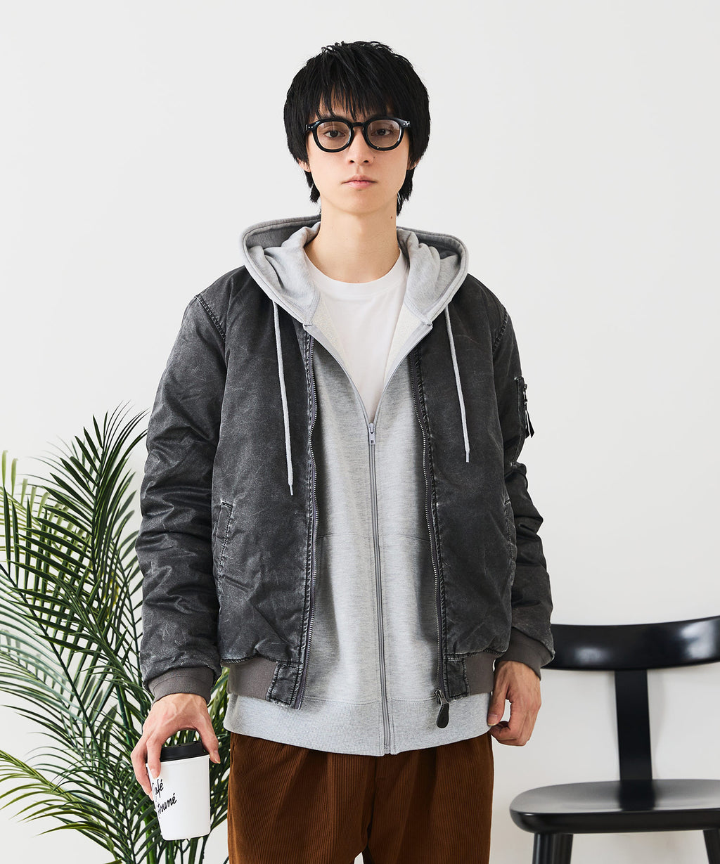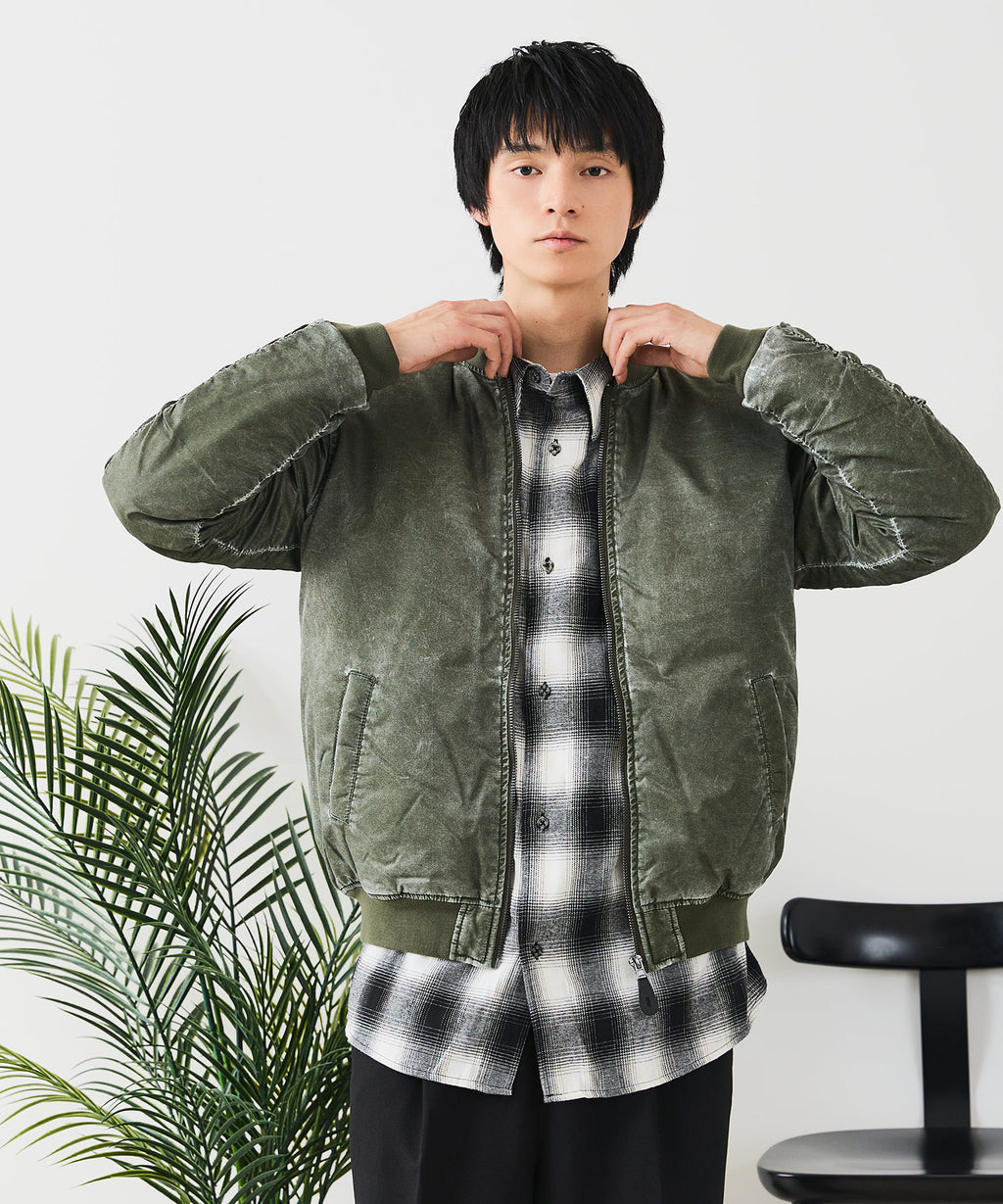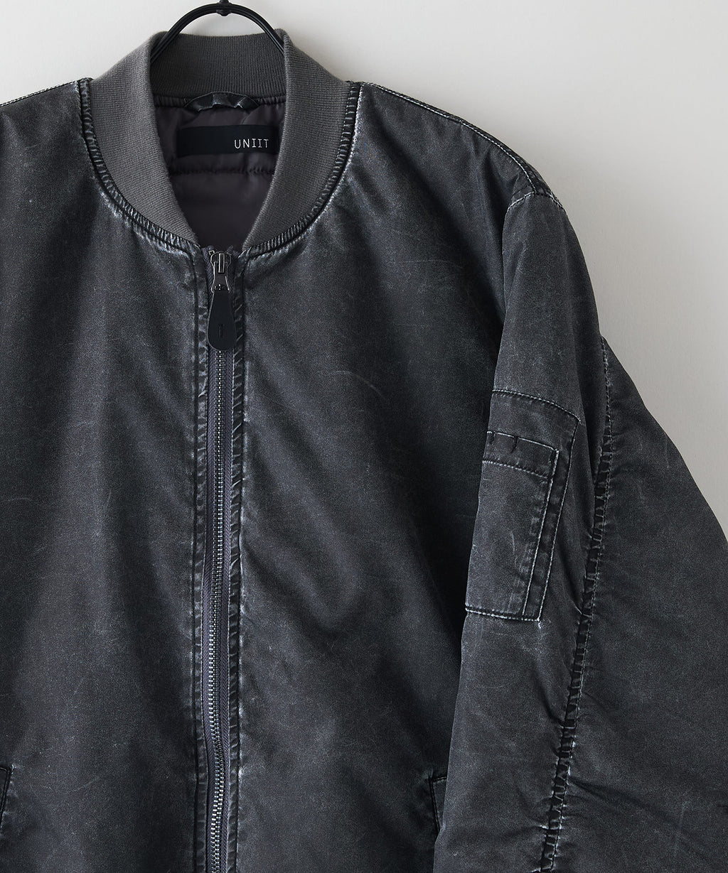 【UNIIT/ユニット】 ヴィンテージライクナイロン オーバーサイズMA-1 古着加工