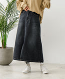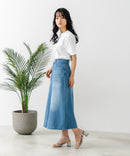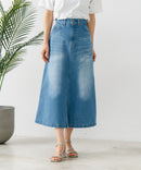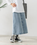 大人っぽさを計算されたオールシーズン使える、ロング丈のデニムスカート。
