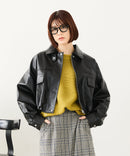 ショート丈にレトロなシルエットがバランス絶妙なフェイクレザーブルゾン。