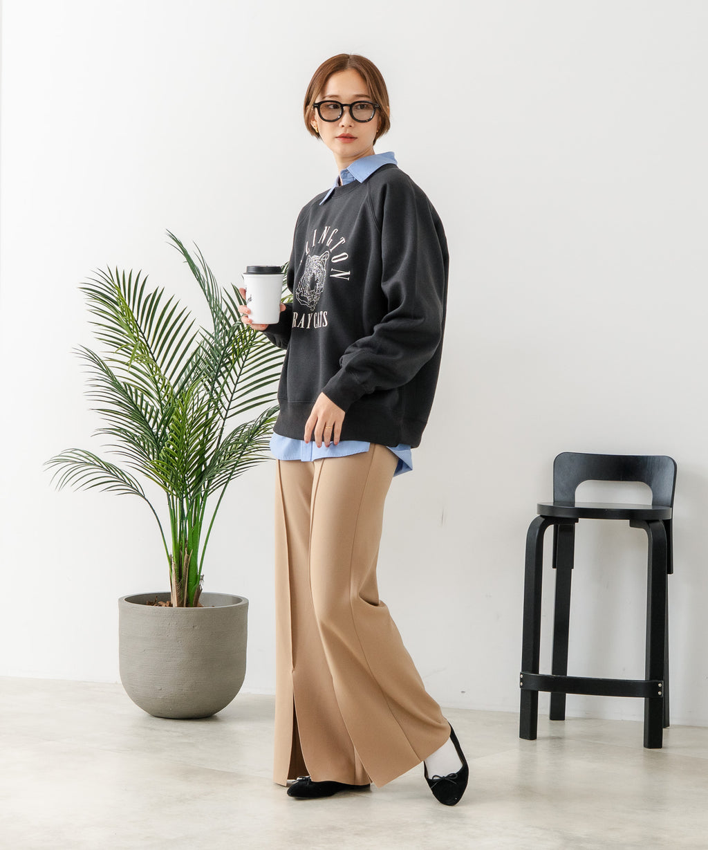 トラックパンツと合わせたスポーティなスタイルや、デニムパンツやチノパンでカジュアルミックスな秋服コーディネートもおすすめです。