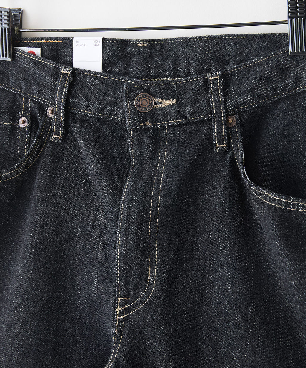 1981年のデビュー当時に使用していた、強度が高く肌ざわりの良いこだわりのRING糸に回帰。13.75オンスデニム生地を使用し、インディゴの濃度を変えて加工によって使い分けています。ワンウォッシュ用には、インディゴ濃度にこだわり濃く、糊の濃度も微妙に調整した綾立ちの美しい生地を使用。ストーンウォッシュ用には、やや浅めのインディゴで、すっきりとしたアタリ感が出やすい生地を採用。