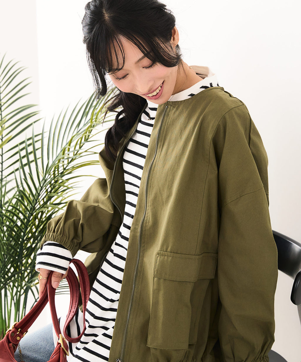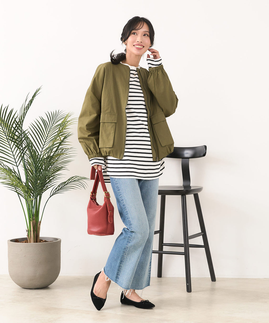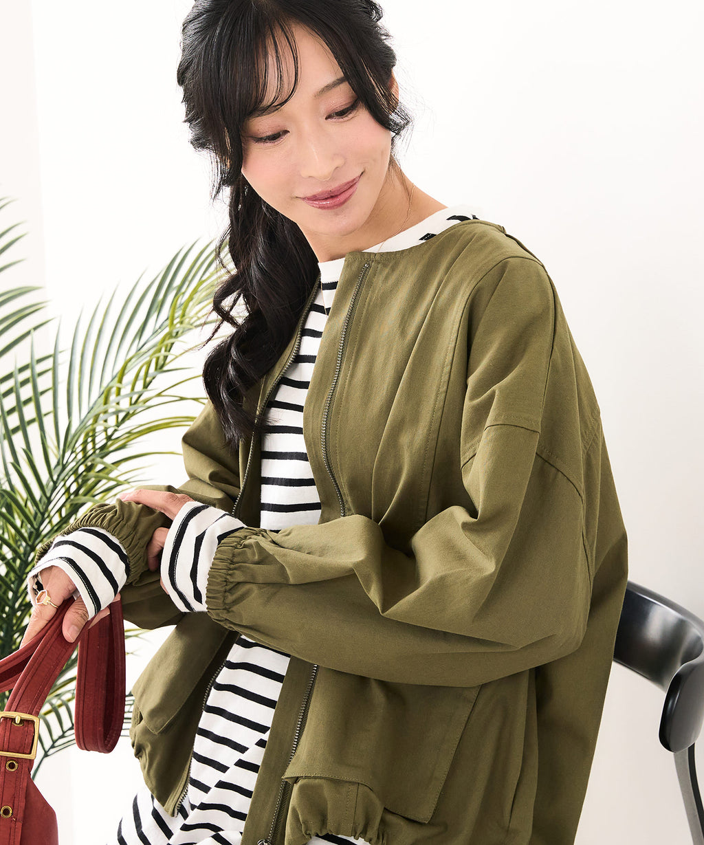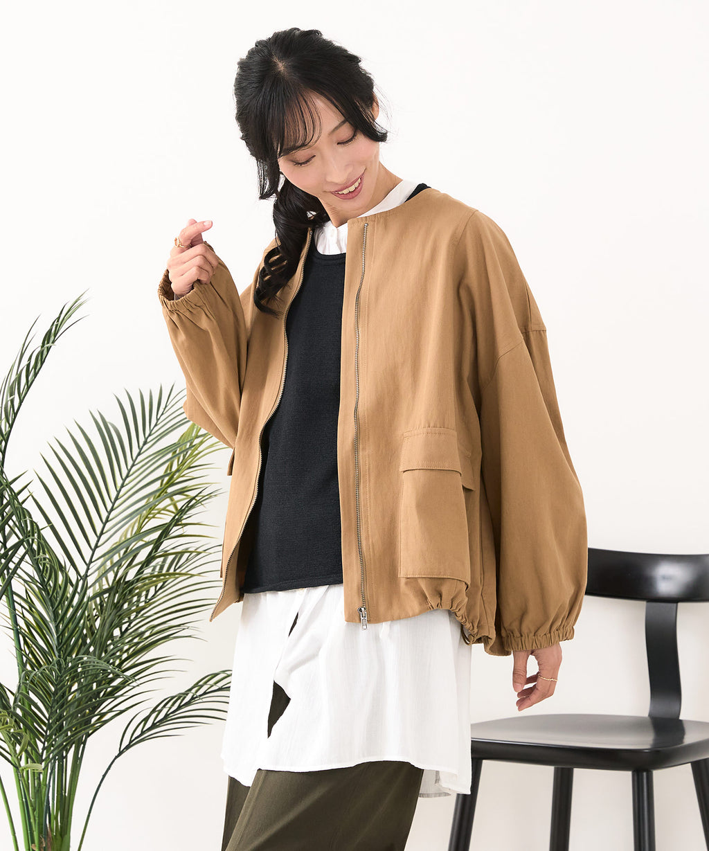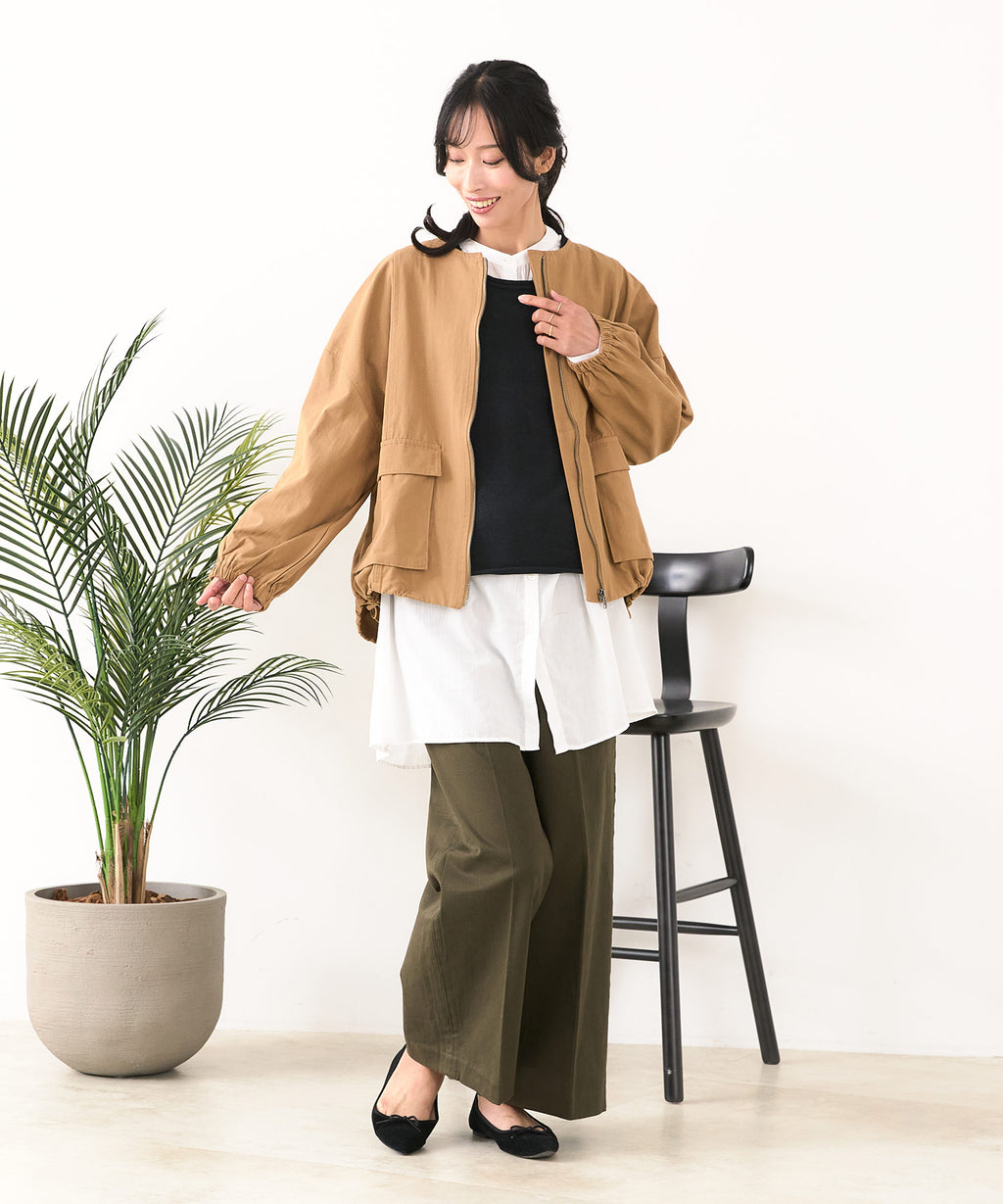 パンツにもスカートにも合わせやすい丈感のライトアウター。