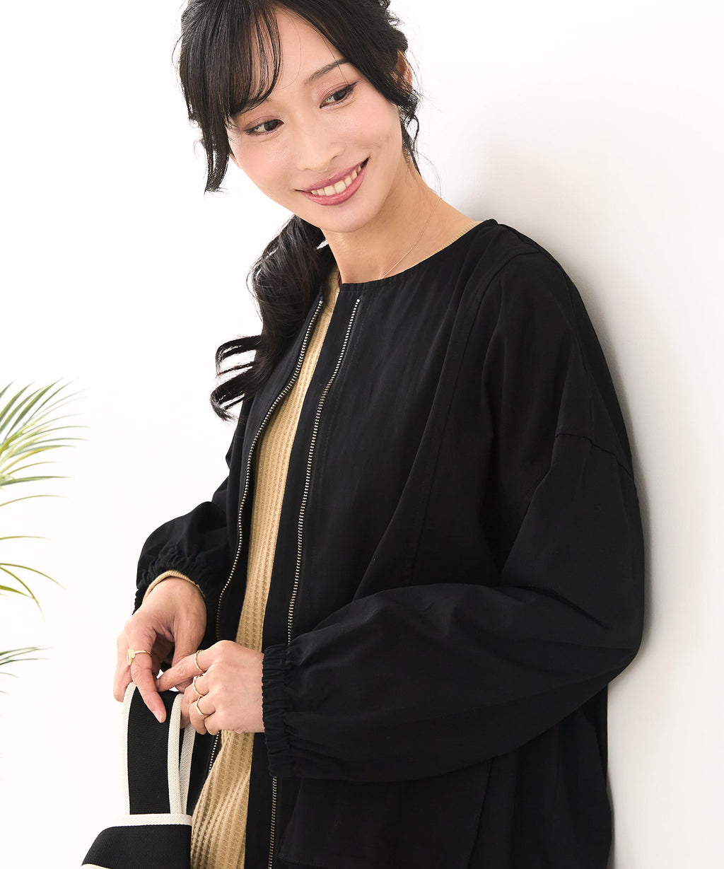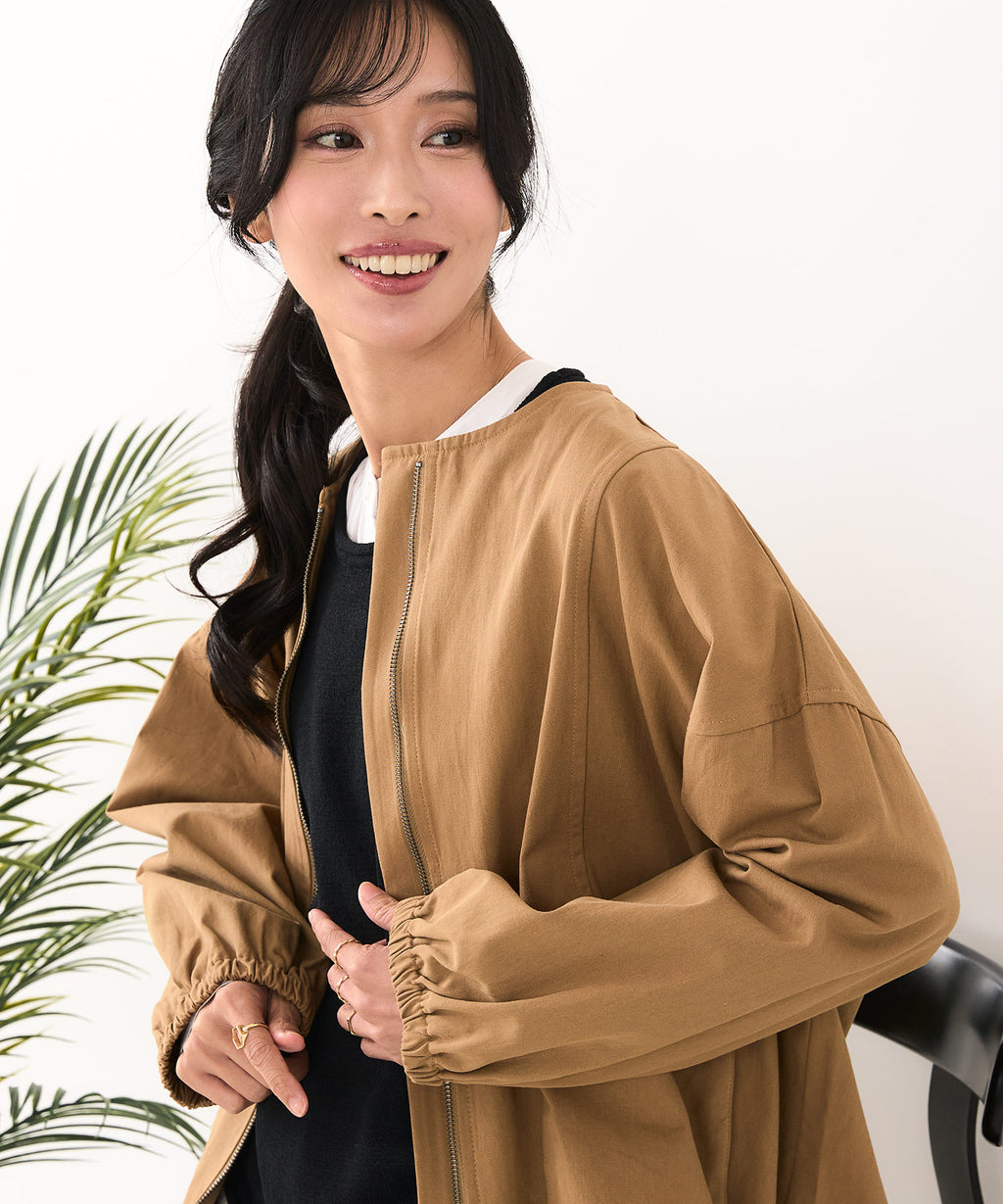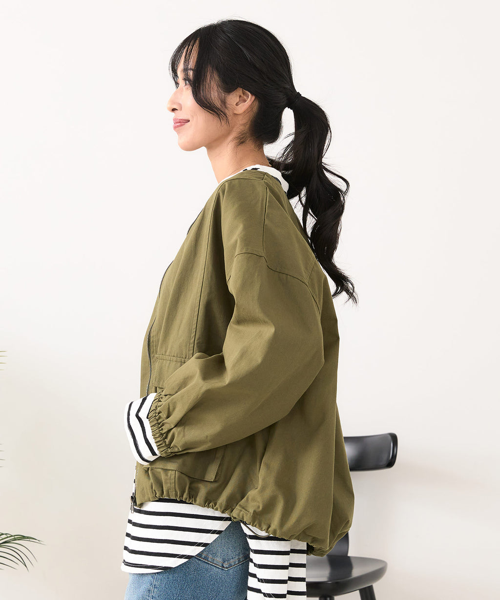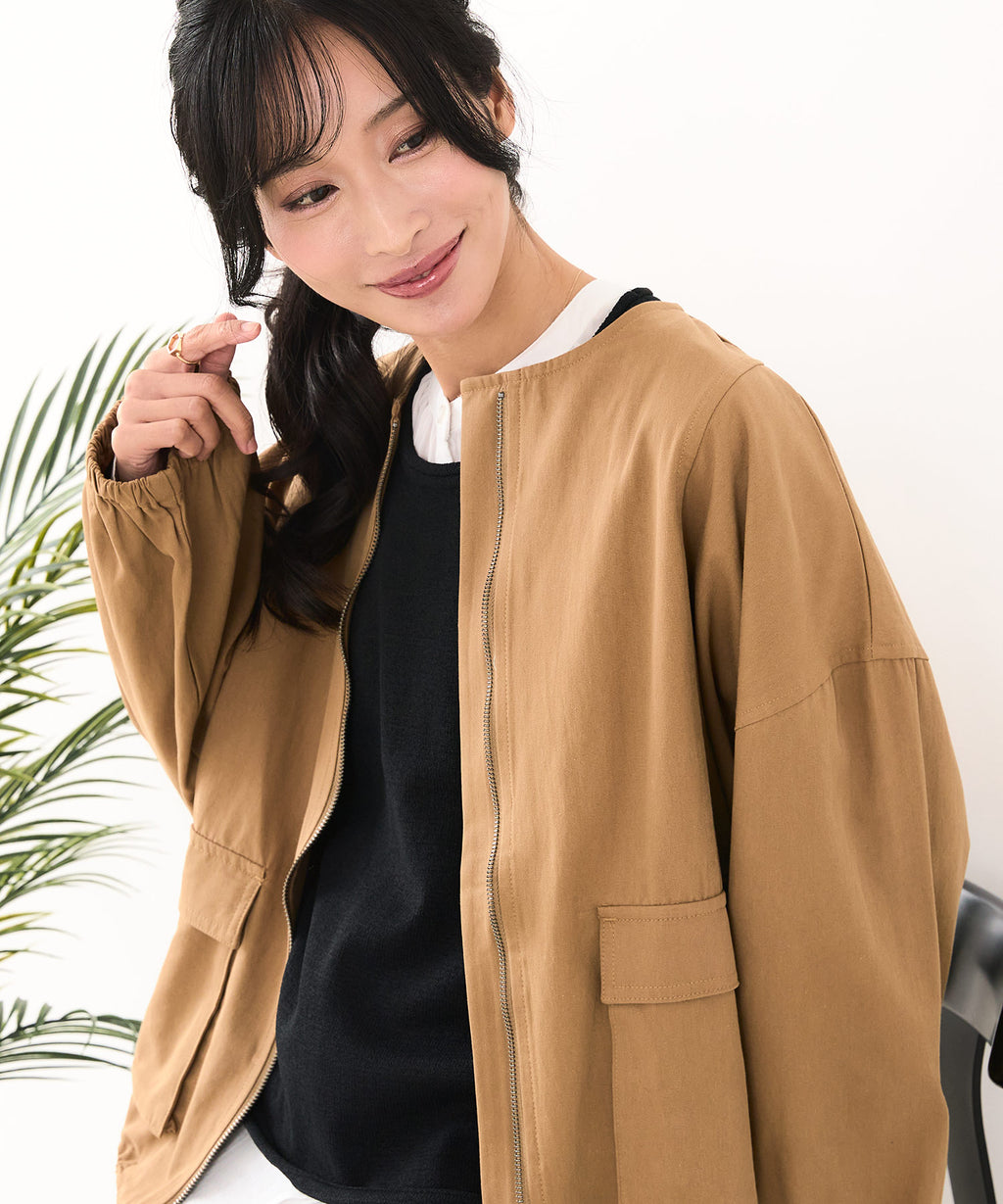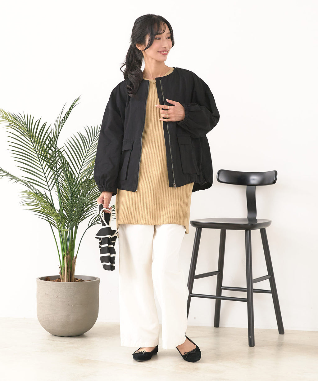 パンツにもスカートにも合わせやすい丈感のライトアウター。