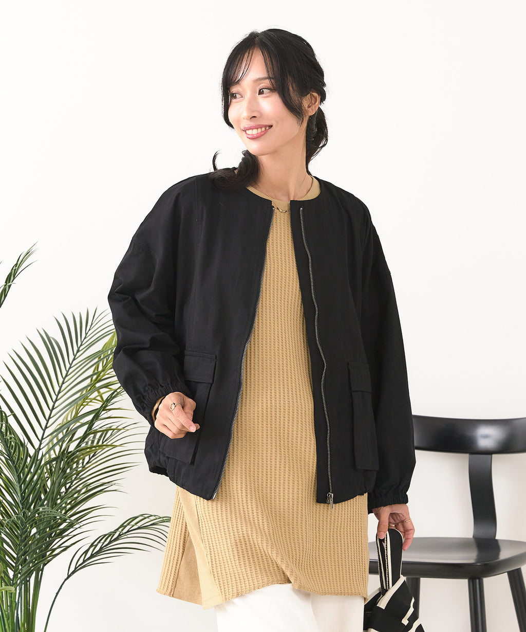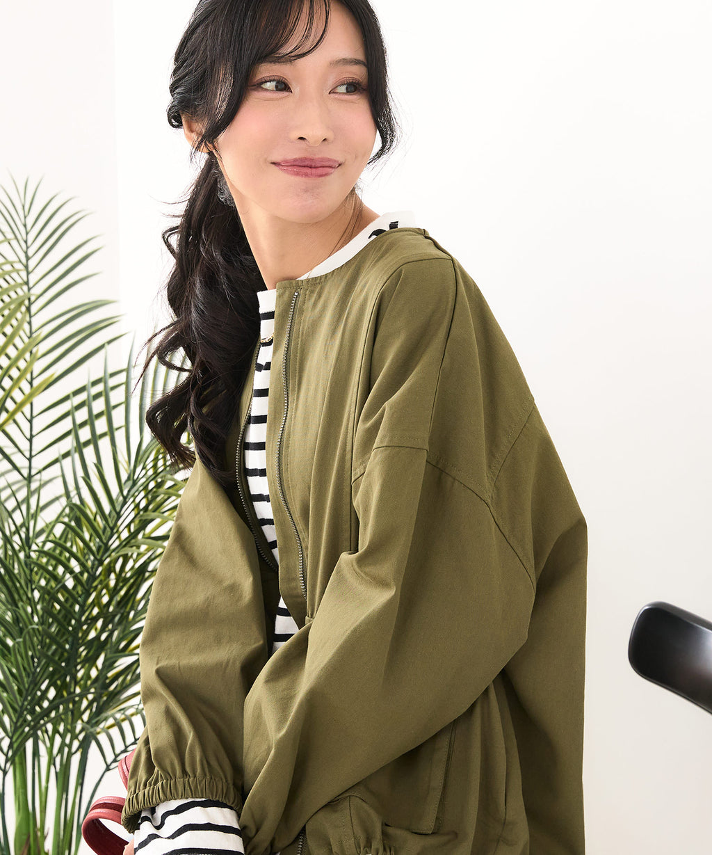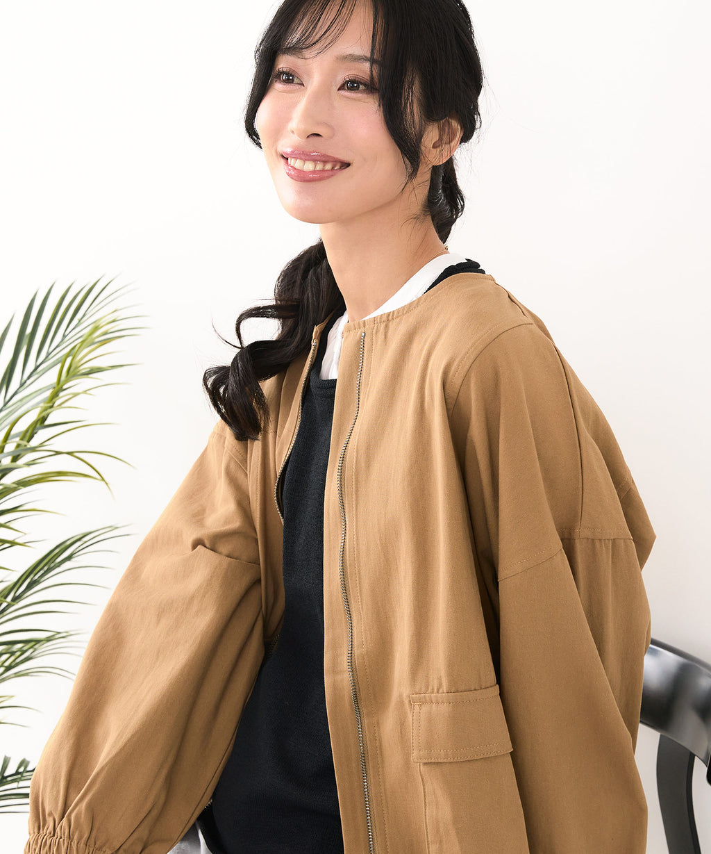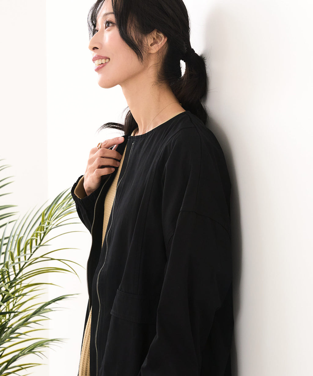 パンツにもスカートにも合わせやすい丈感のライトアウター。