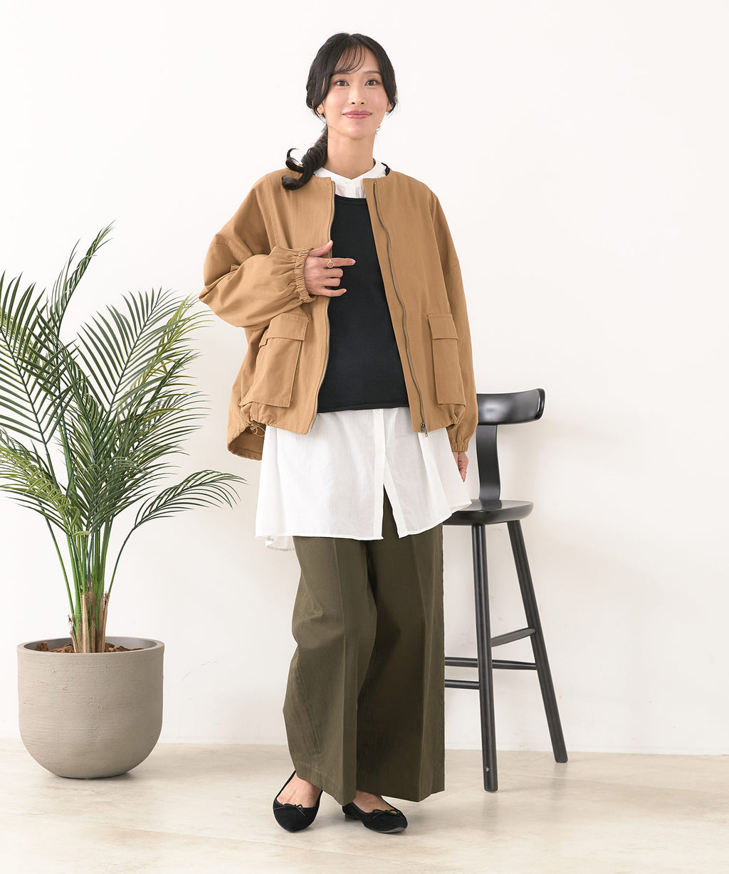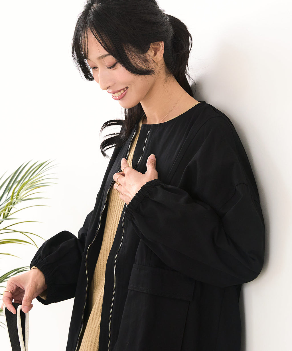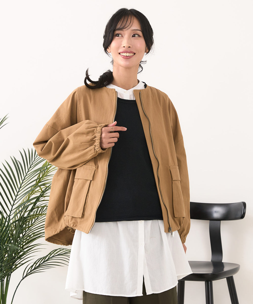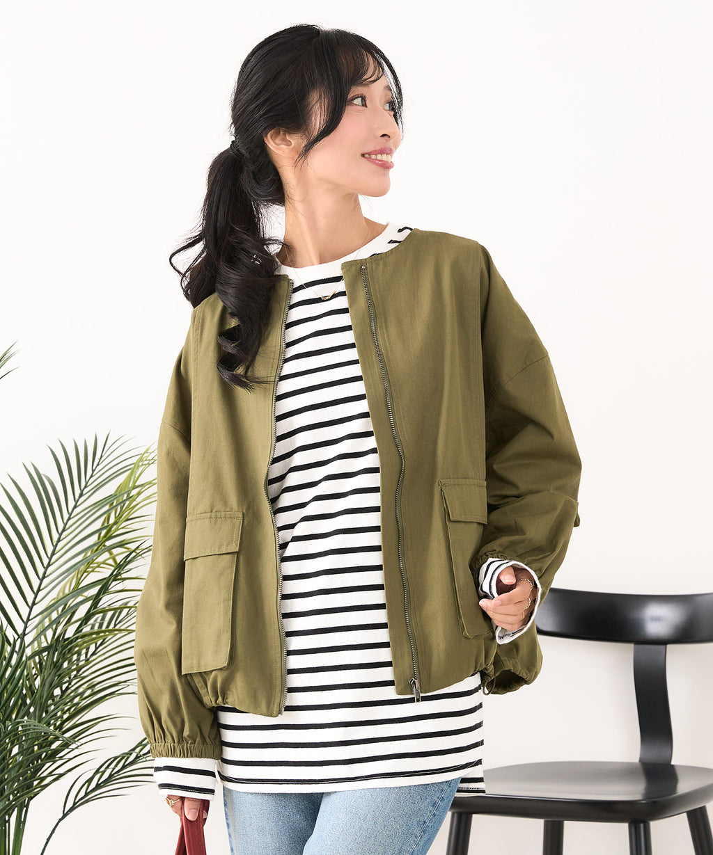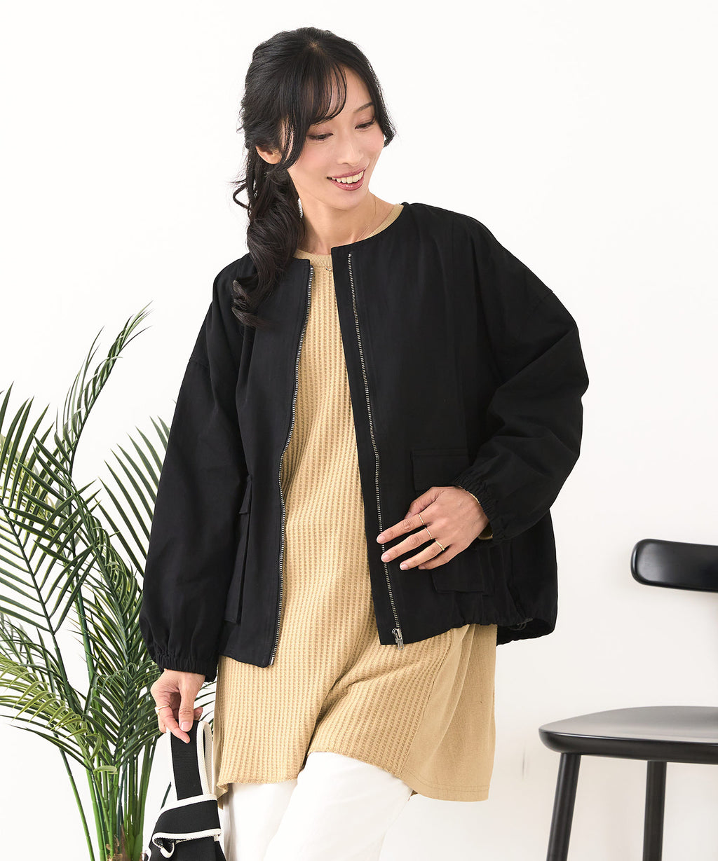 パンツにもスカートにも合わせやすい丈感のライトアウター。