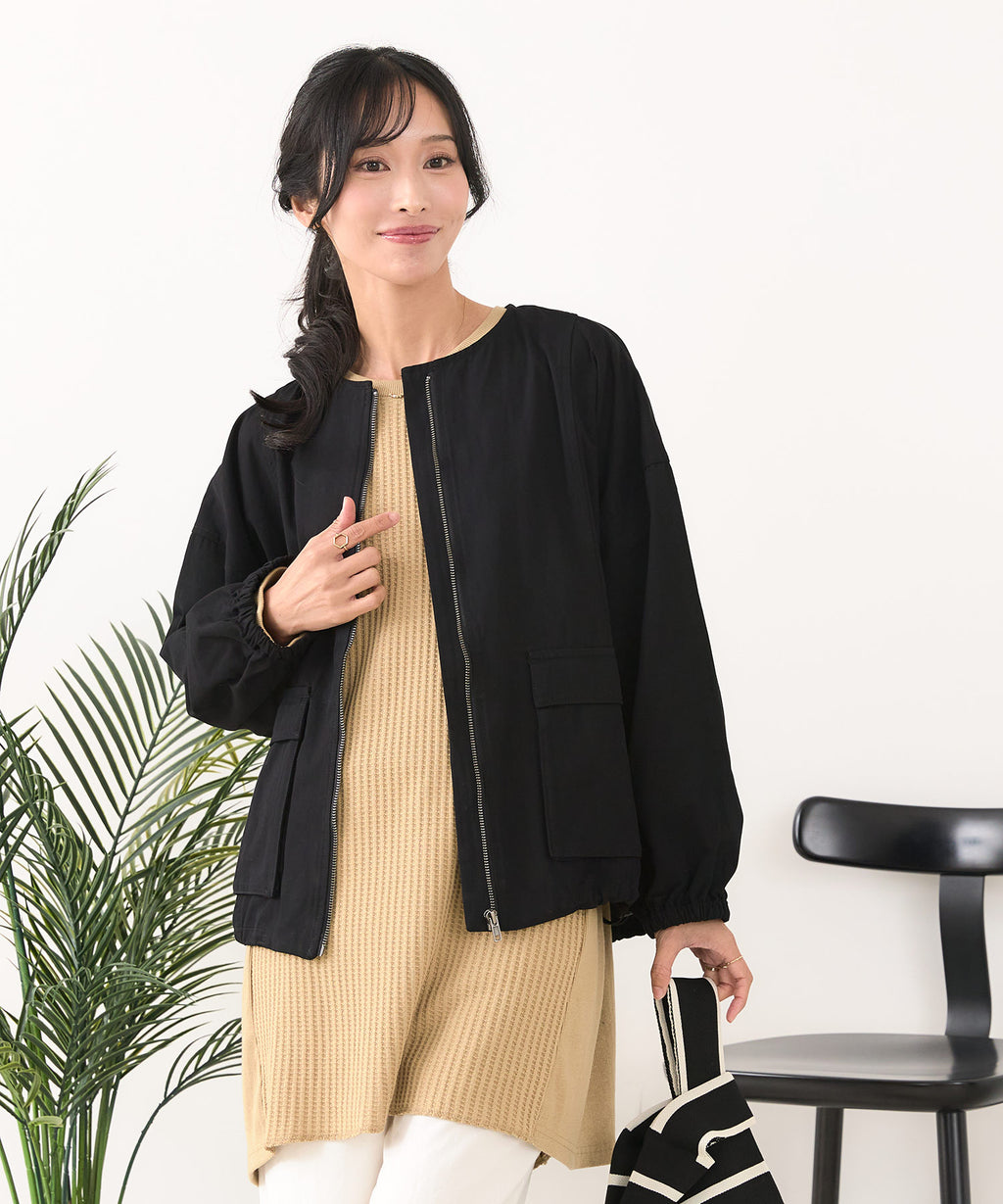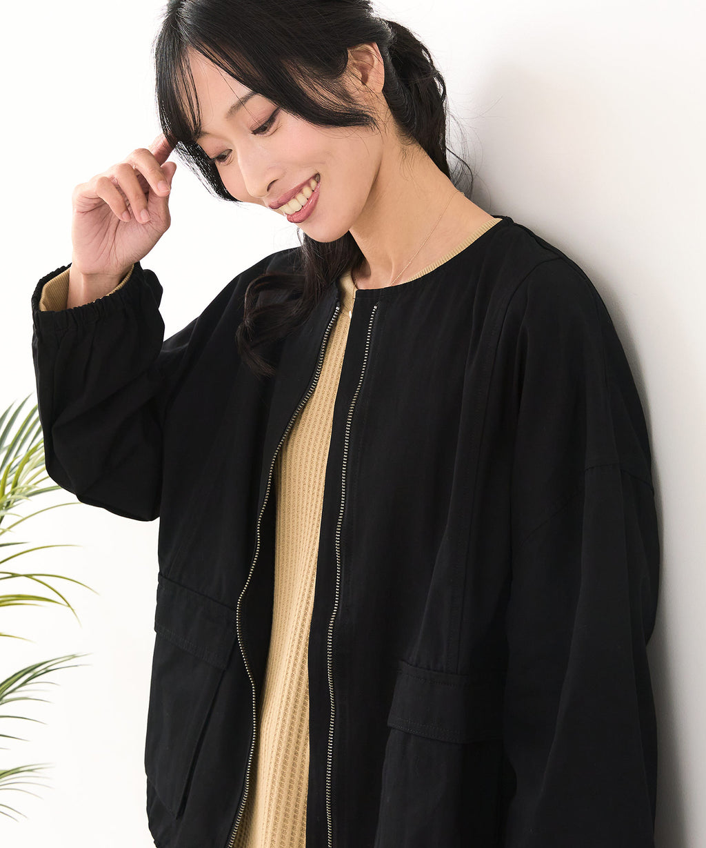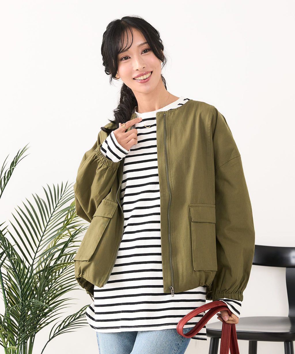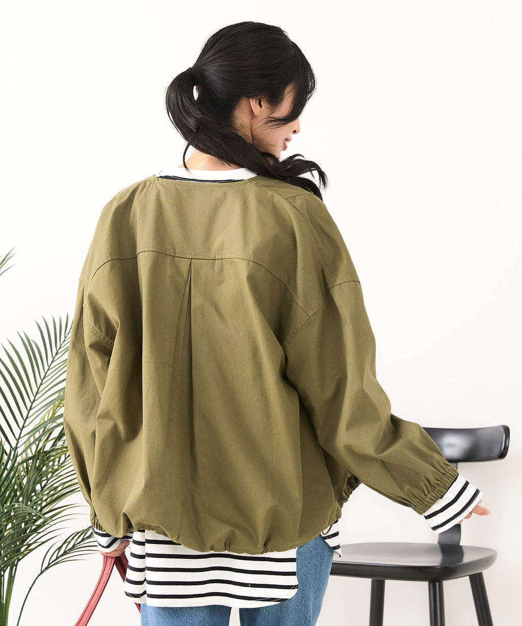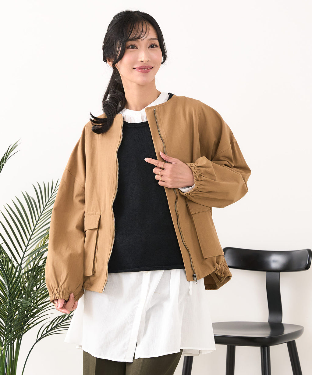 パンツにもスカートにも合わせやすい丈感のライトアウター。