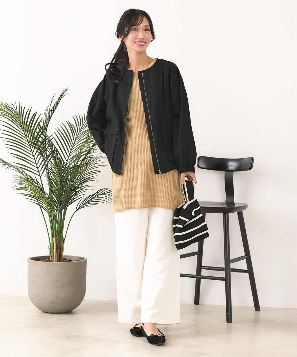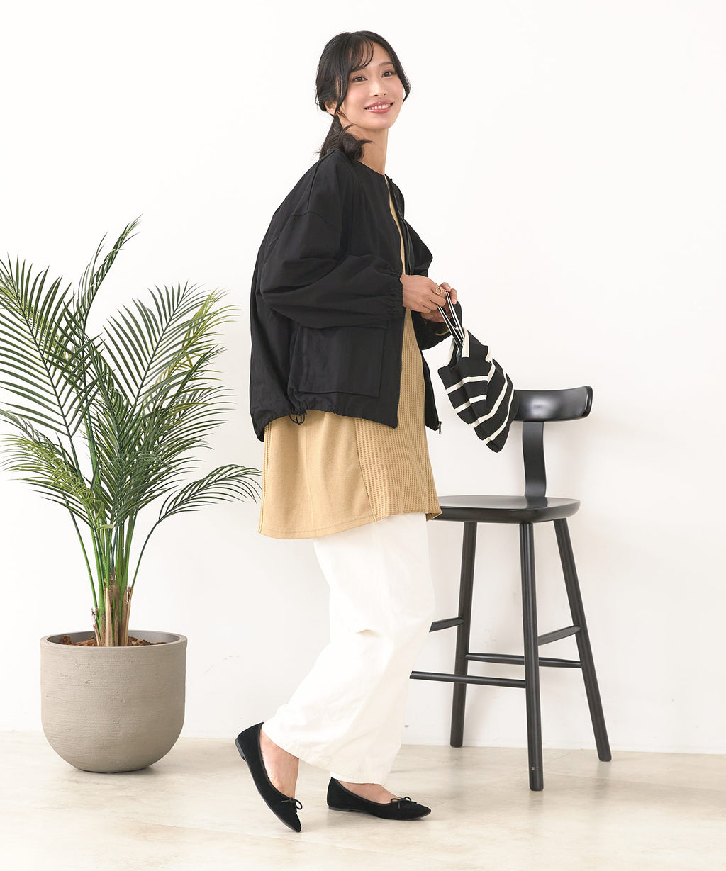 ゆるやかなサイズ感とマチ付きポケットが容量もあり、デイリーウェアとして重宝します。