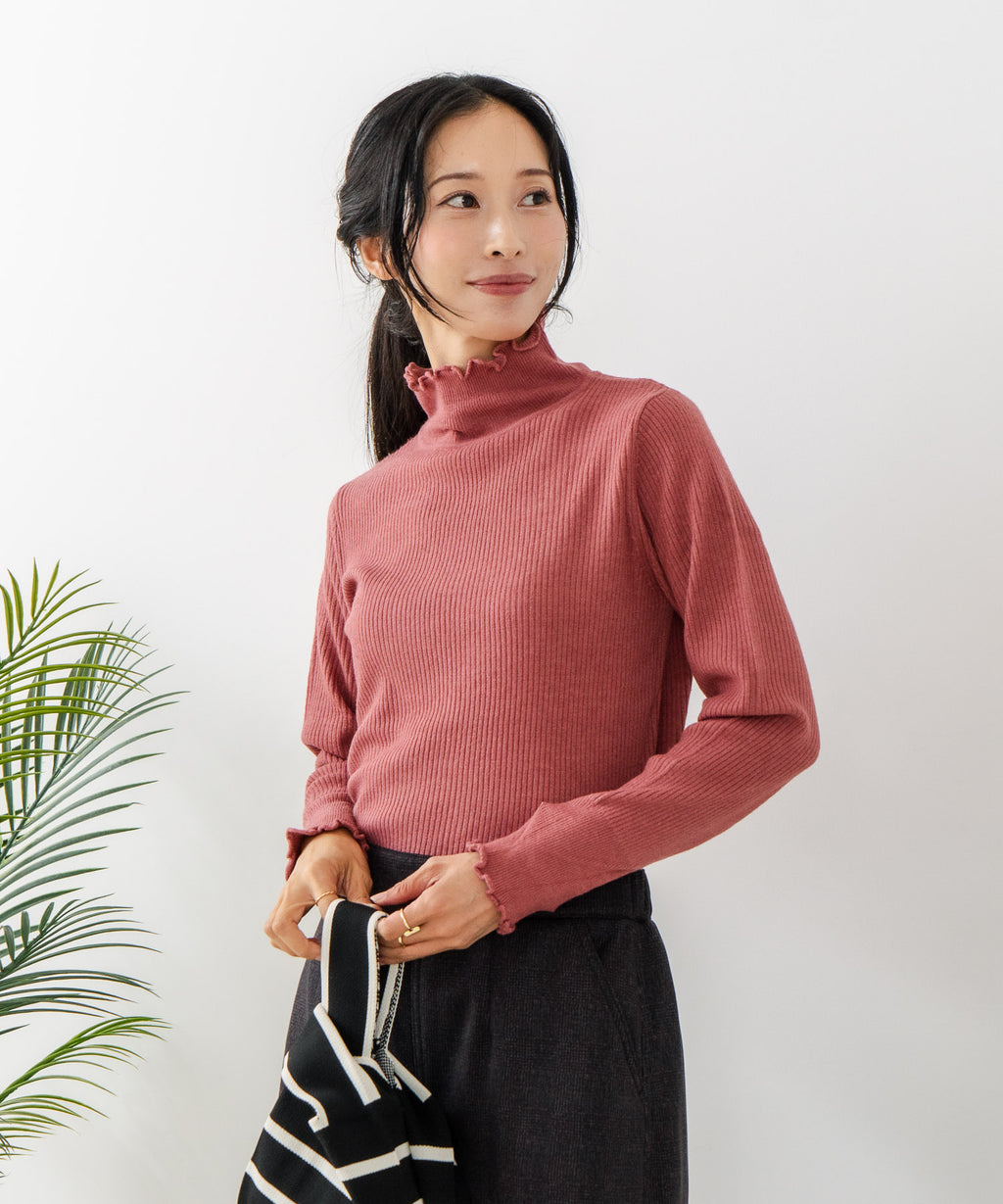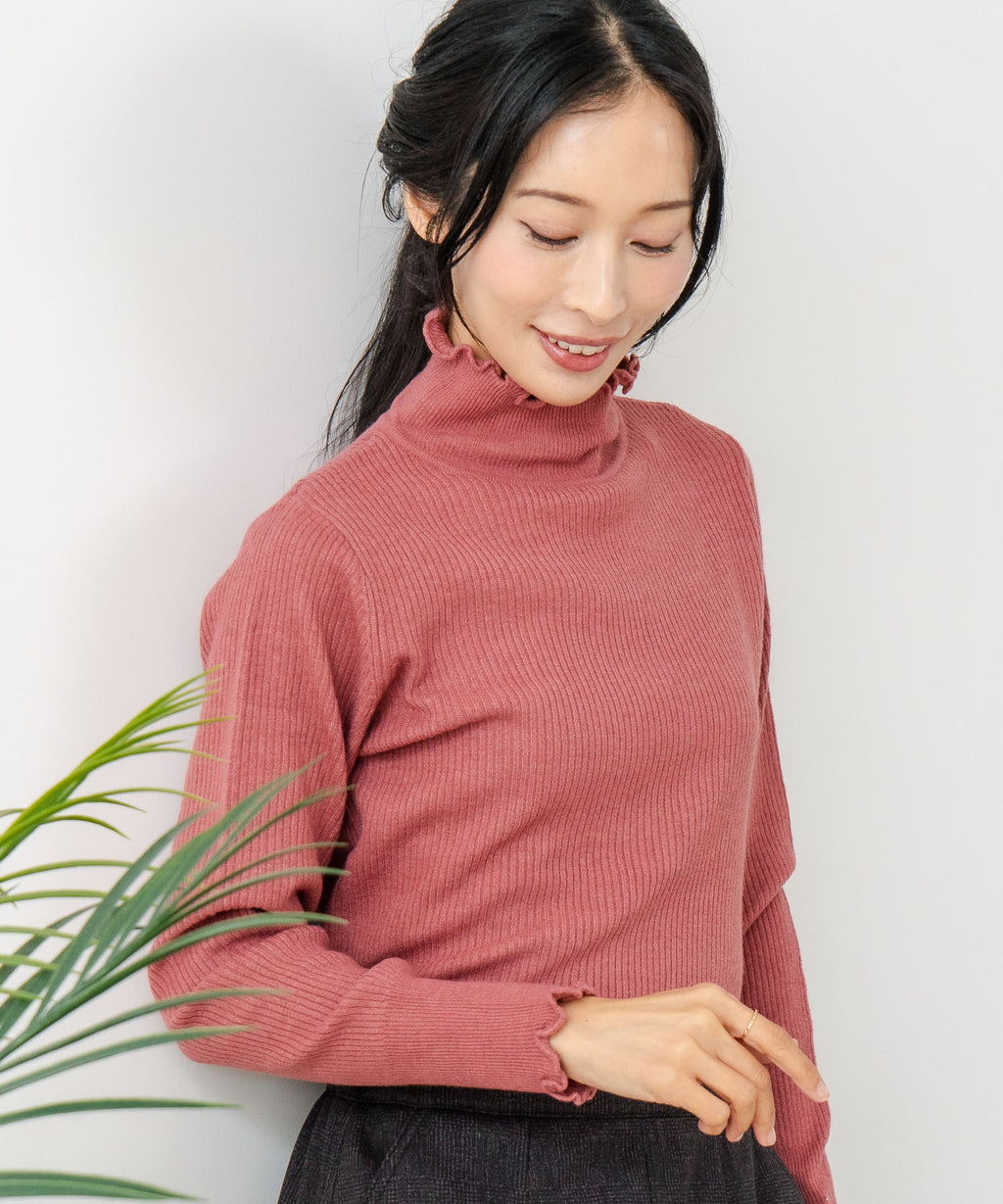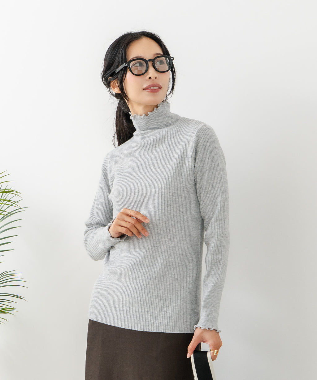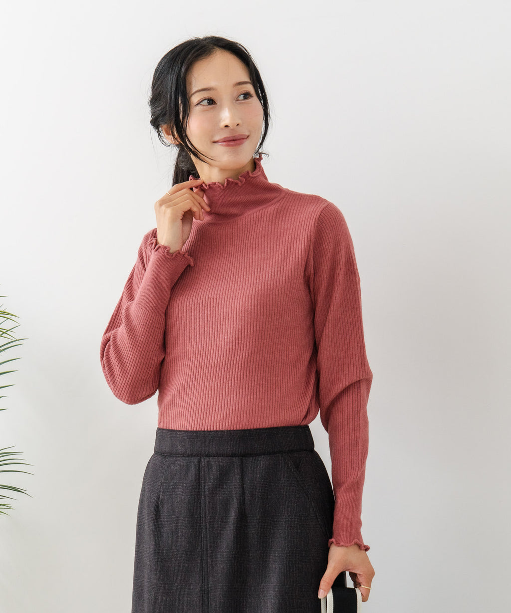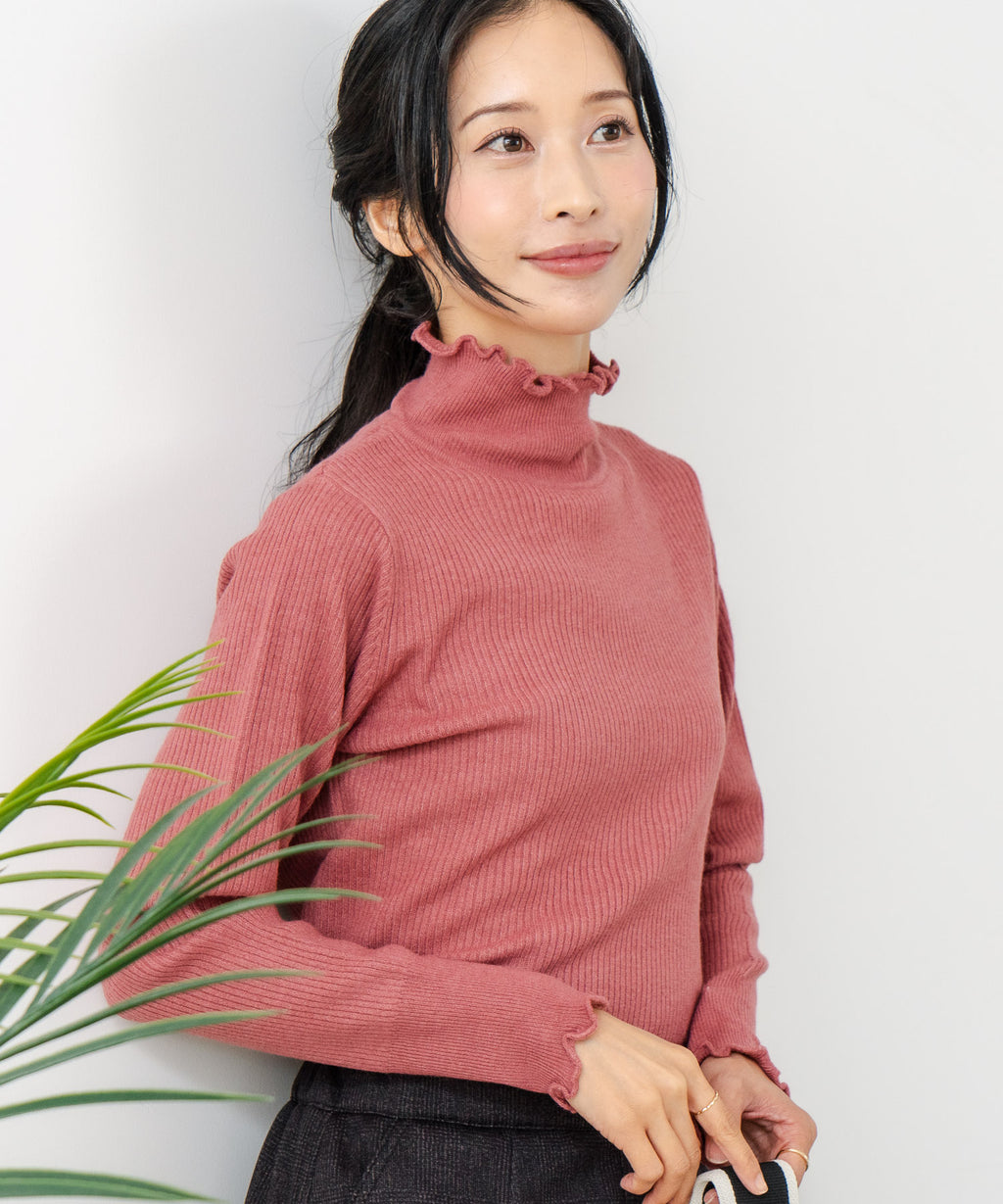 ◆メロウ始末が大人かわいい、すっきりと着こなせるハイネックニットプルオーバー◆