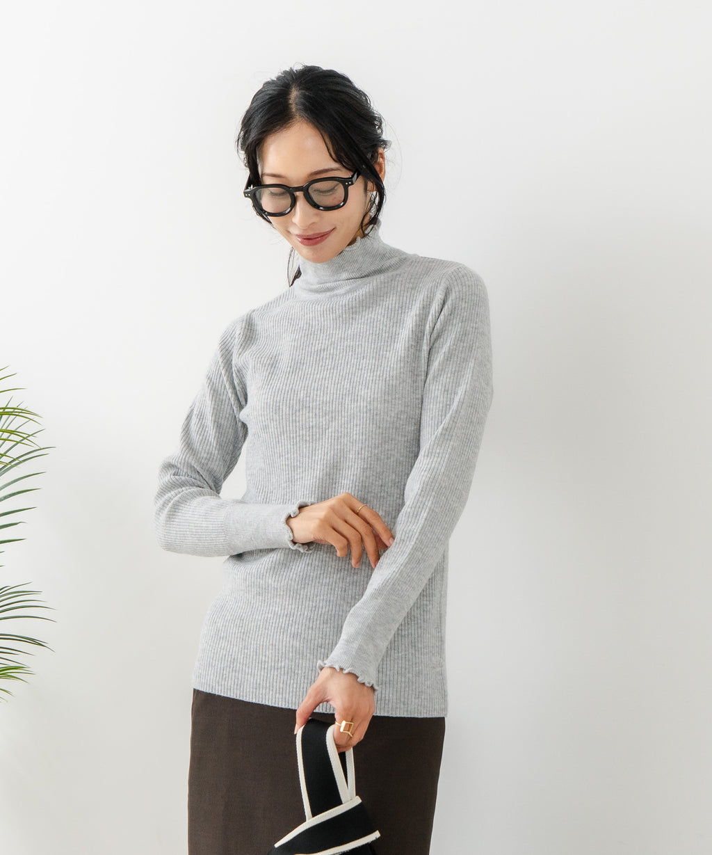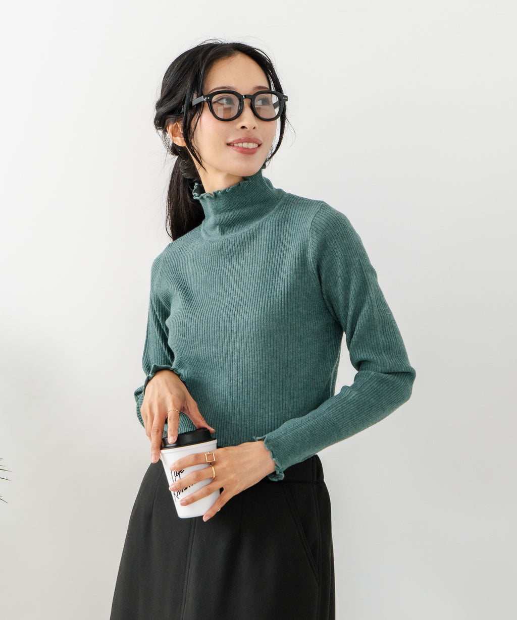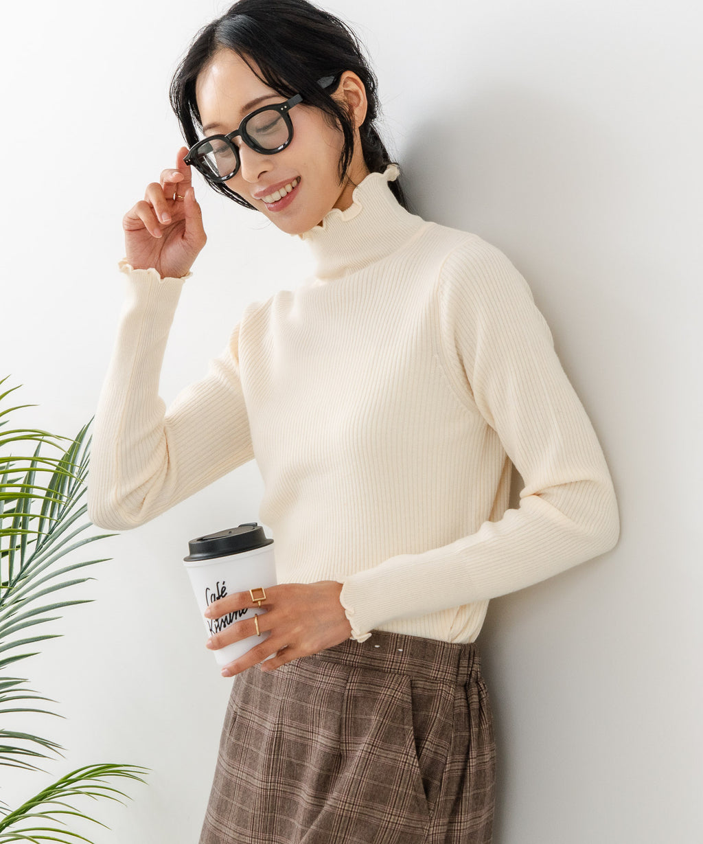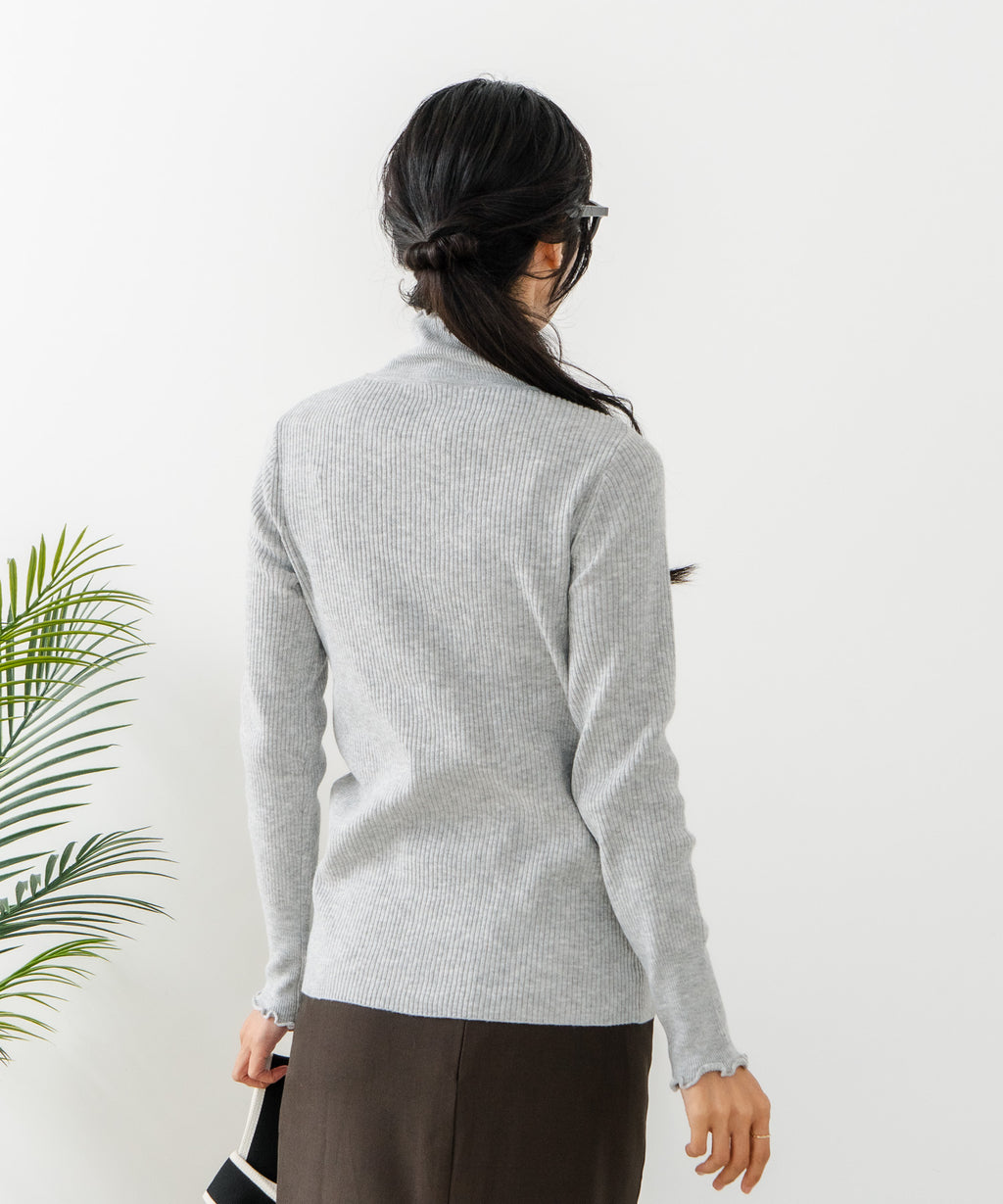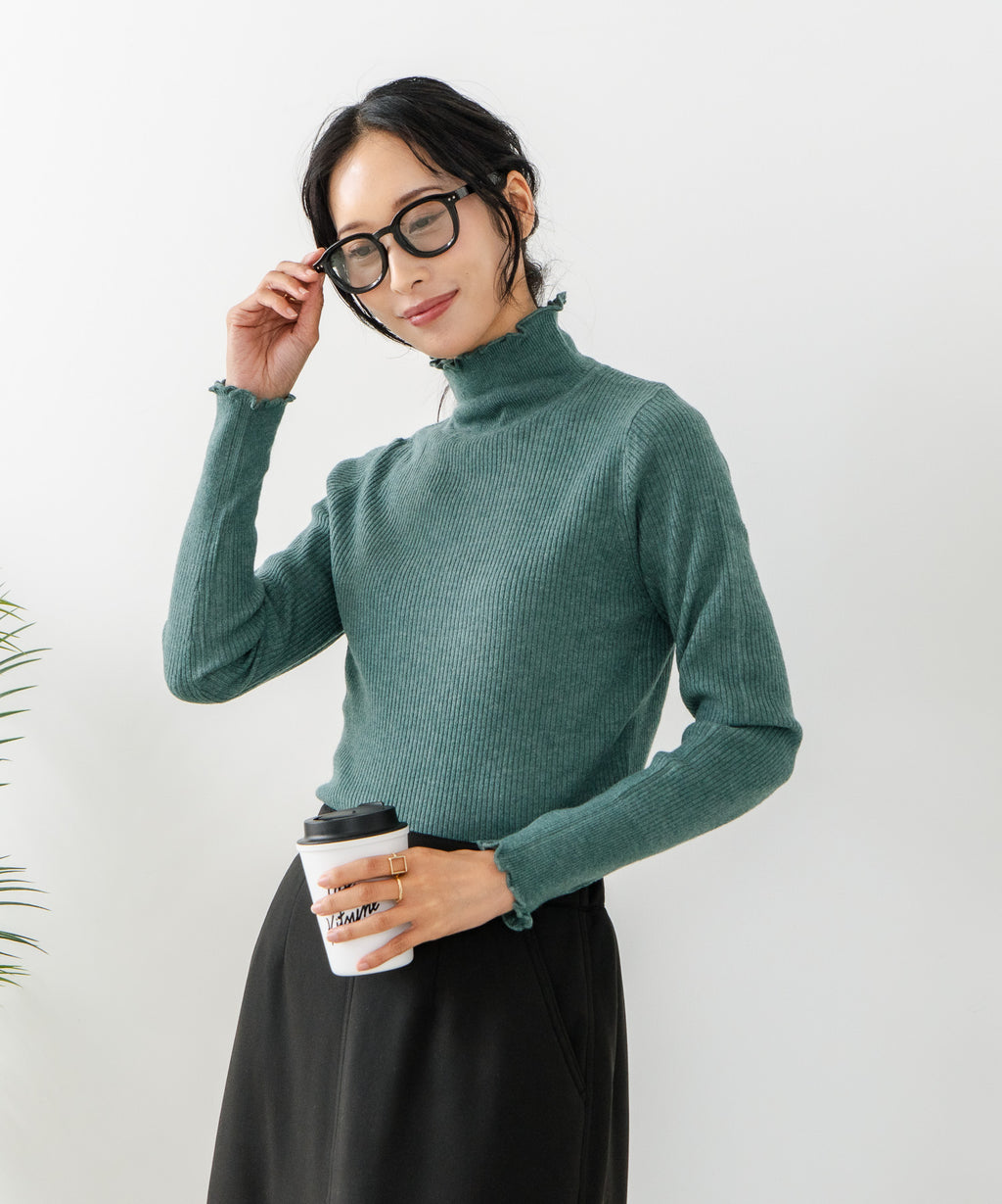 ◆メロウ始末が大人かわいい、すっきりと着こなせるハイネックニットプルオーバー◆