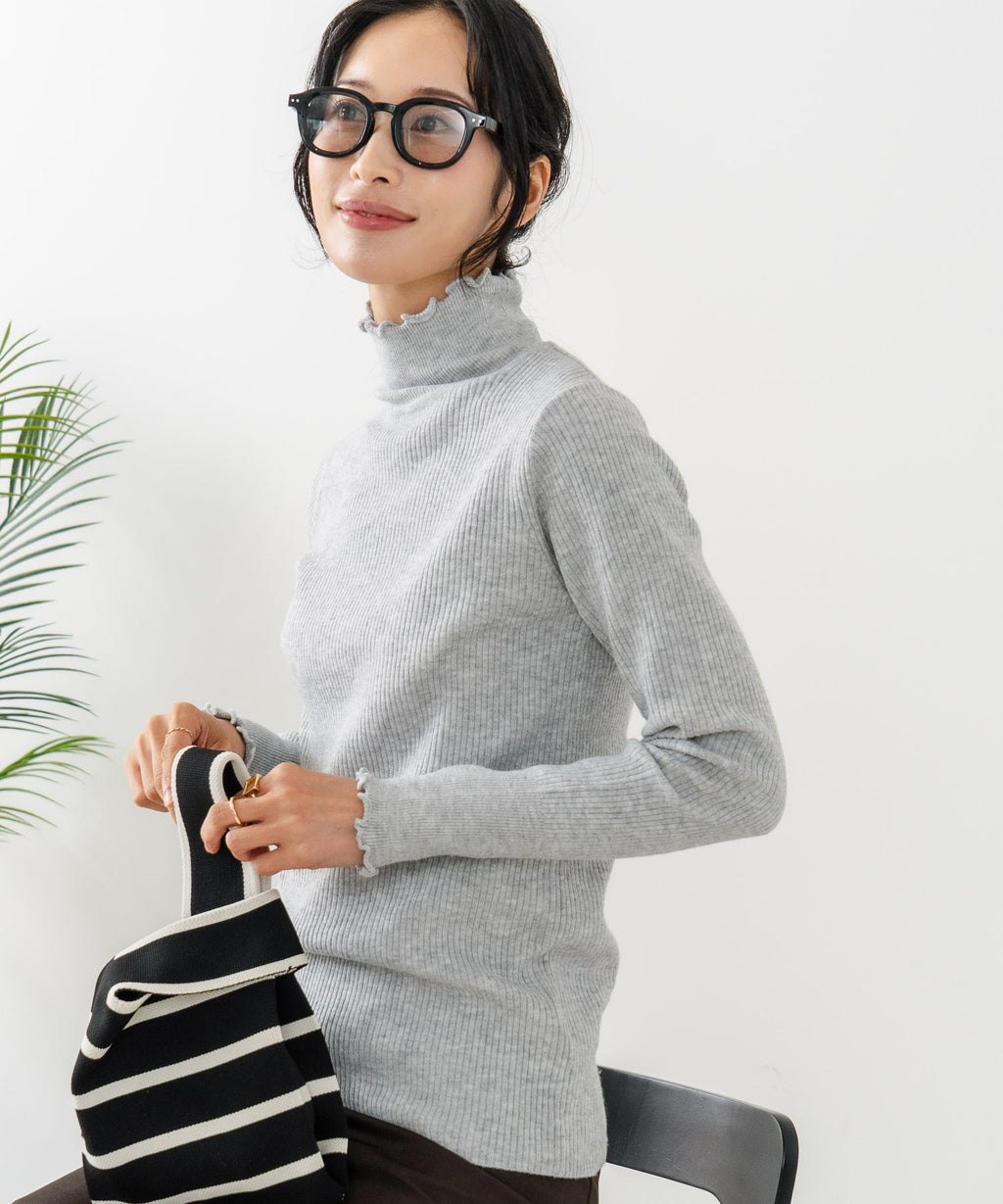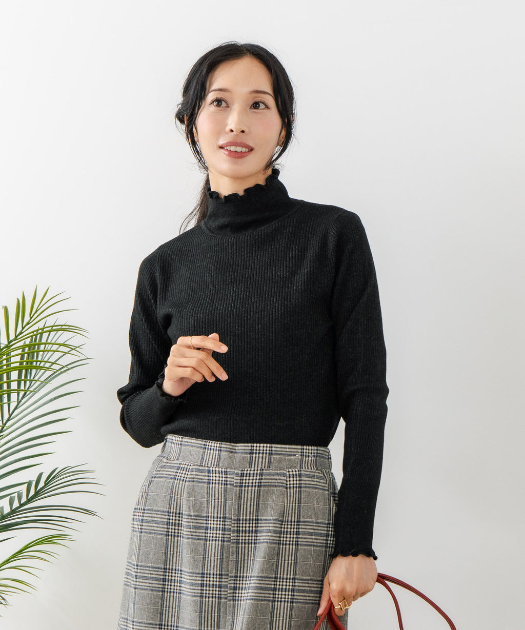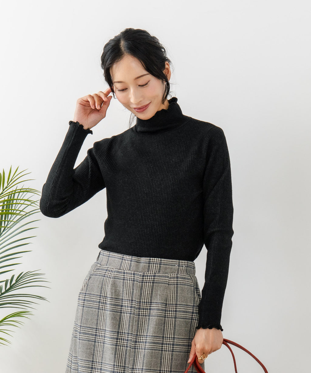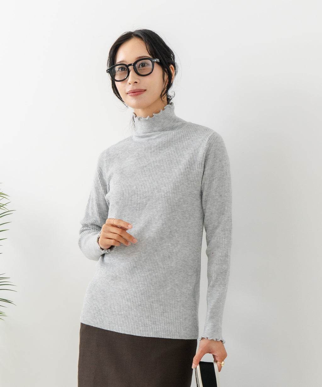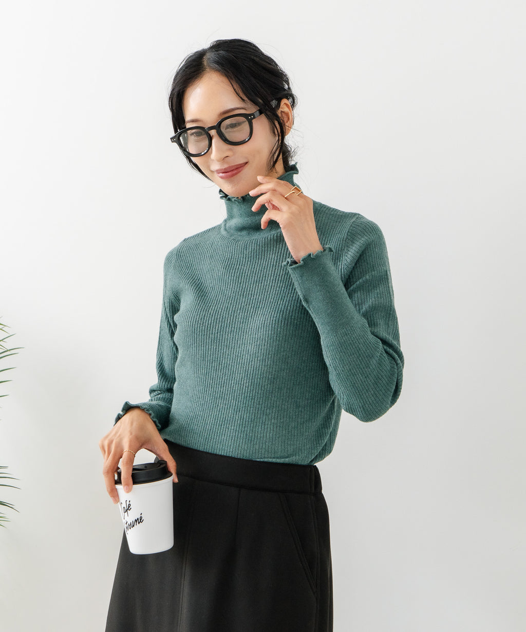 ◆メロウ始末が大人かわいい、すっきりと着こなせるハイネックニットプルオーバー◆
