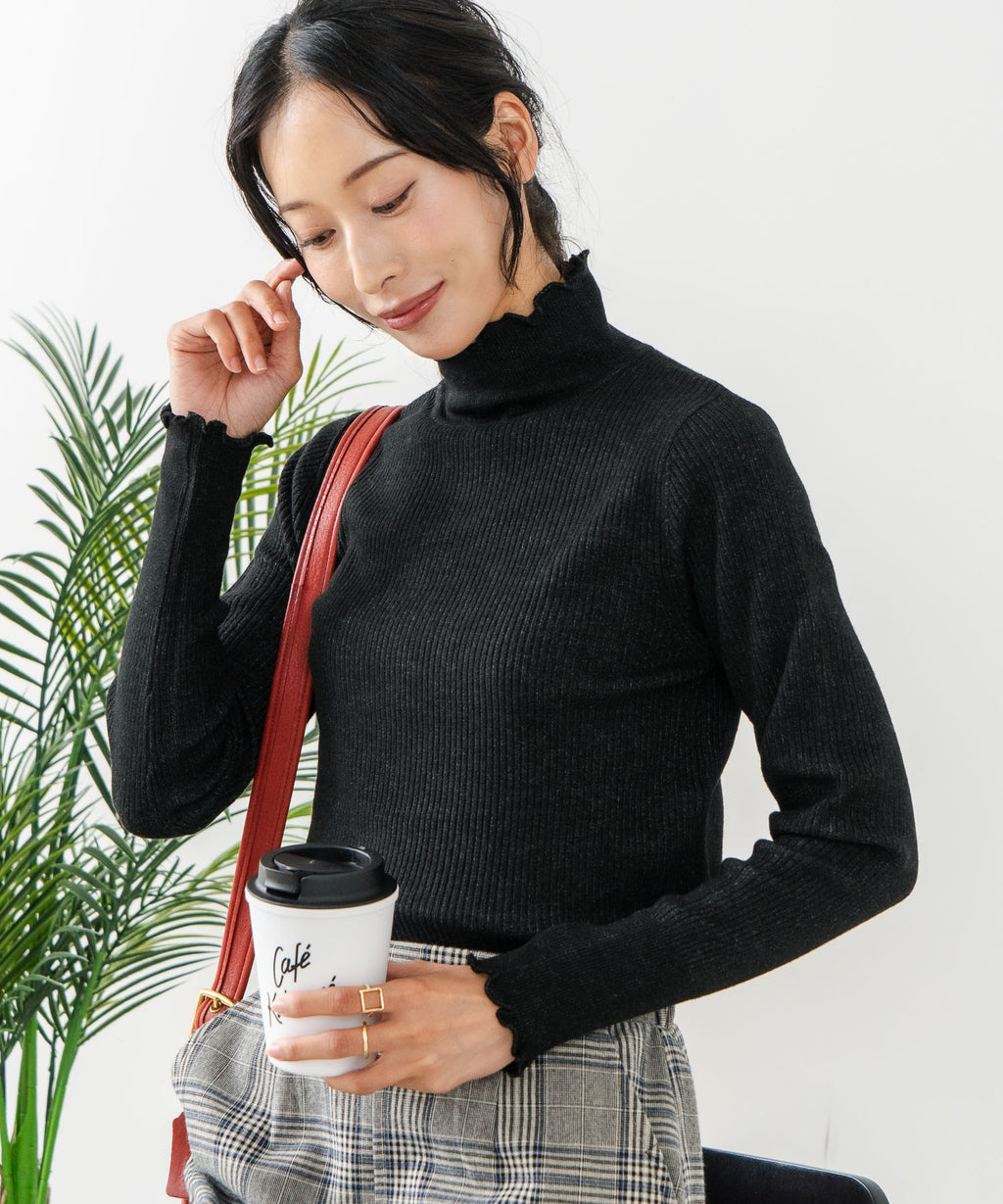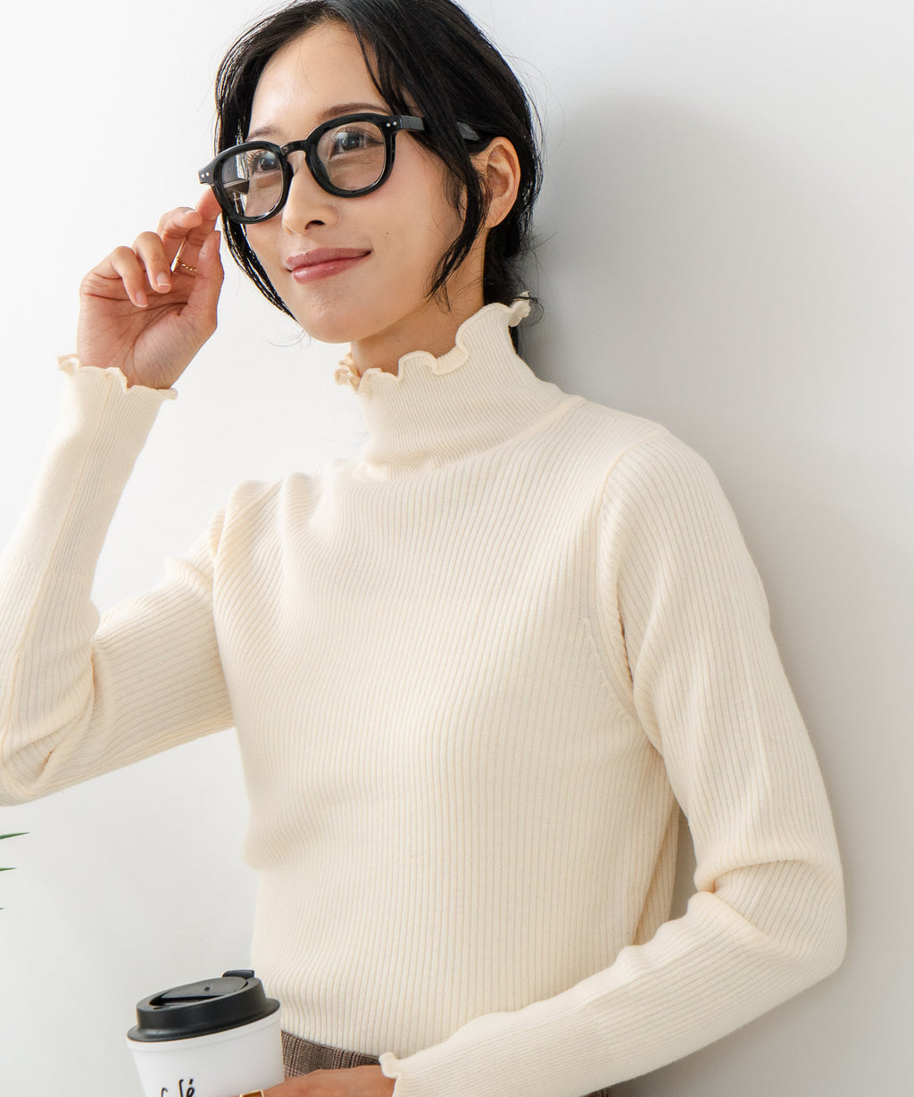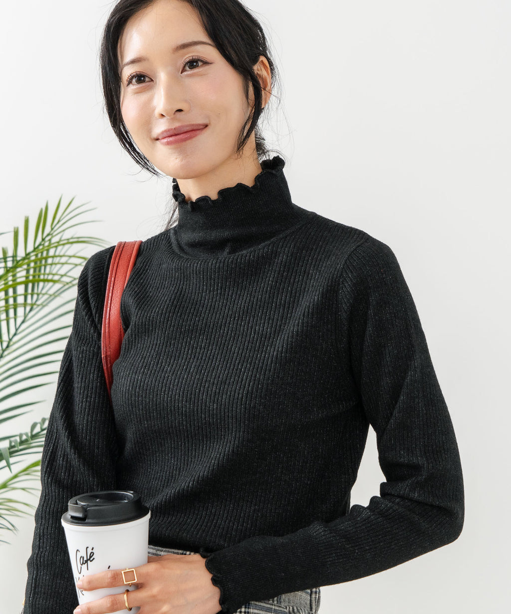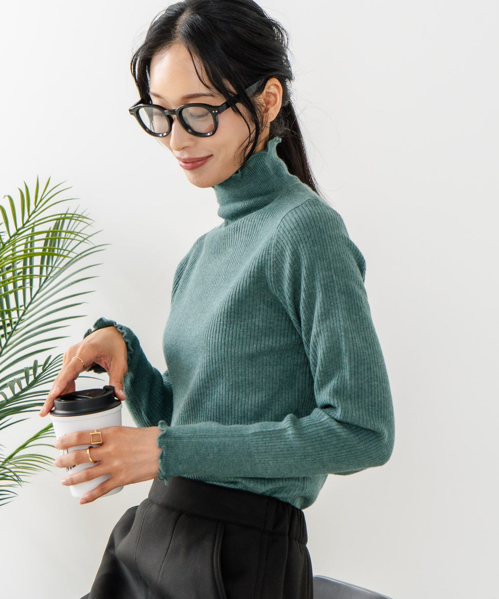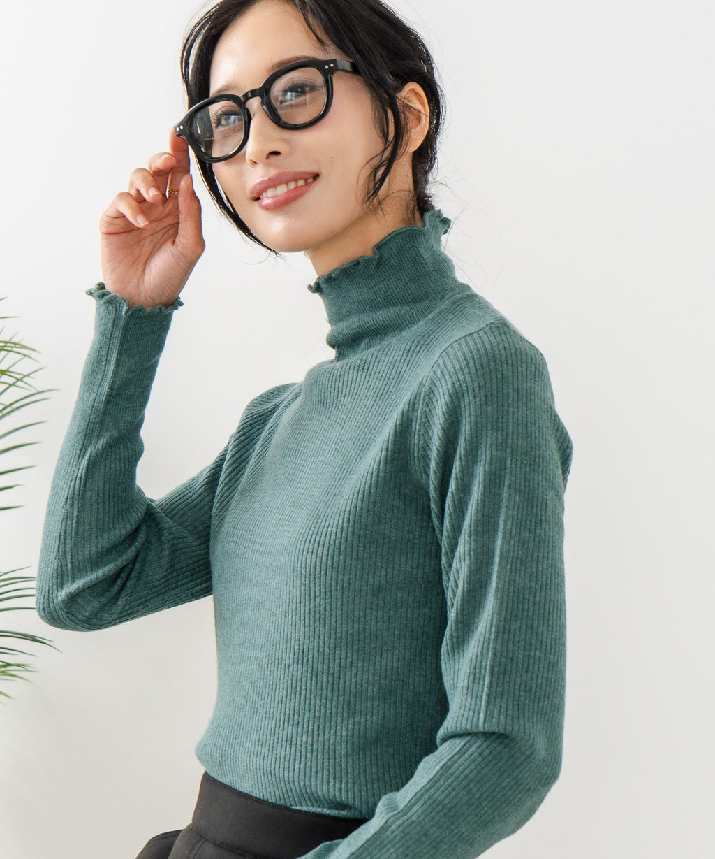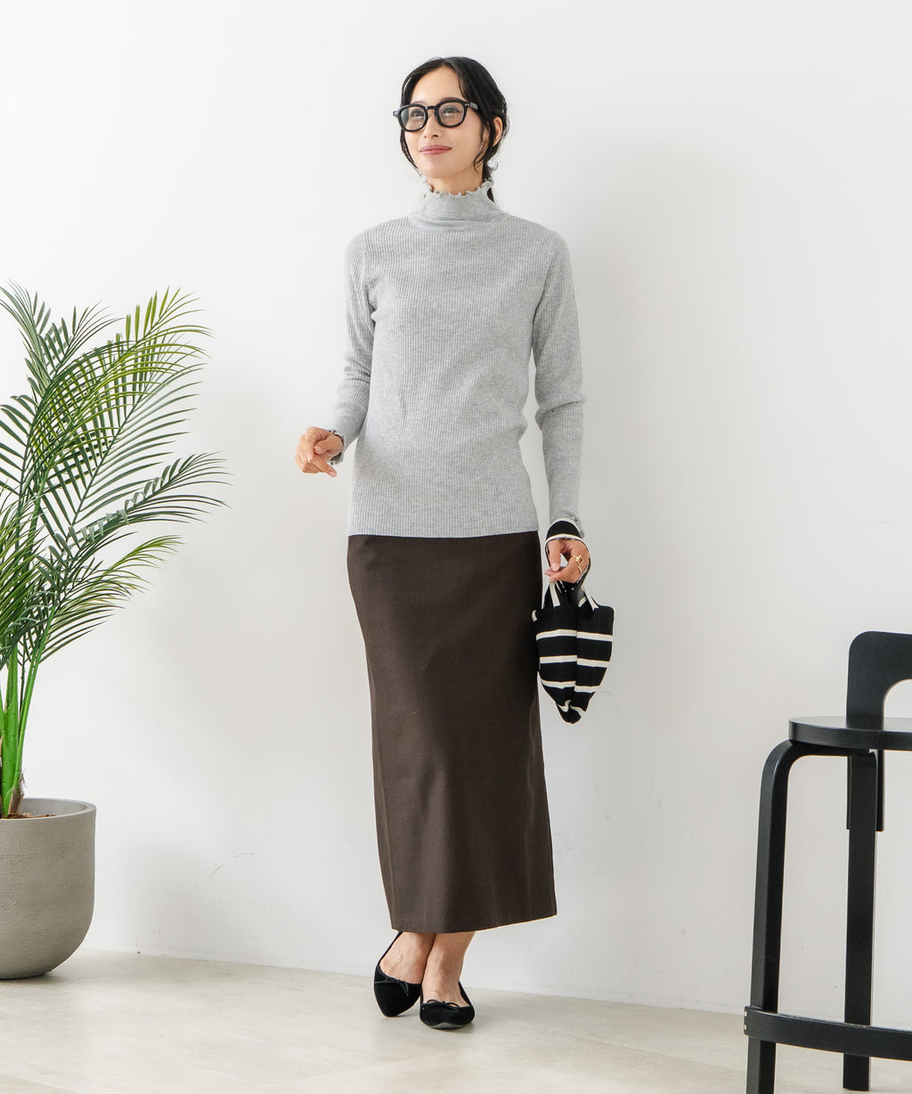 ◆メロウ始末が大人かわいい、すっきりと着こなせるハイネックニットプルオーバー◆
