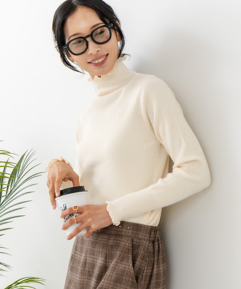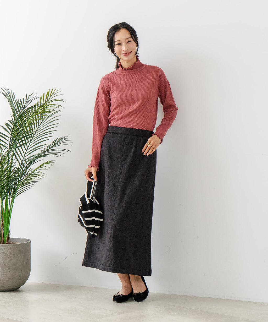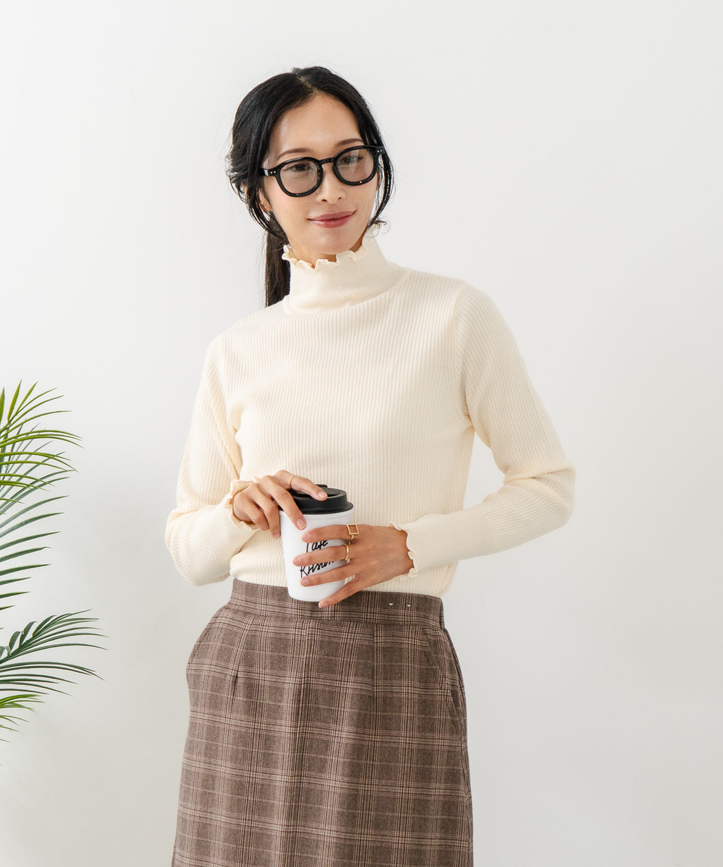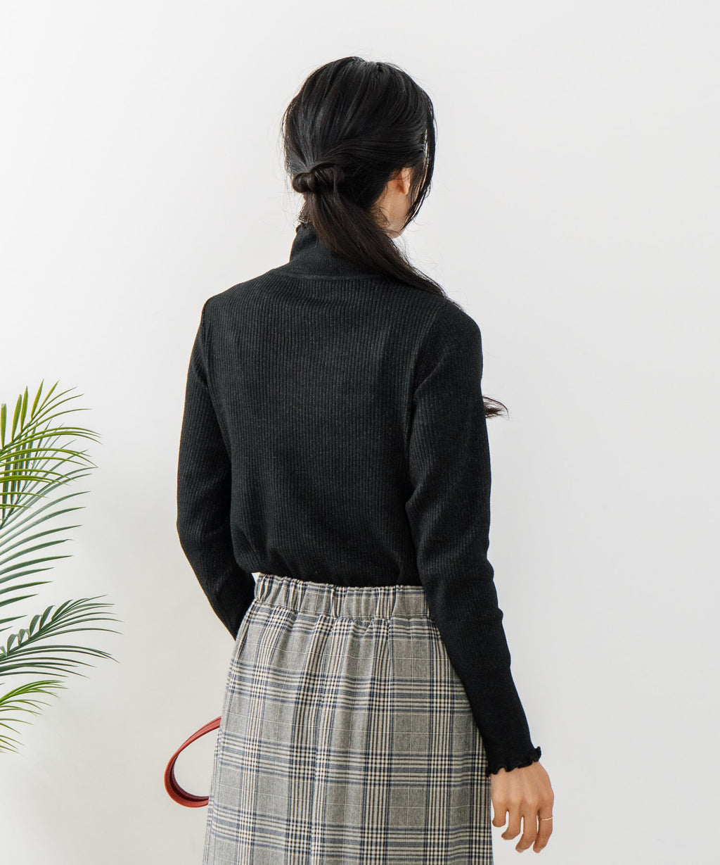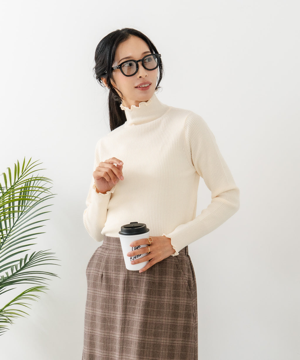 ◆メロウ始末が大人かわいい、すっきりと着こなせるハイネックニットプルオーバー◆