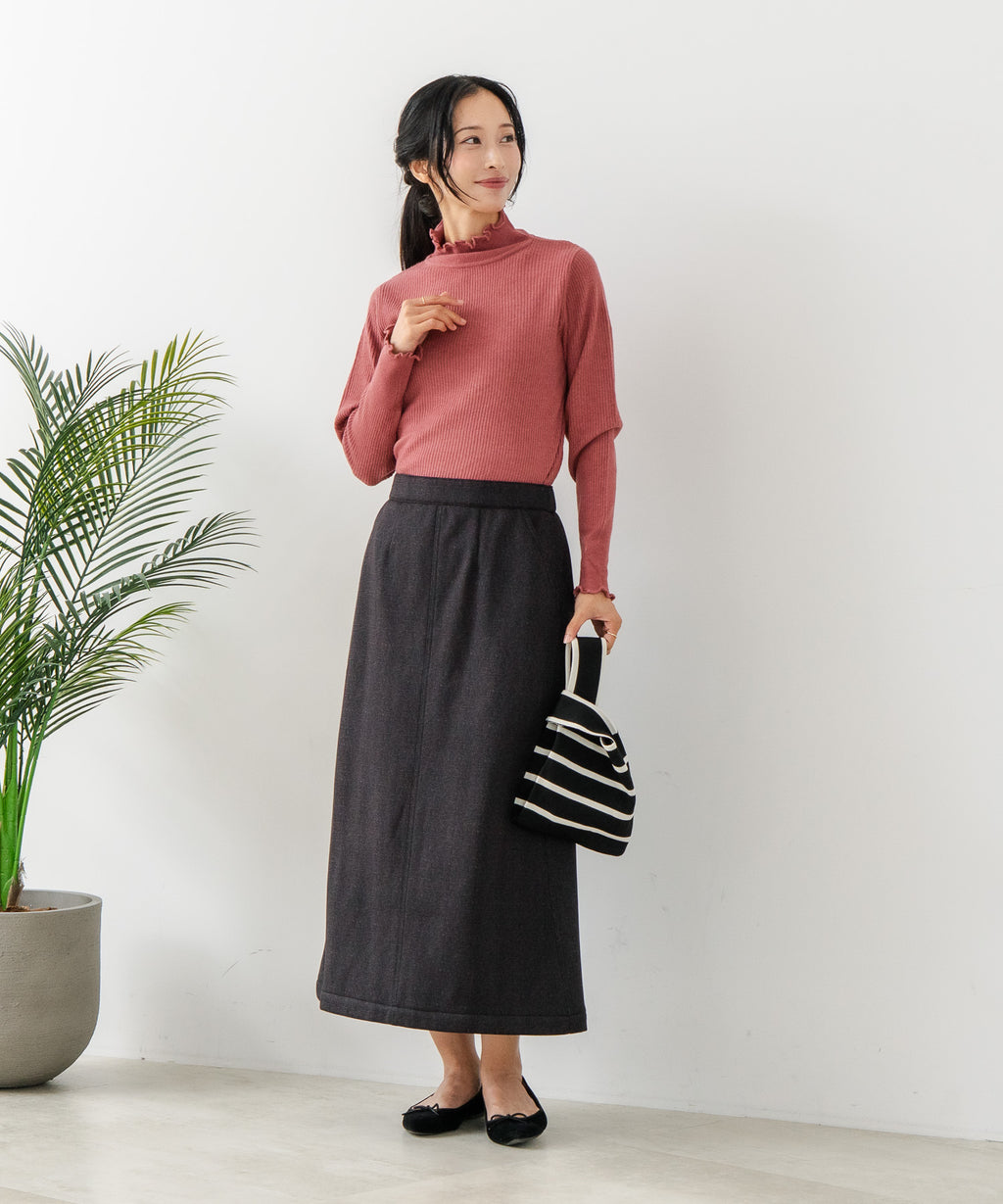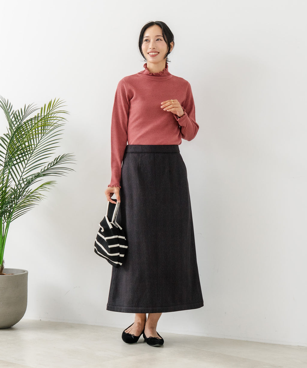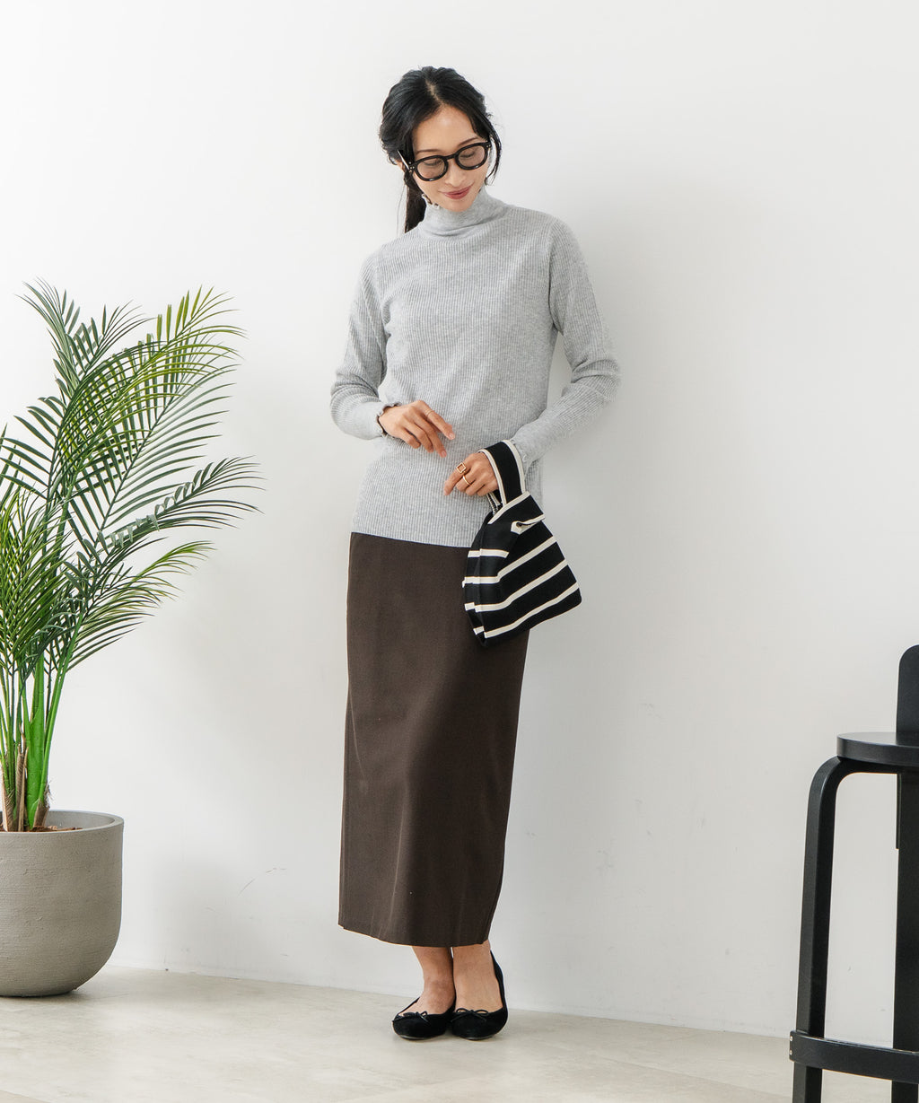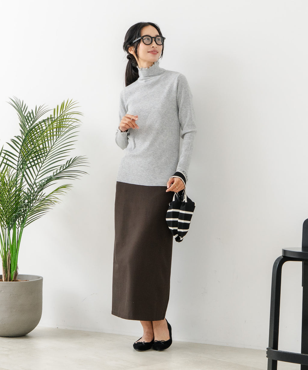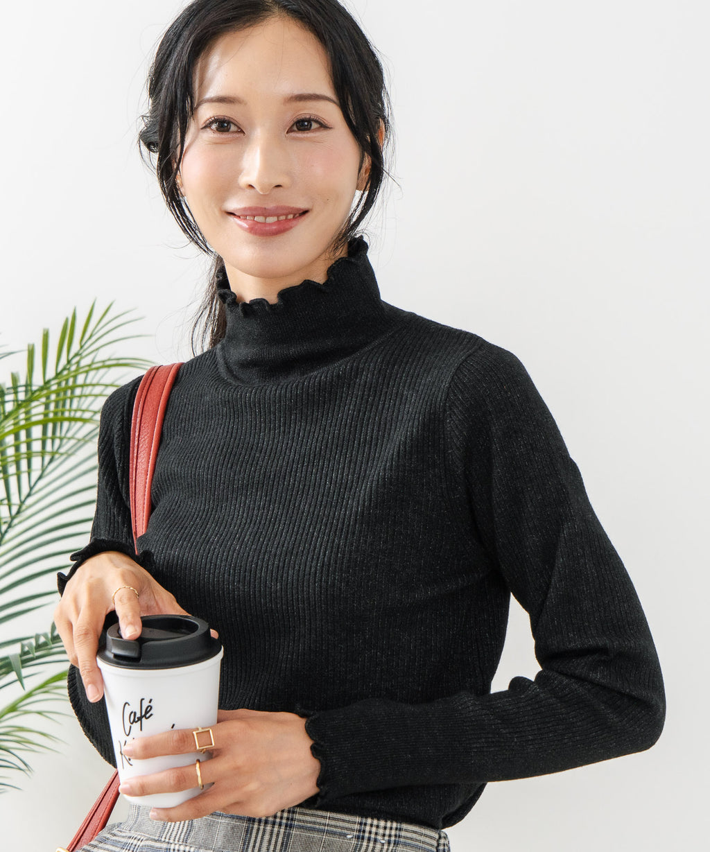 ◆メロウ始末が大人かわいい、すっきりと着こなせるハイネックニットプルオーバー◆