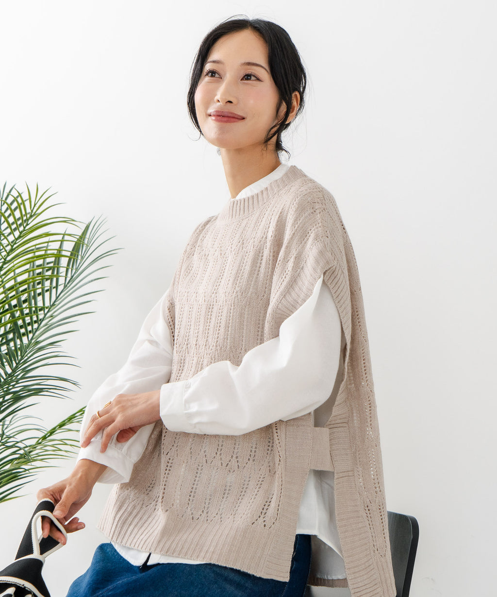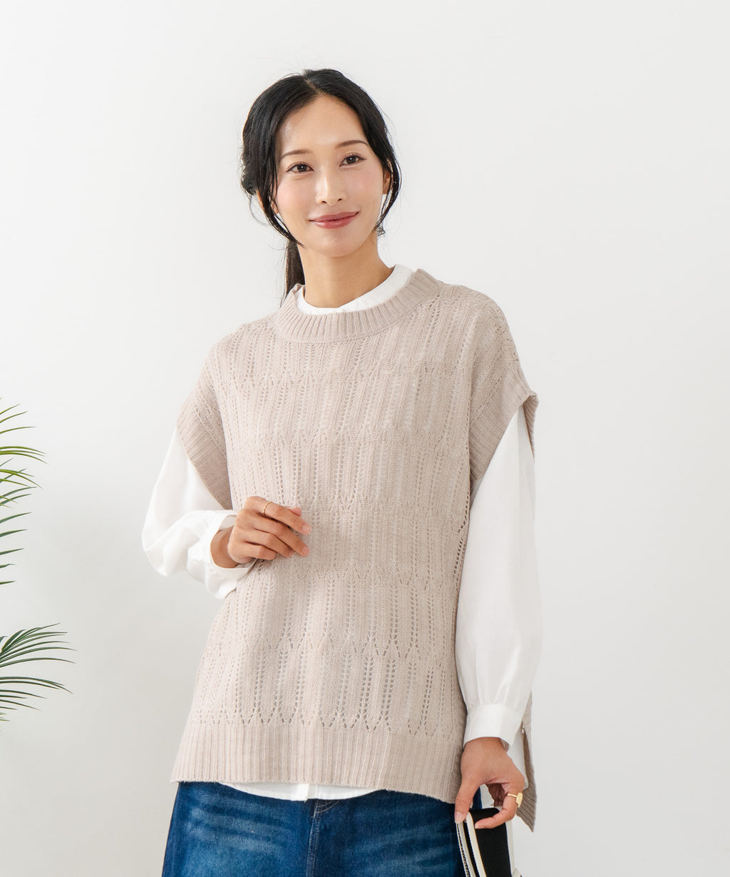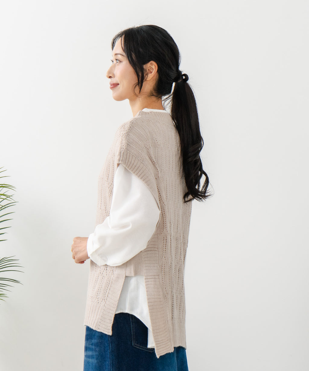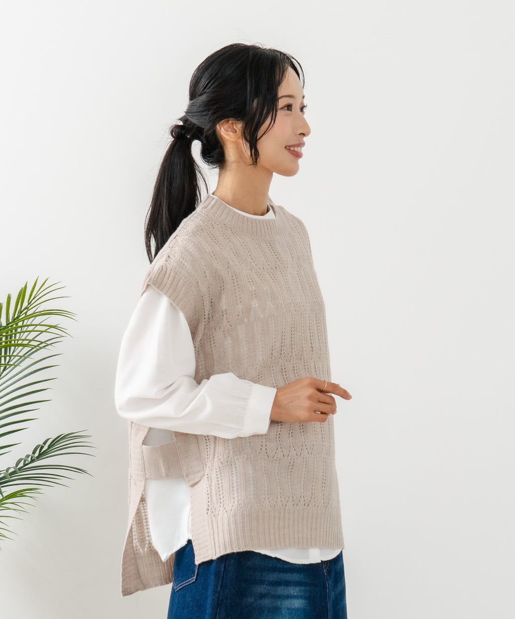 ニットベストとインナーブラウスのアンサンブル商品です。