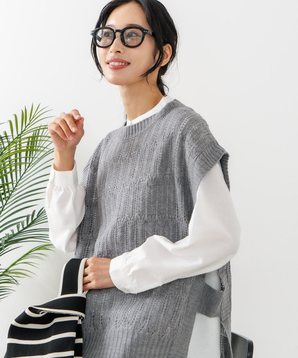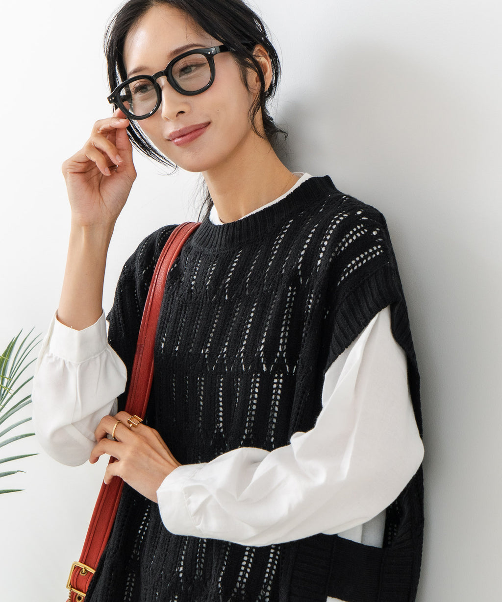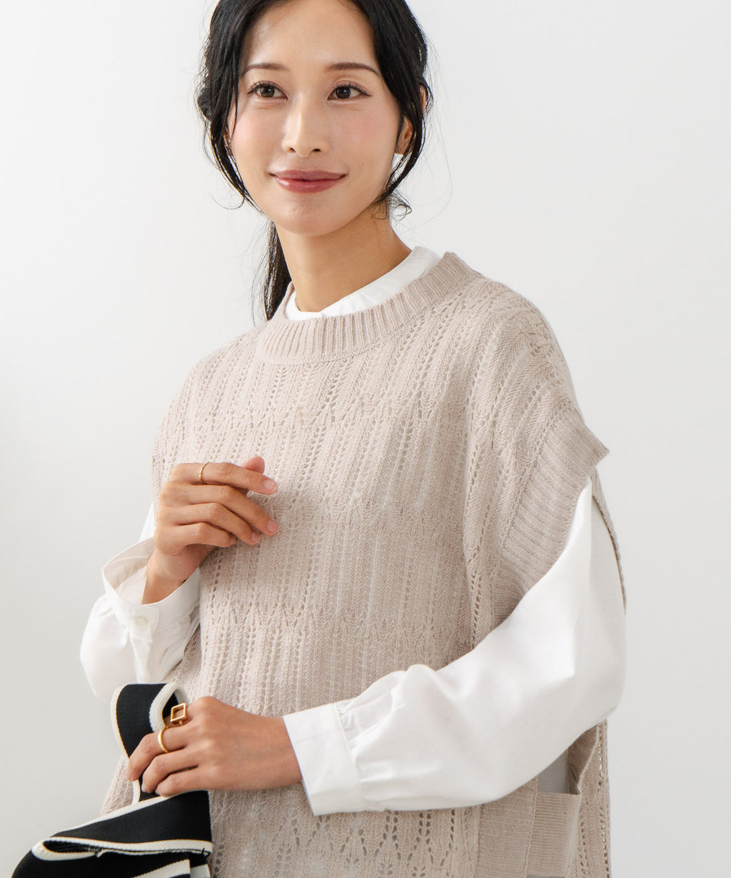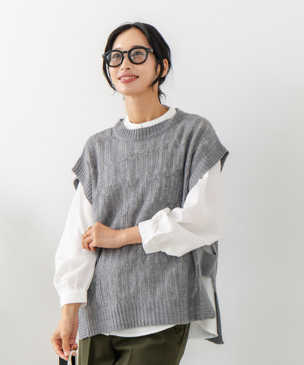 ニットベストとインナーブラウスのアンサンブル商品です。