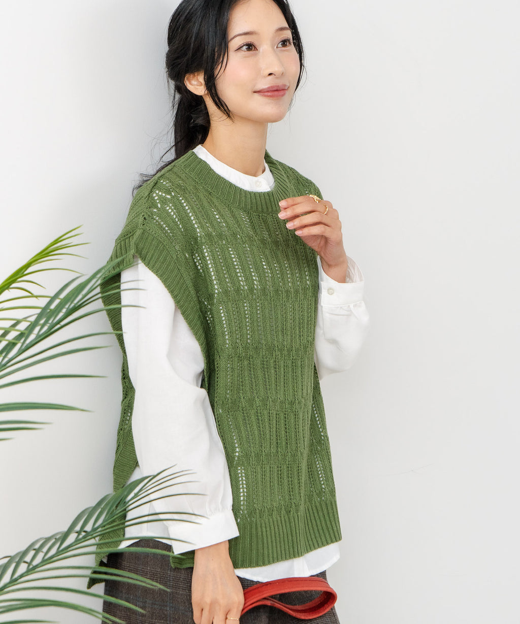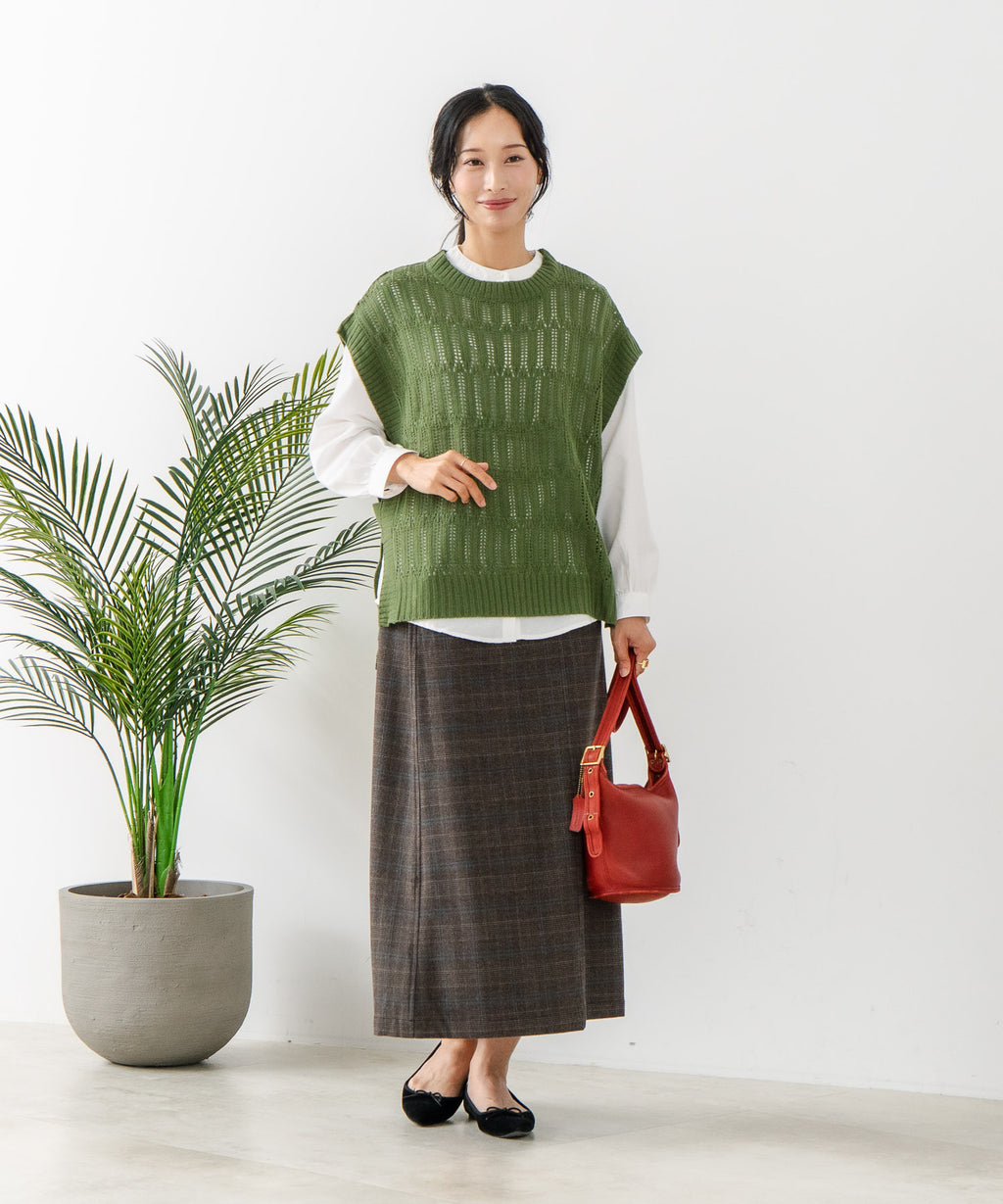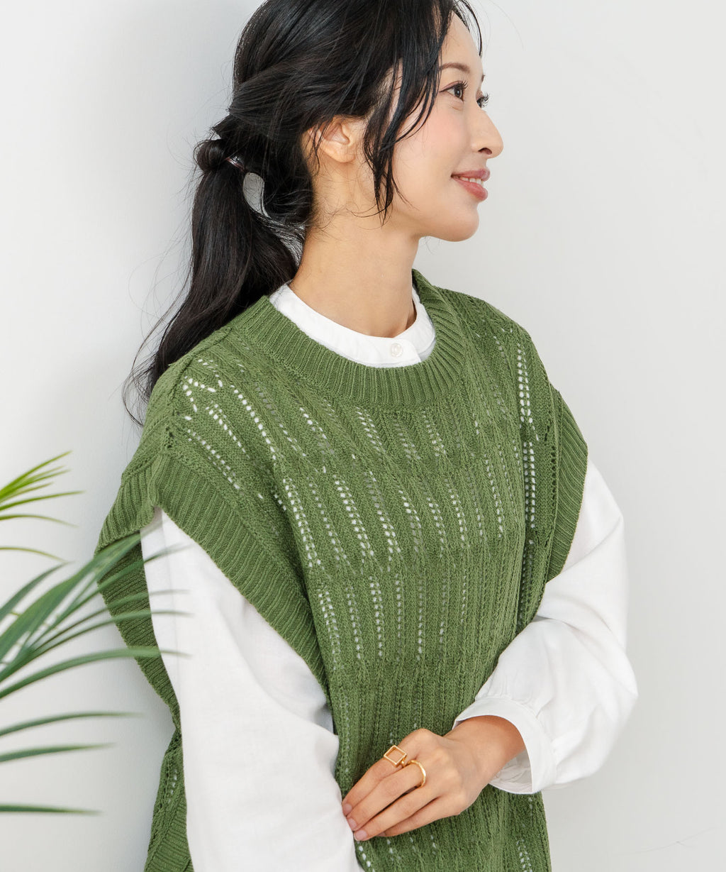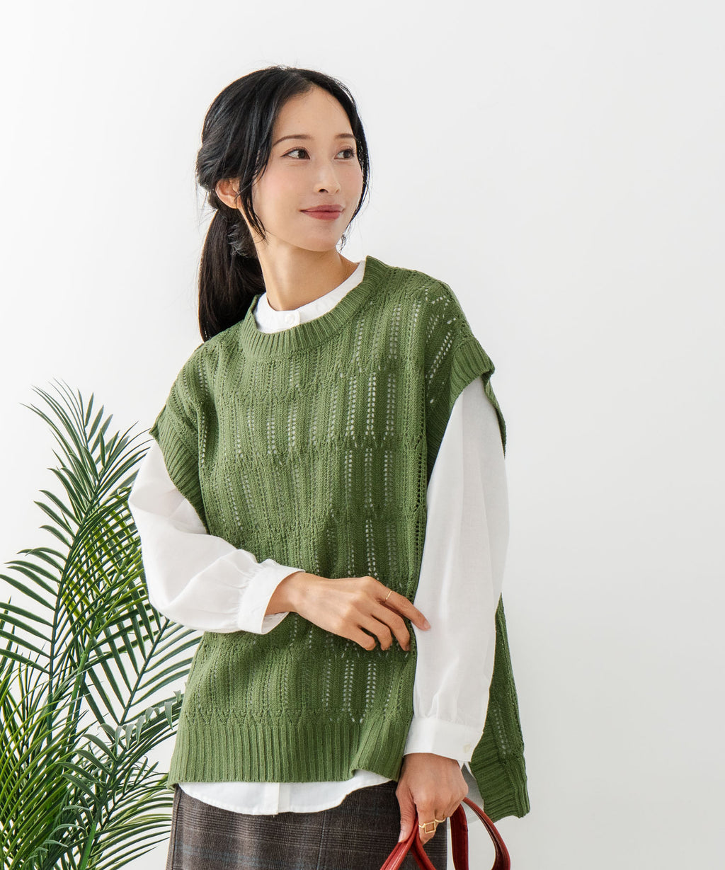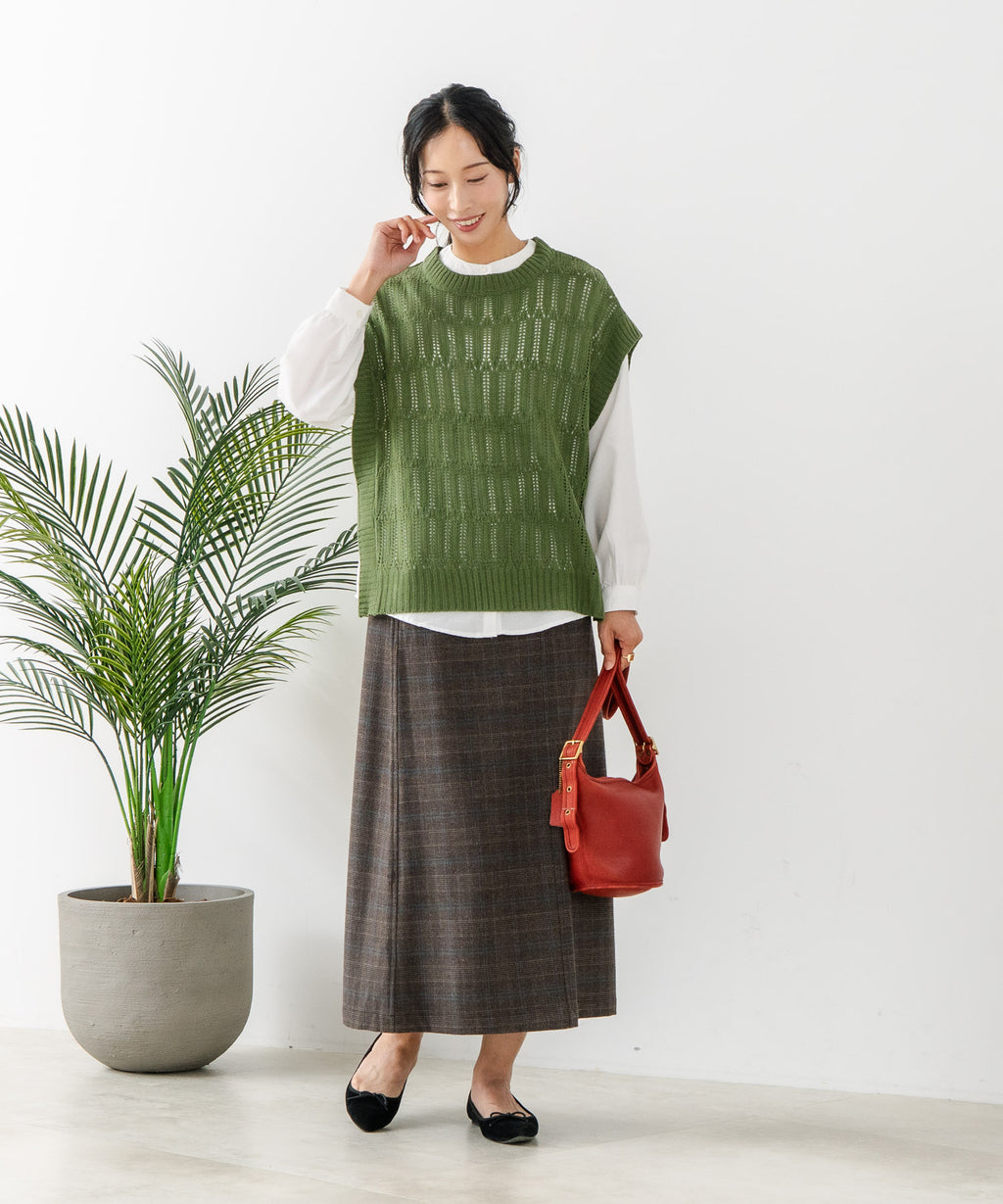 ニットベストとインナーブラウスのアンサンブル商品です。
