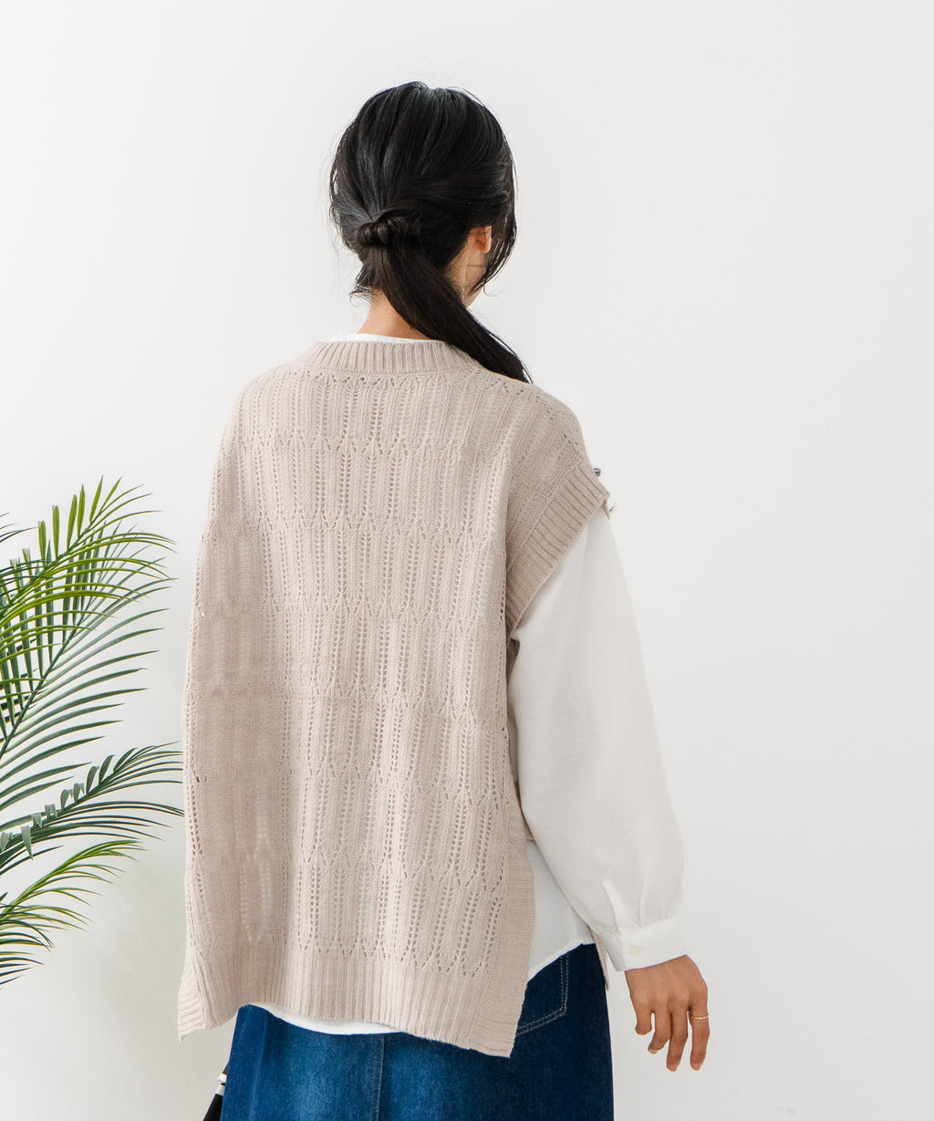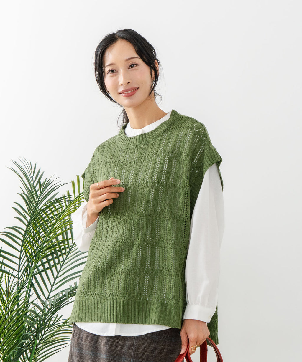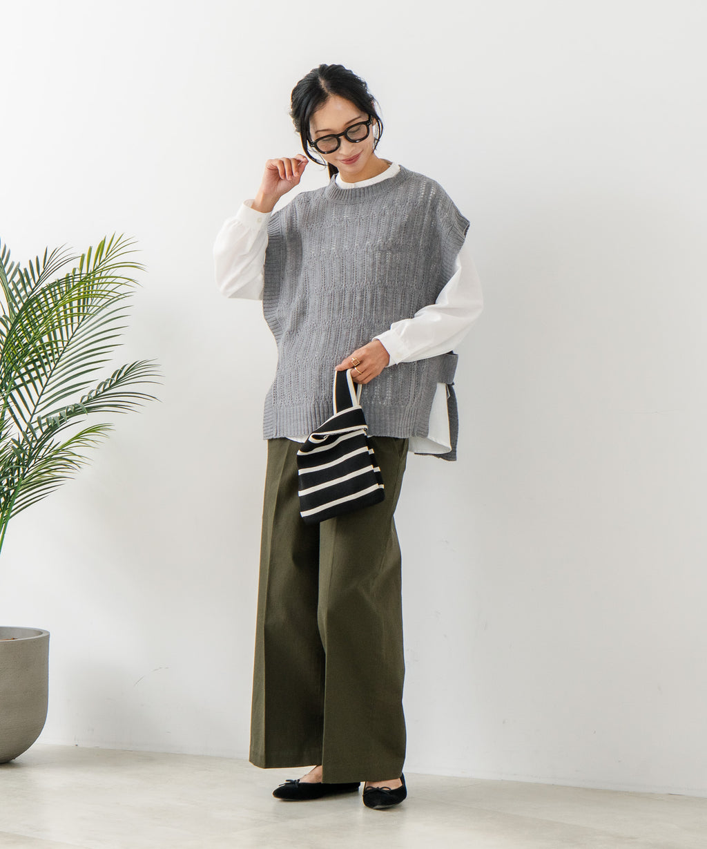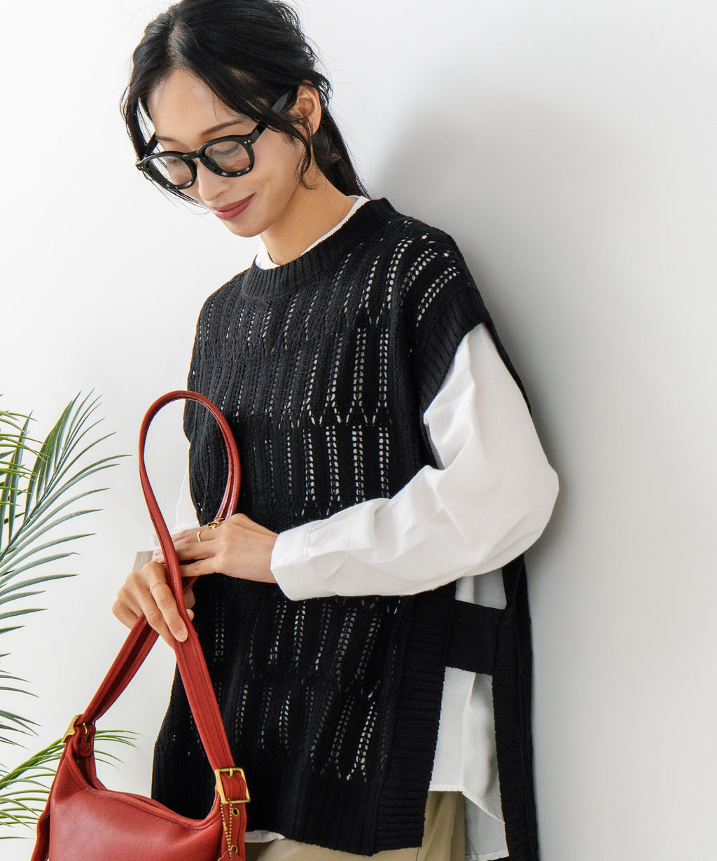 ニットベストとインナーブラウスのアンサンブル商品です。