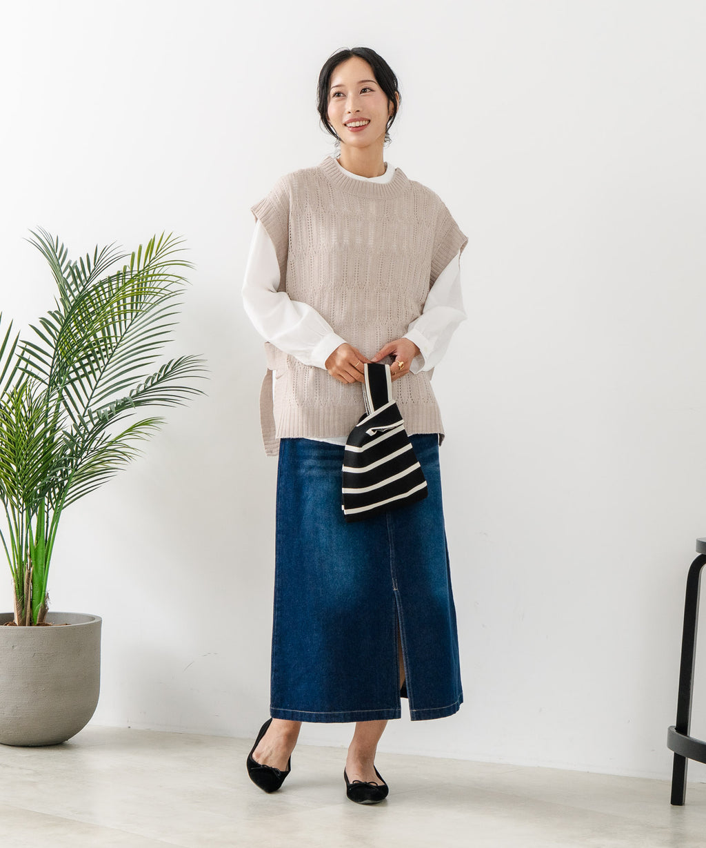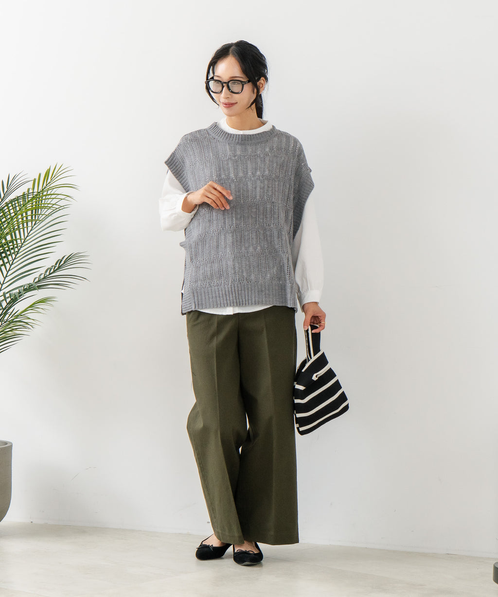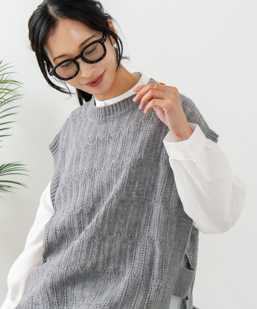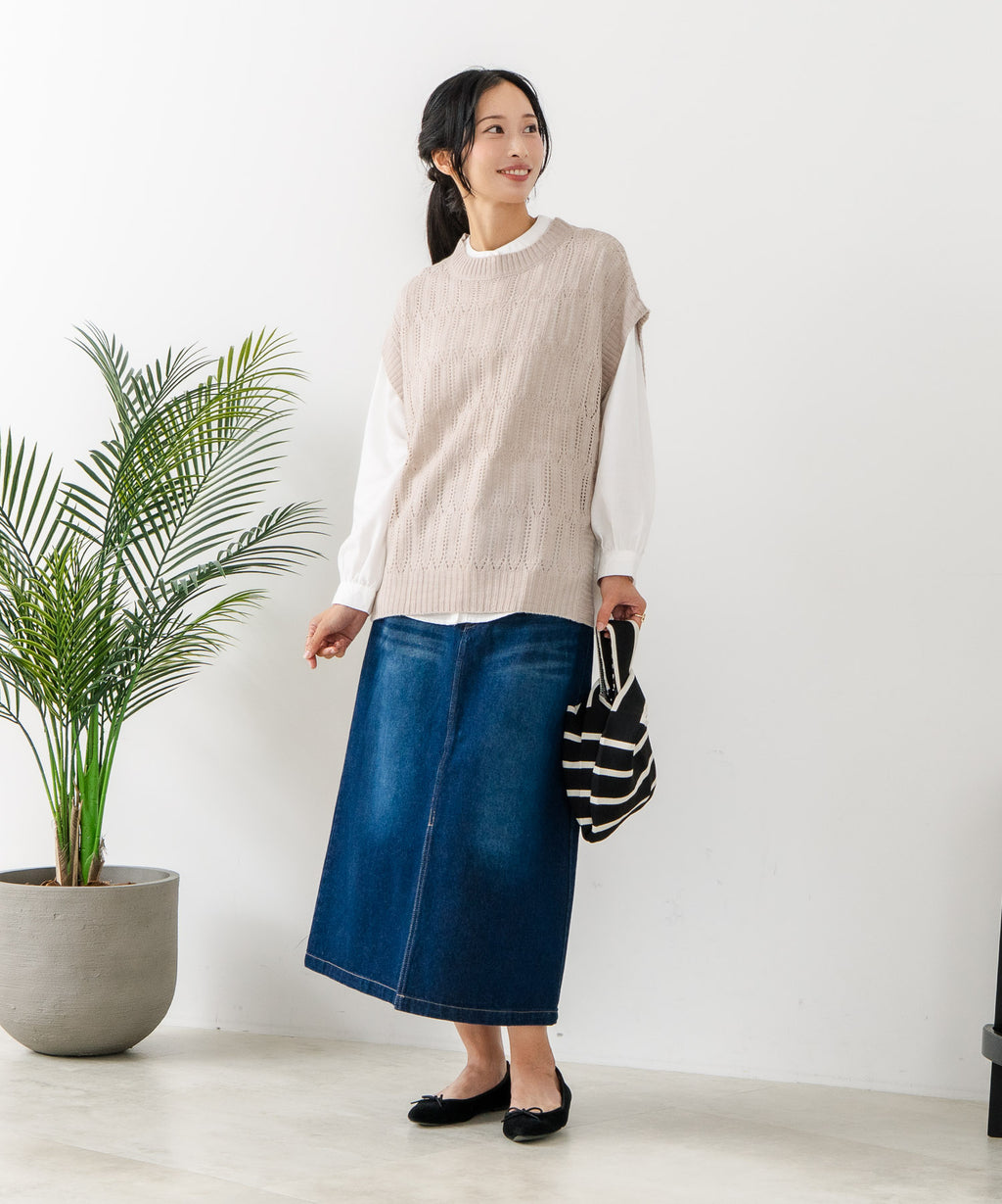 ニットベストとインナーブラウスのアンサンブル商品です。