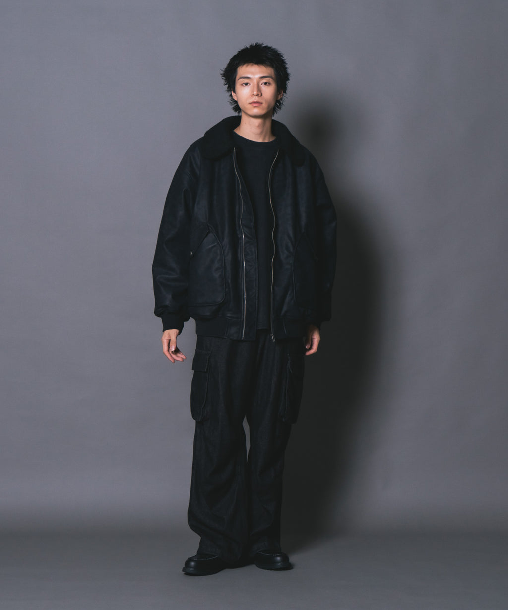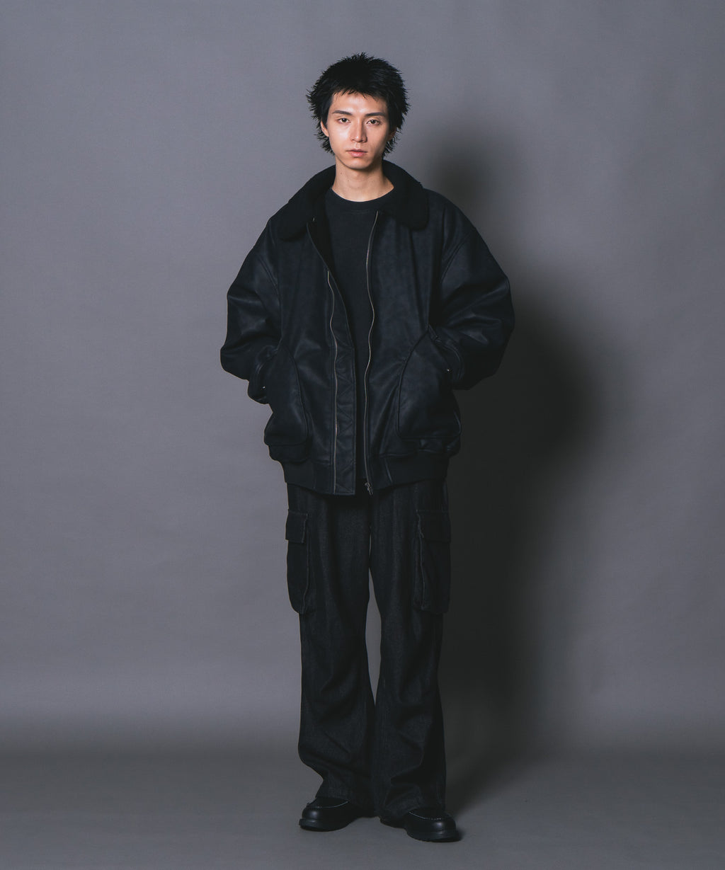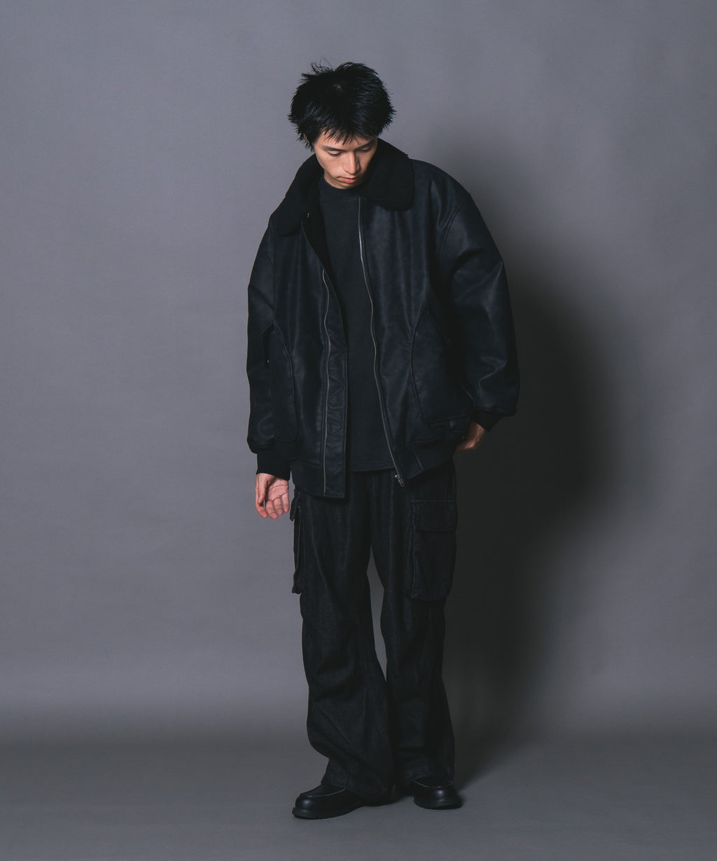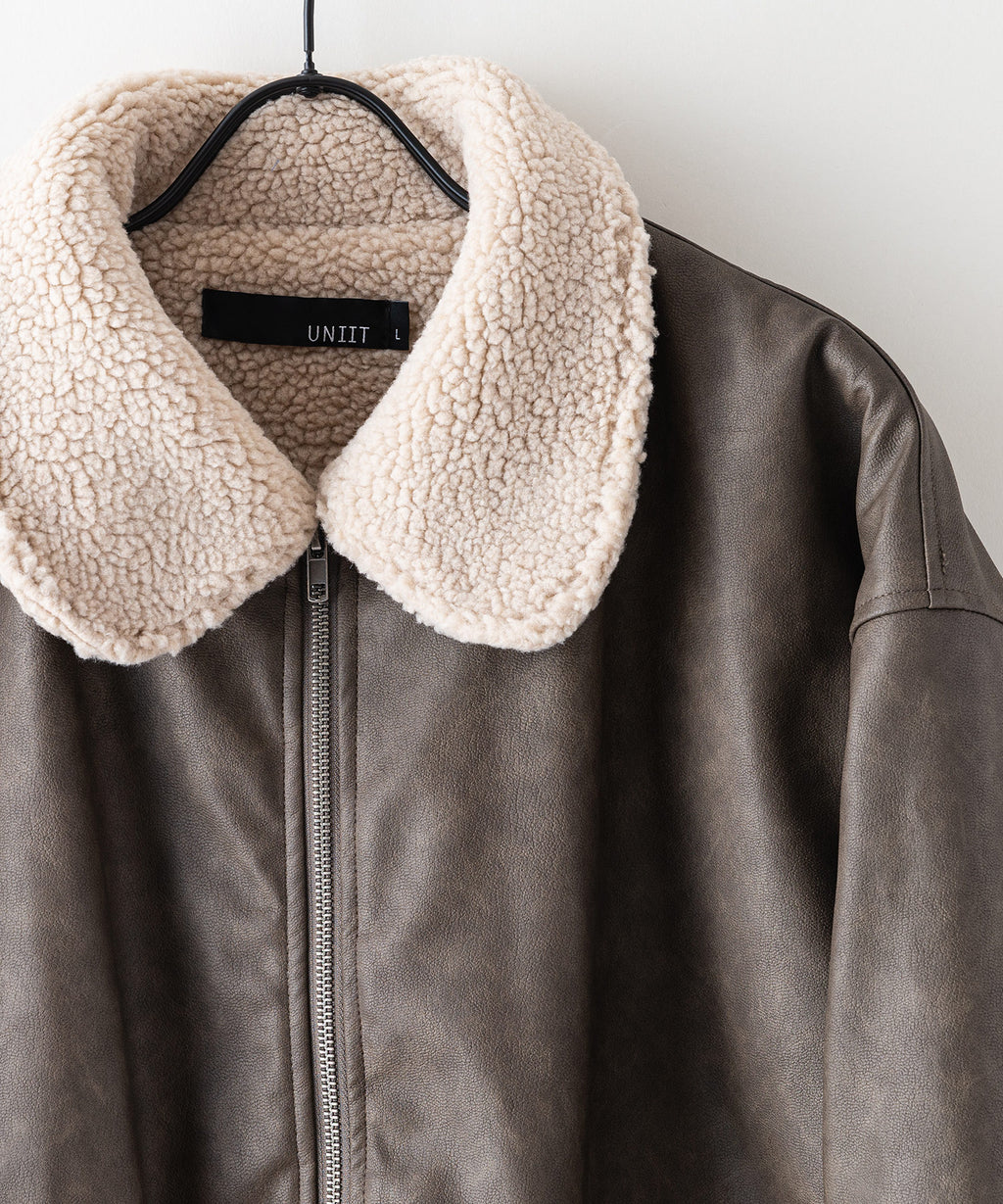 表地:合成皮革 裏地:ポリエステル100% 衿部分:ポリエステル100% リブ部分:ポリエステル97%ポリウレタン3%