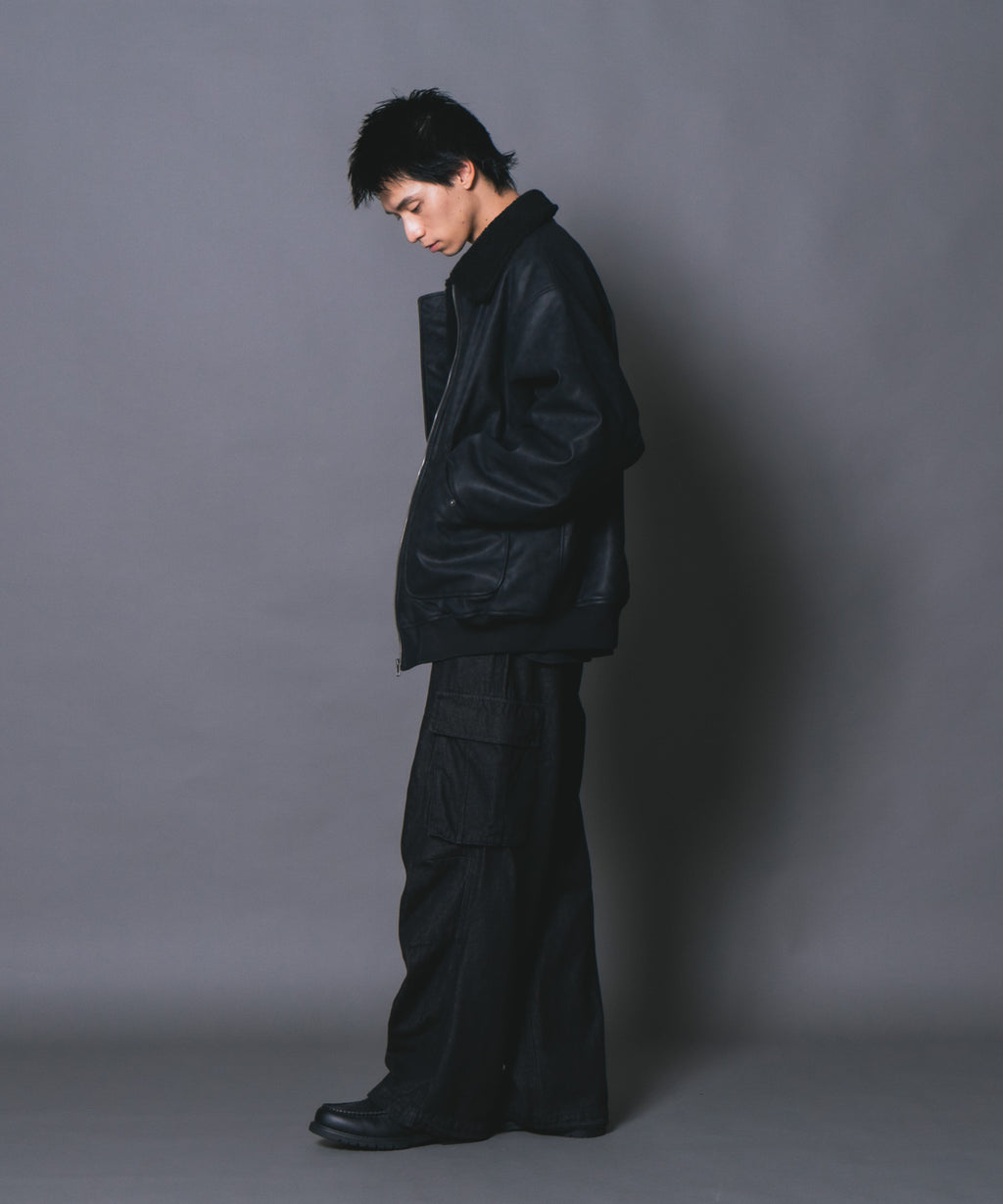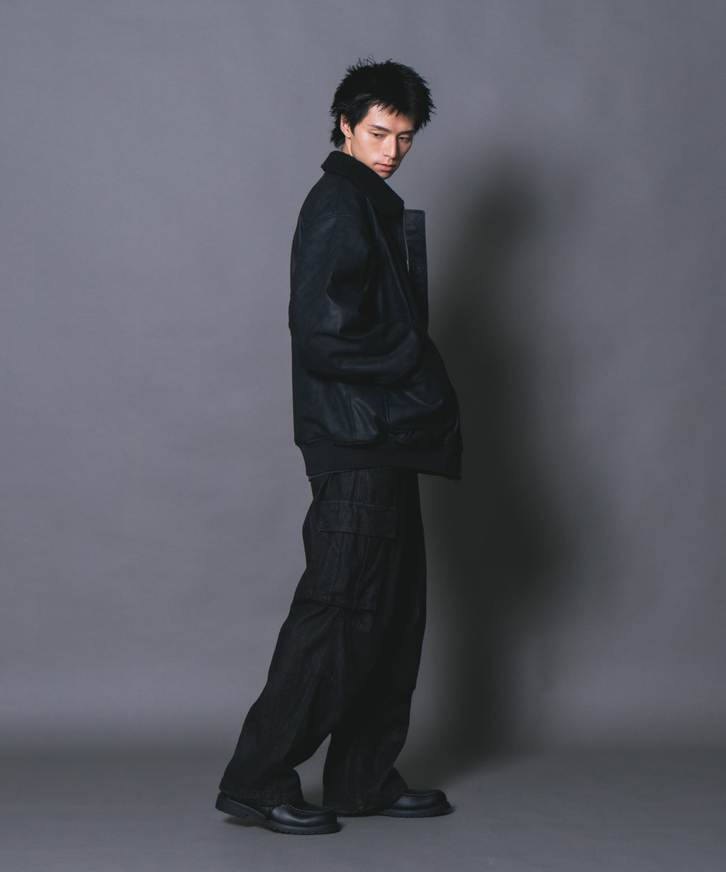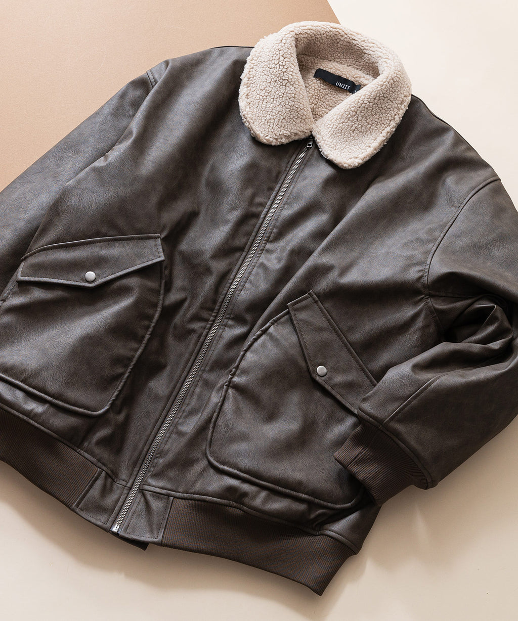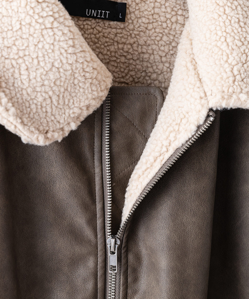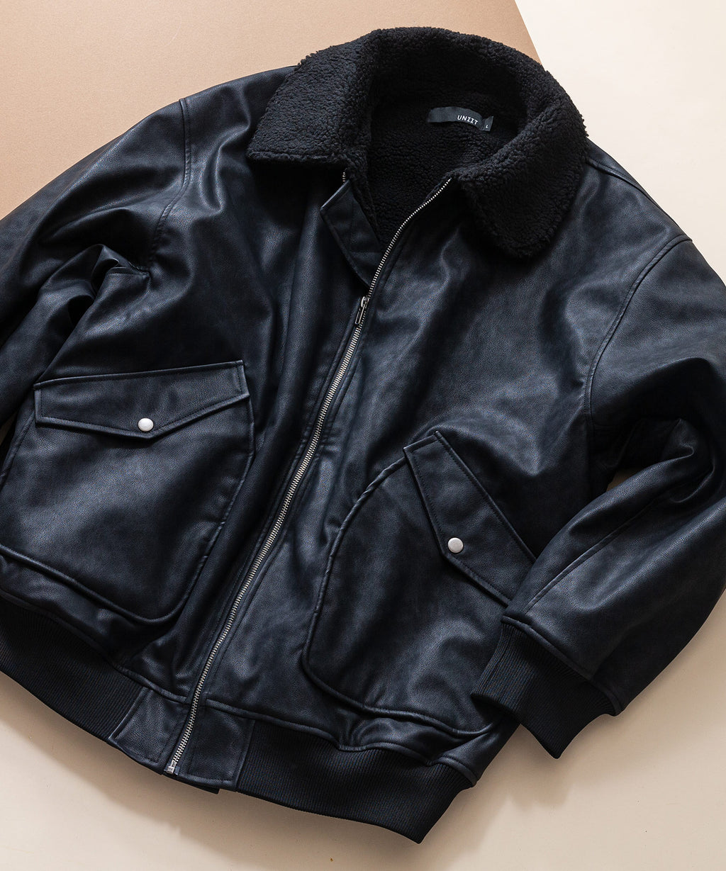 表地:合成皮革 裏地:ポリエステル100% 衿部分:ポリエステル100% リブ部分:ポリエステル97%ポリウレタン3%