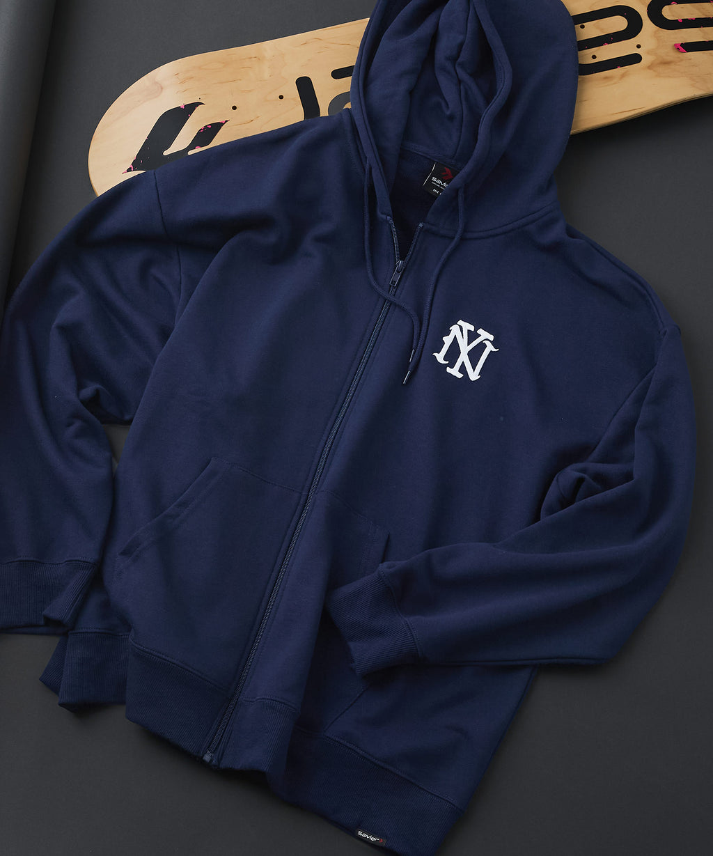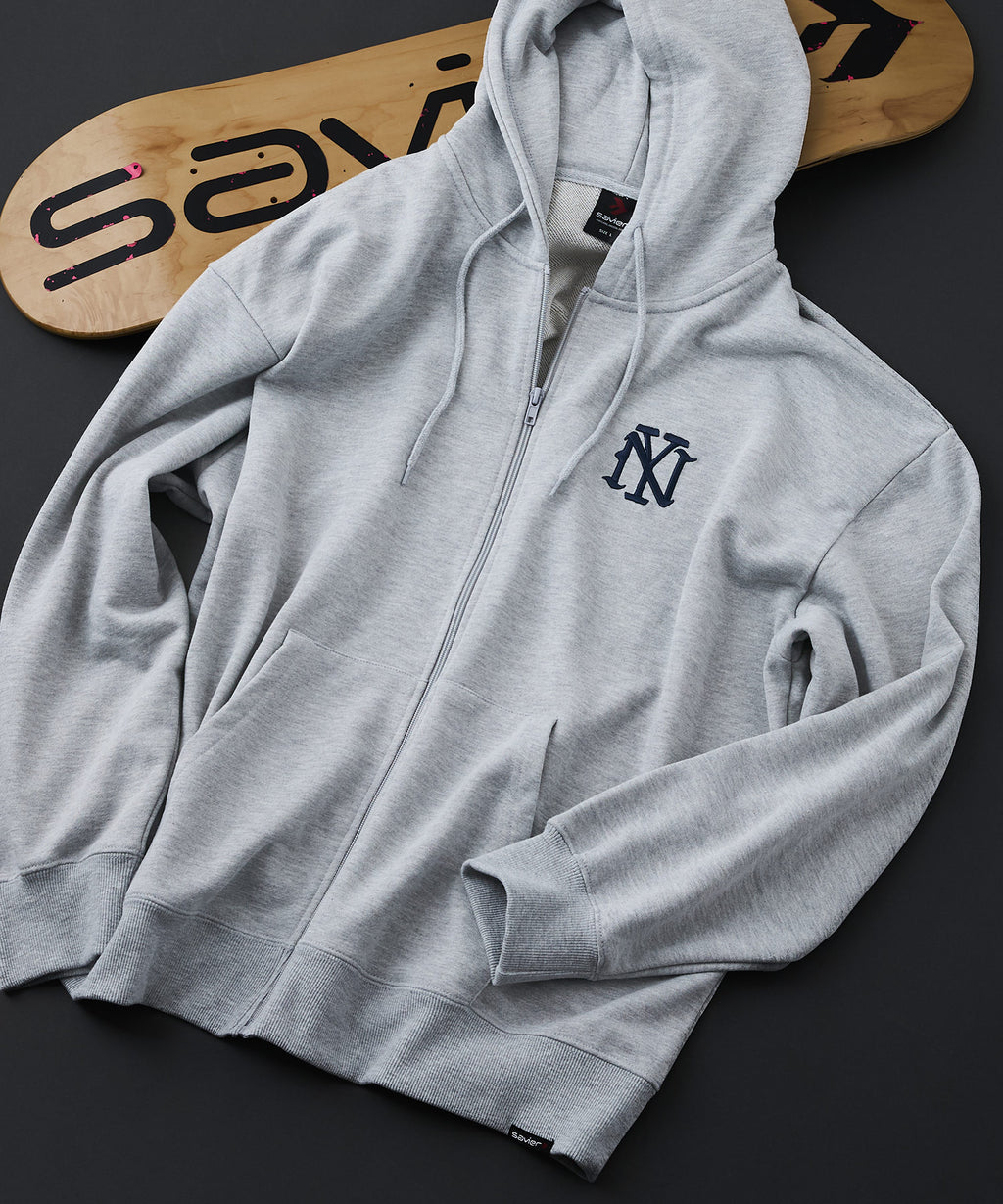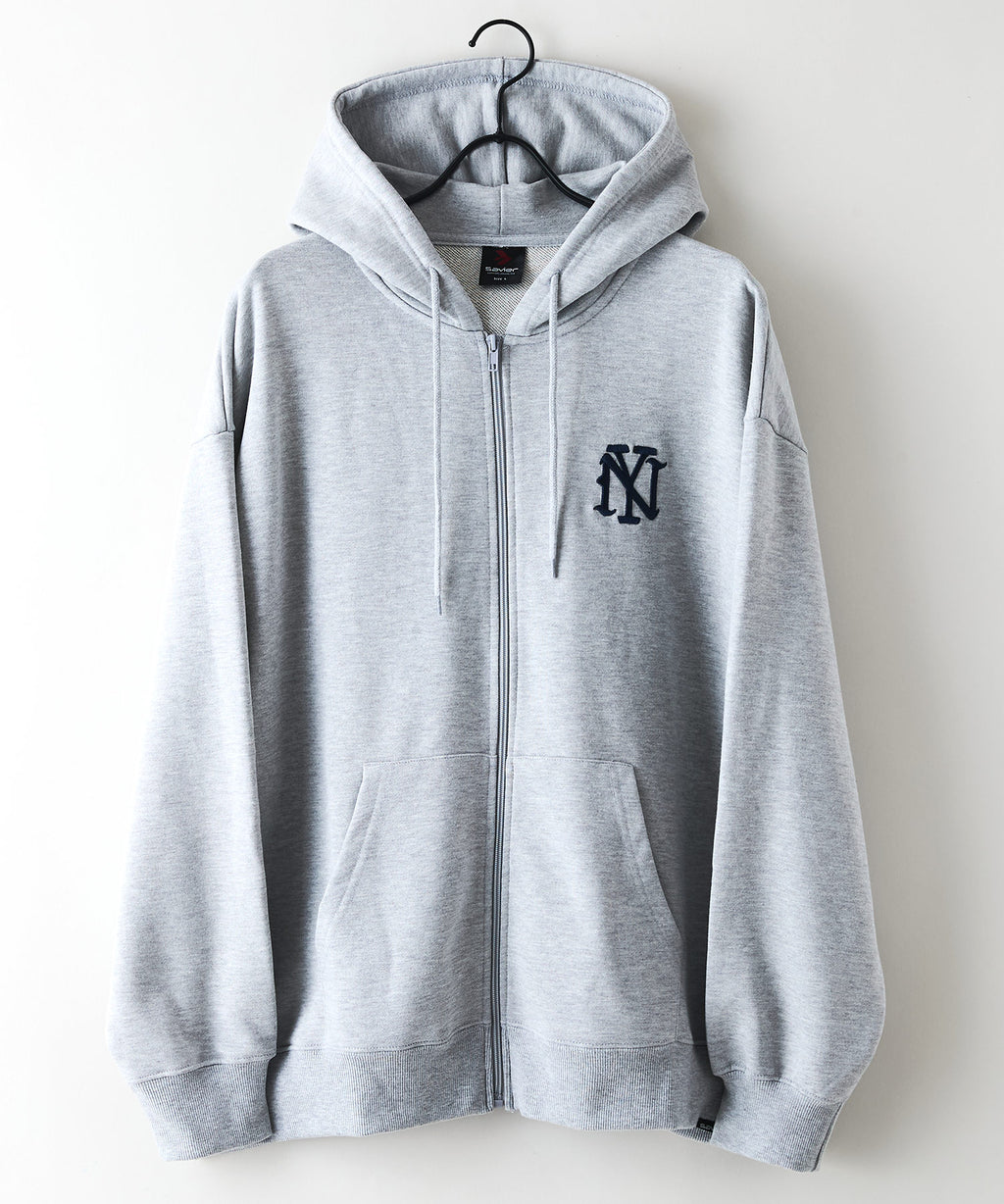 【SAVIER:サビアー】NY ロゴ刺繍 ショート丈 フルジップパーカー 【セットアップ可能】