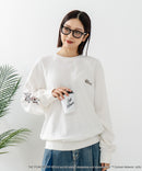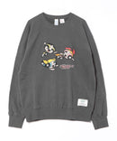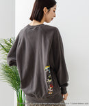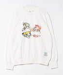 キャラクターを前面にプリント。カスレ風のプリント技法でまるでビンテージスウェットのような風合いを表現しました。さりげないバックプリントもかわいいです♡