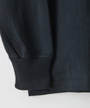 先染めのため、嵩高かつ柔らかな生地風合いと毛羽立ちが少なく、繰り返し着用しても色あせない“BLACK”を実現。