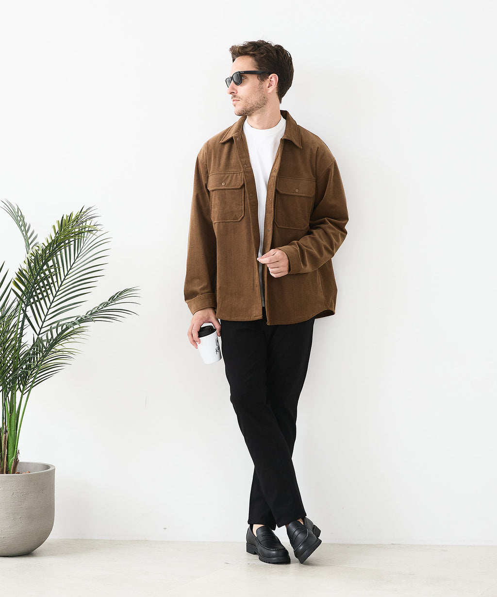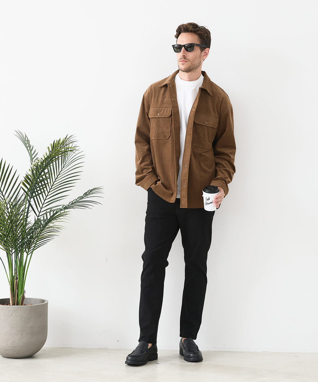 シンプルな無地カットソーや無地スウェット、フーディーとの相性抜群で、秋冬にぴったりの鉄板カジュアルコーデが完成!