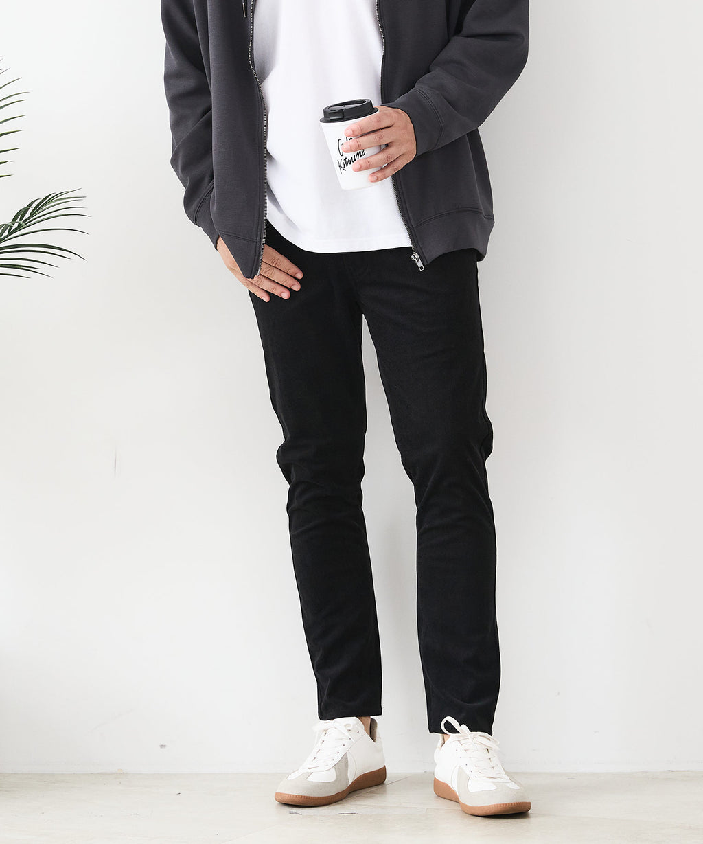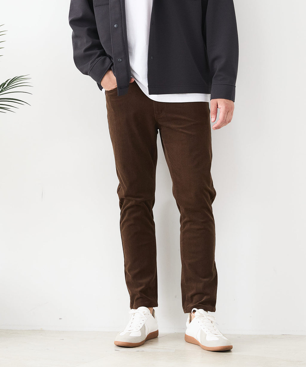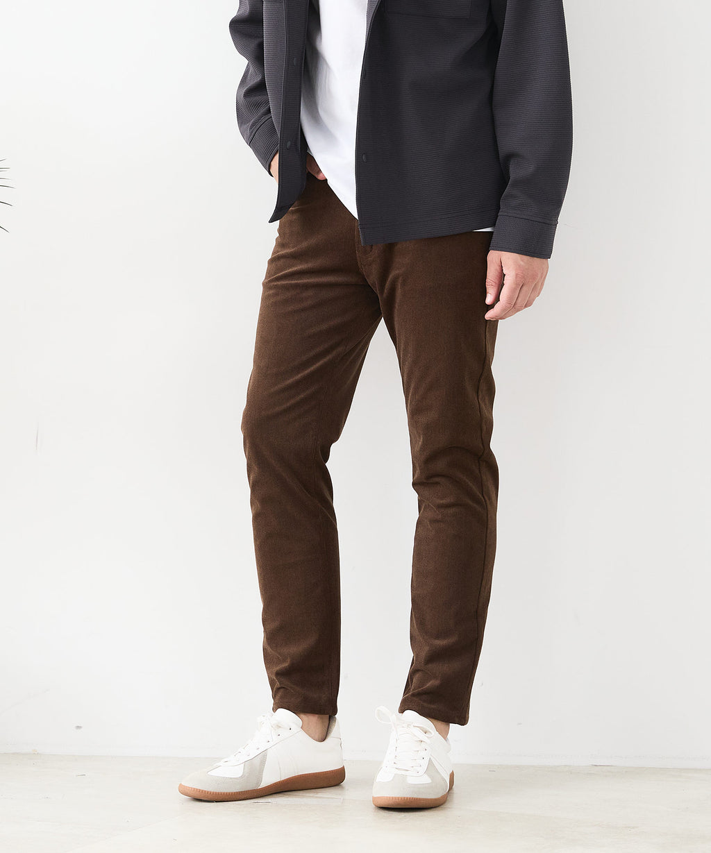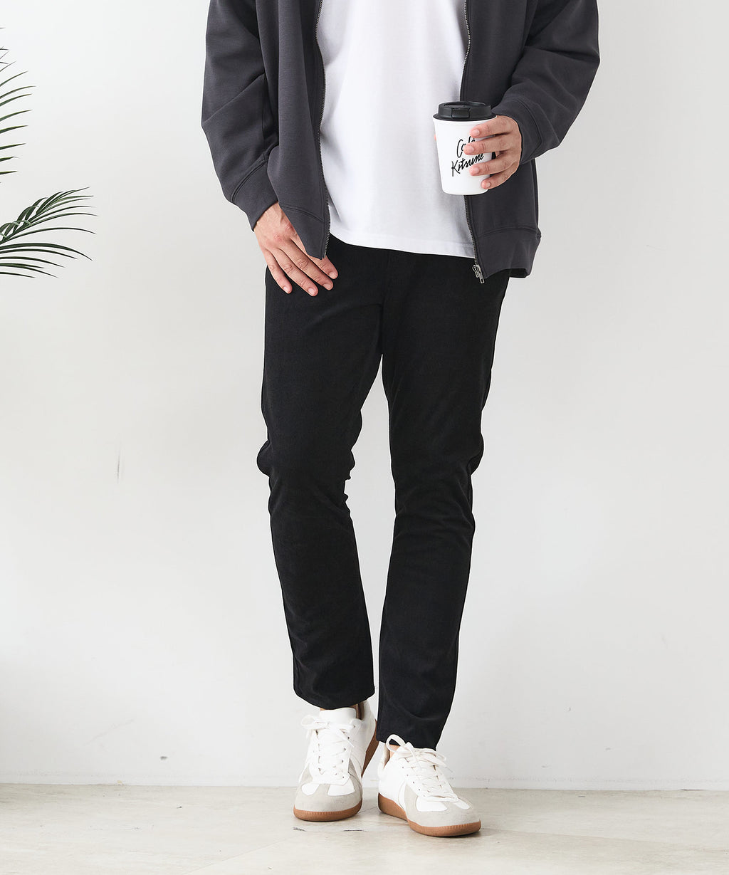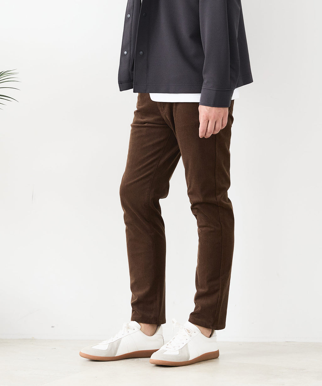 ◆ほどよいストレッチのあるニットコーデュロイを使用した温かく快適な履き心地のイージーパンツ◆