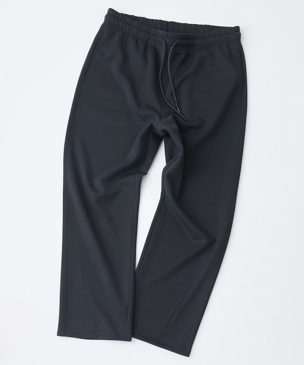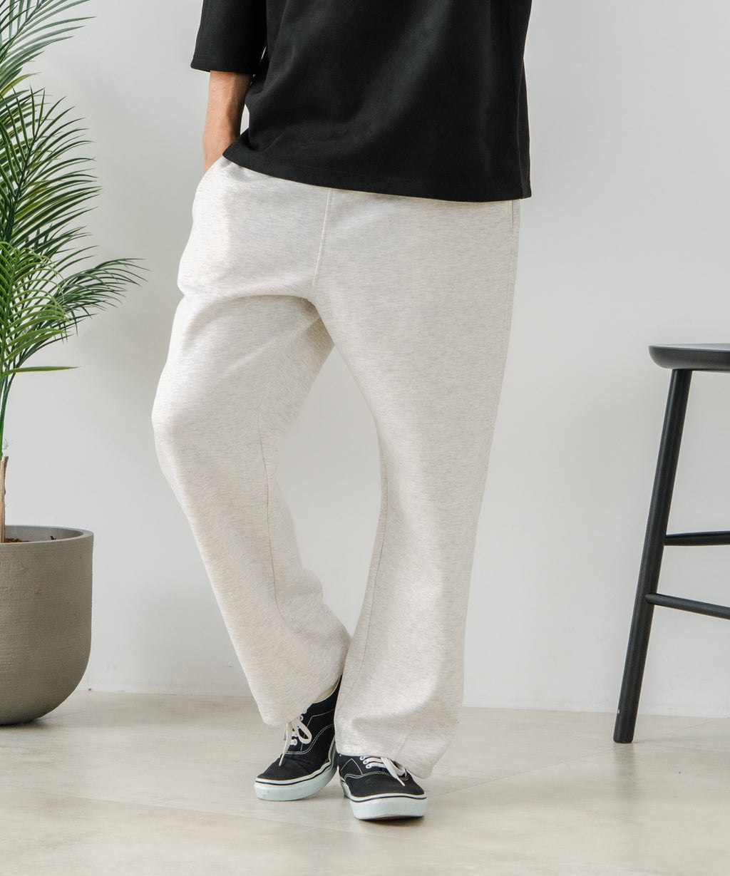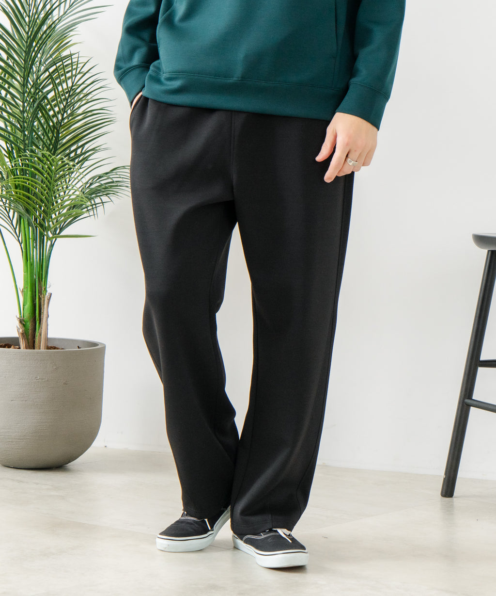 ハリがありシワになりにくく、ストレッチ性も高く動きやすいパフィースウェットを使用した、トレンド感あるバレルレッグパンツです。