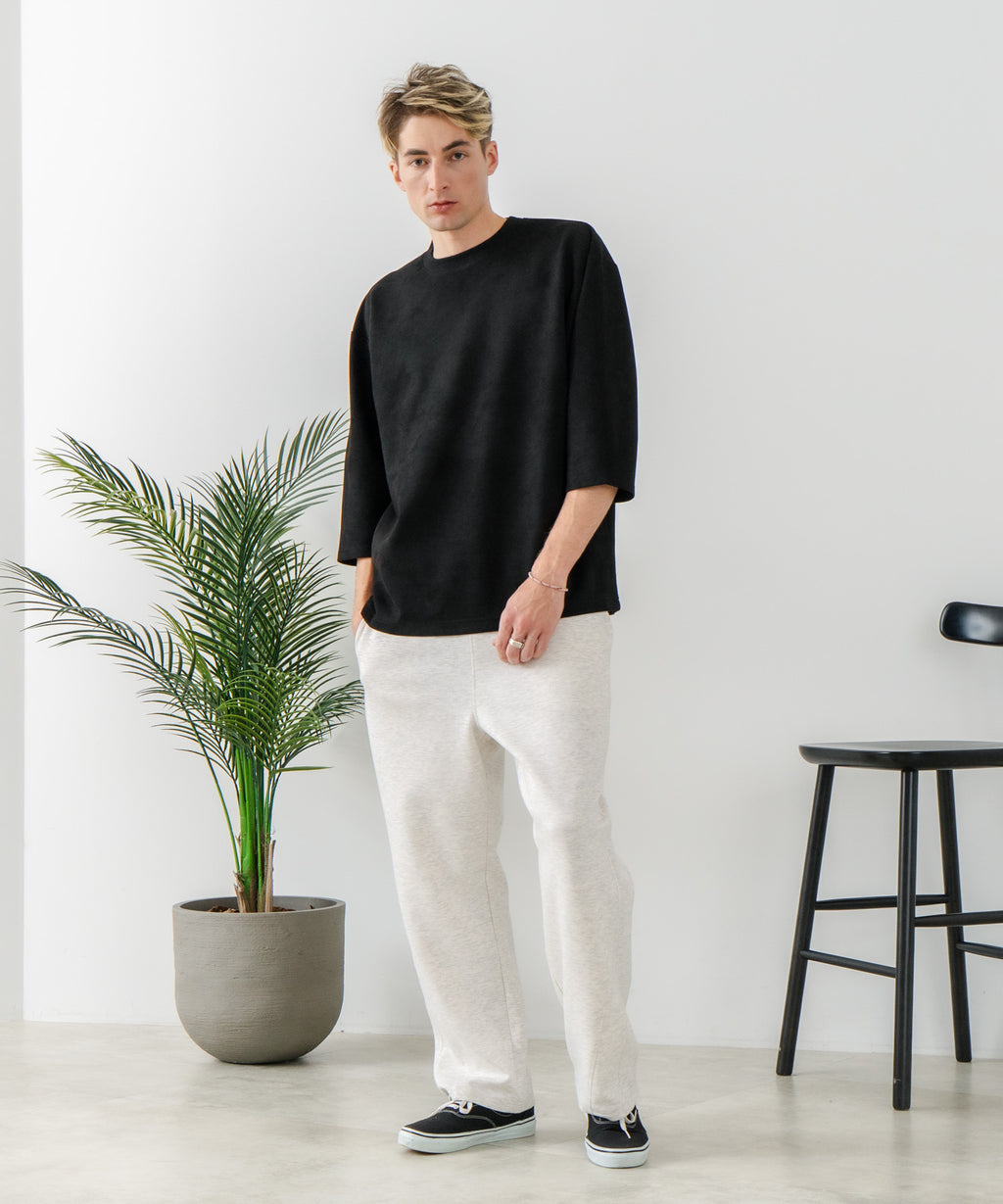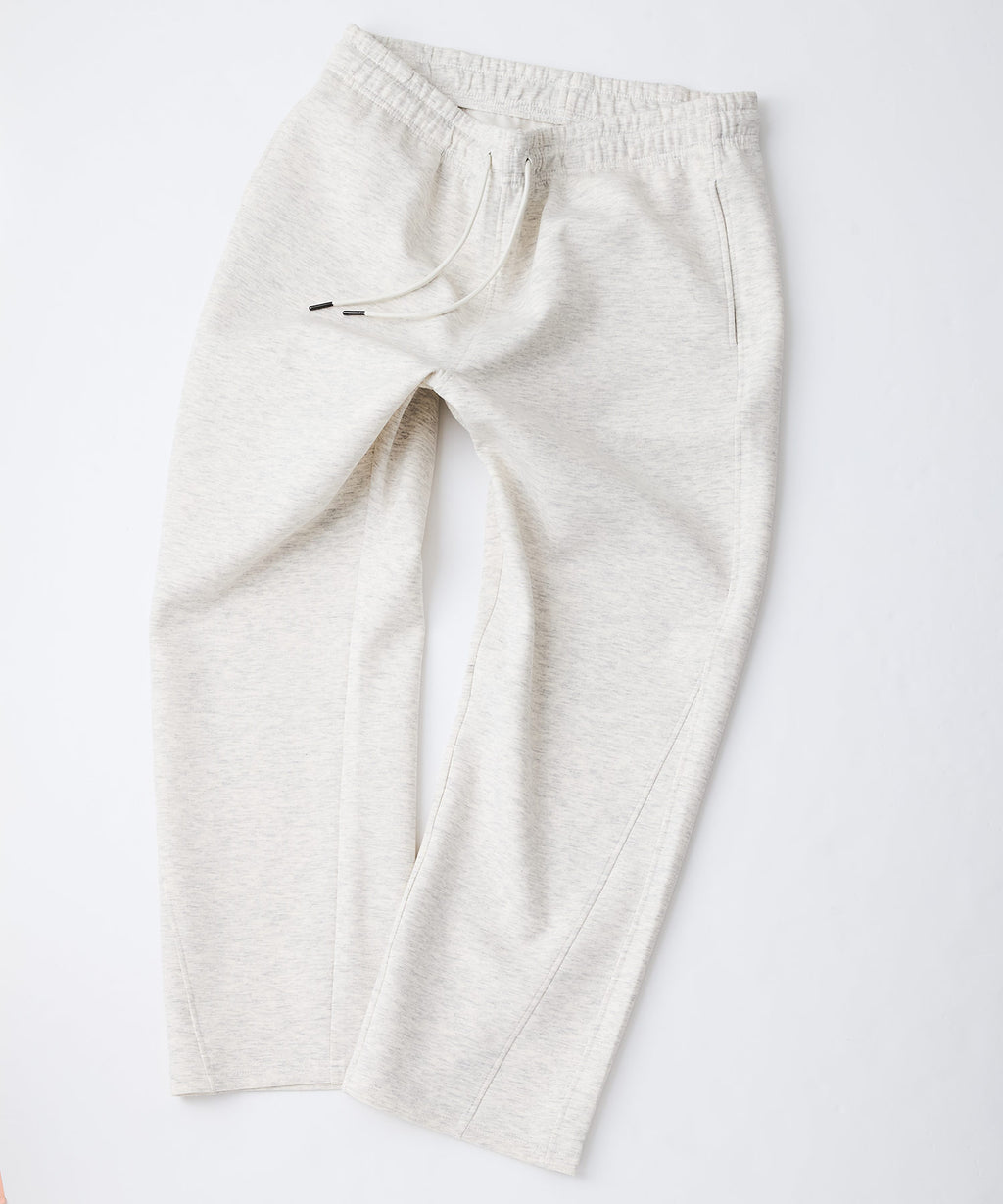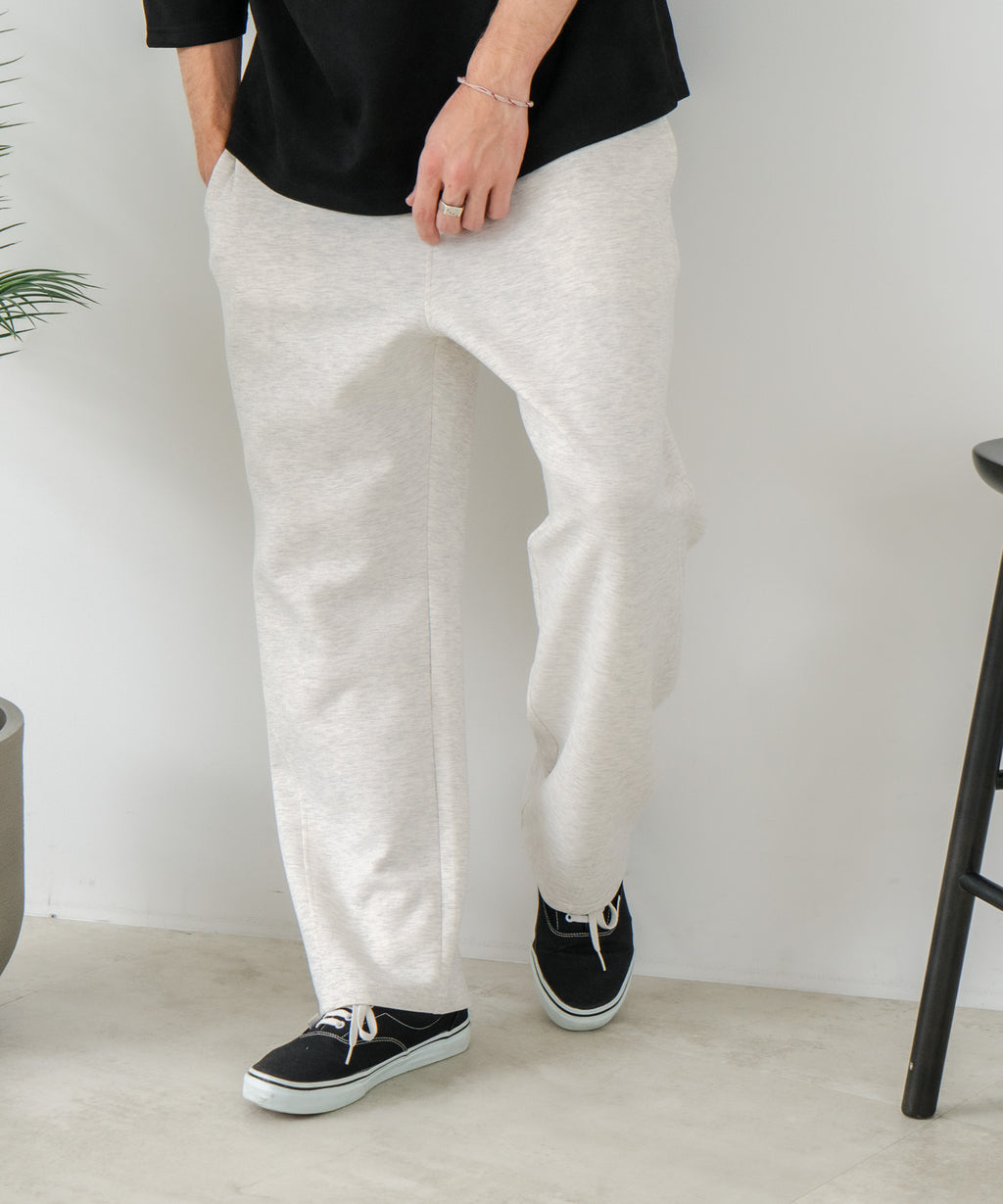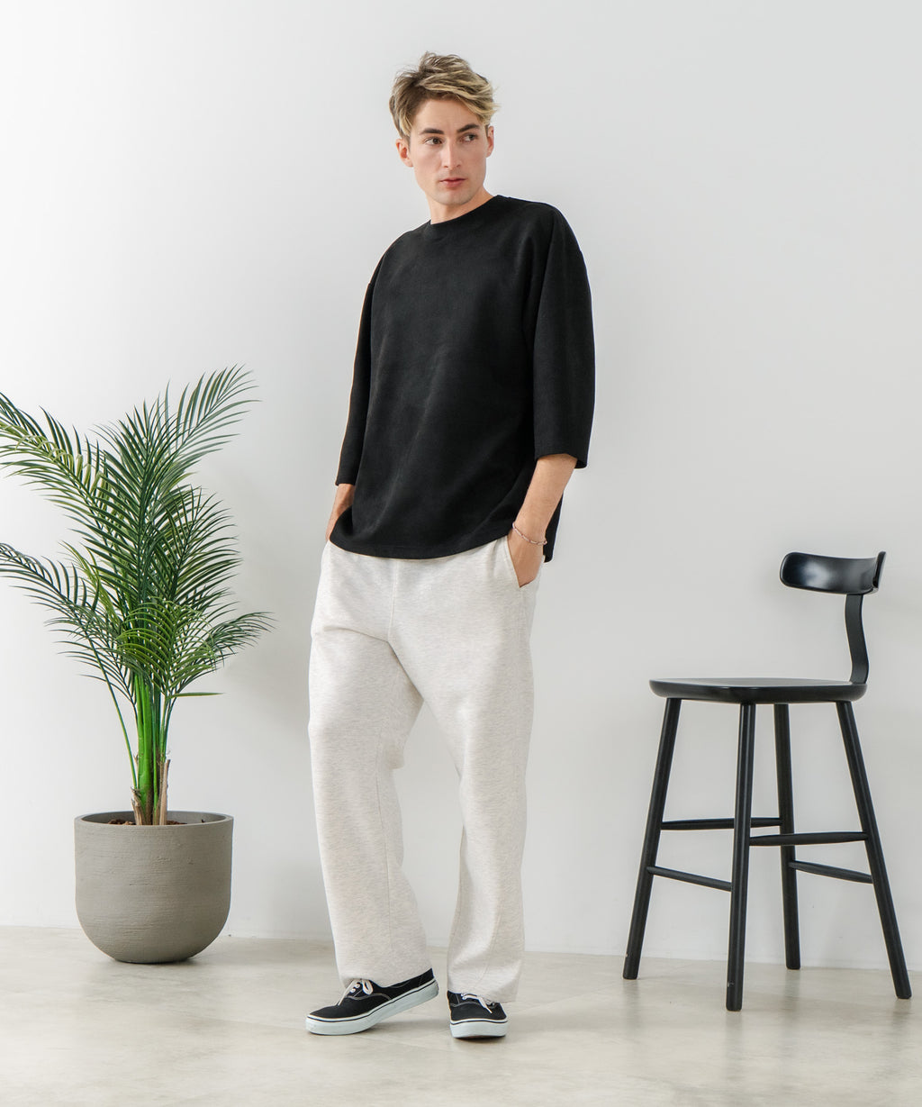 ハリがありシワになりにくく、ストレッチ性も高く動きやすいパフィースウェットを使用した、トレンド感あるバレルレッグパンツです。