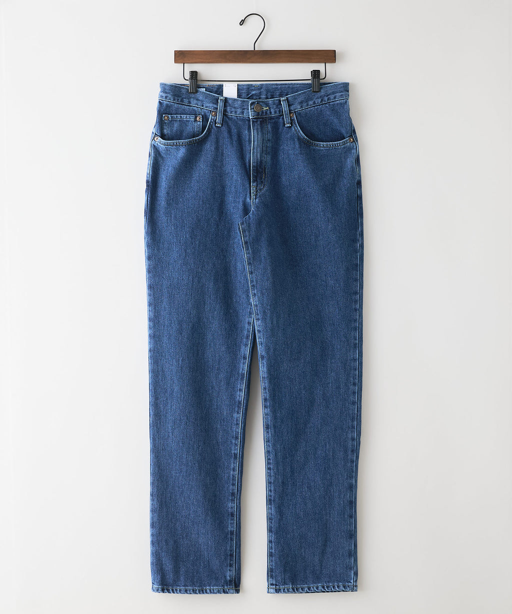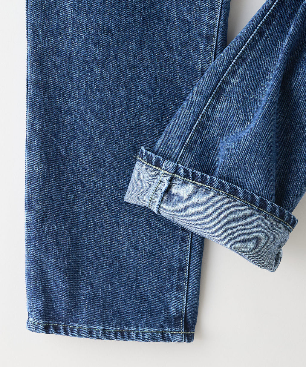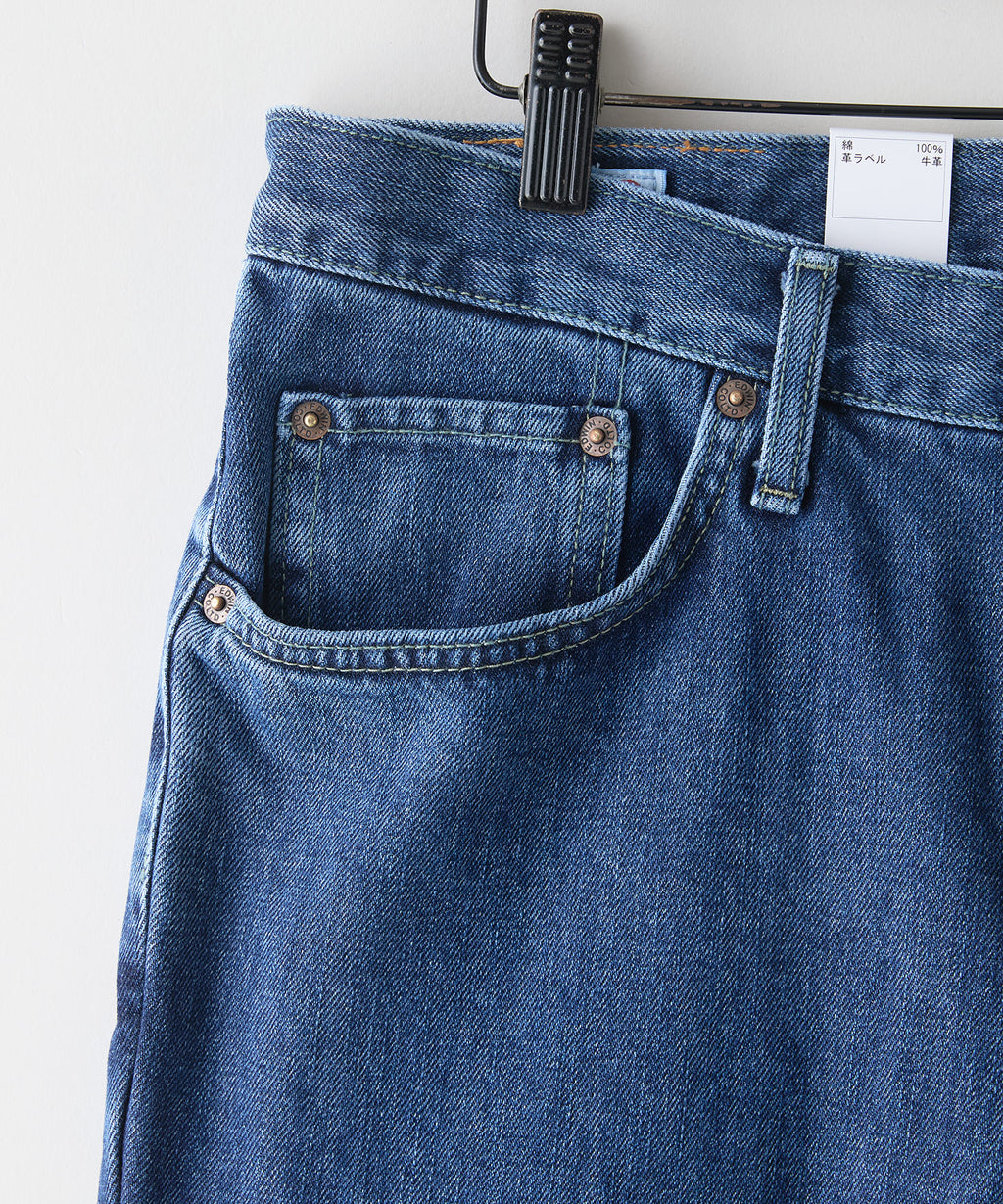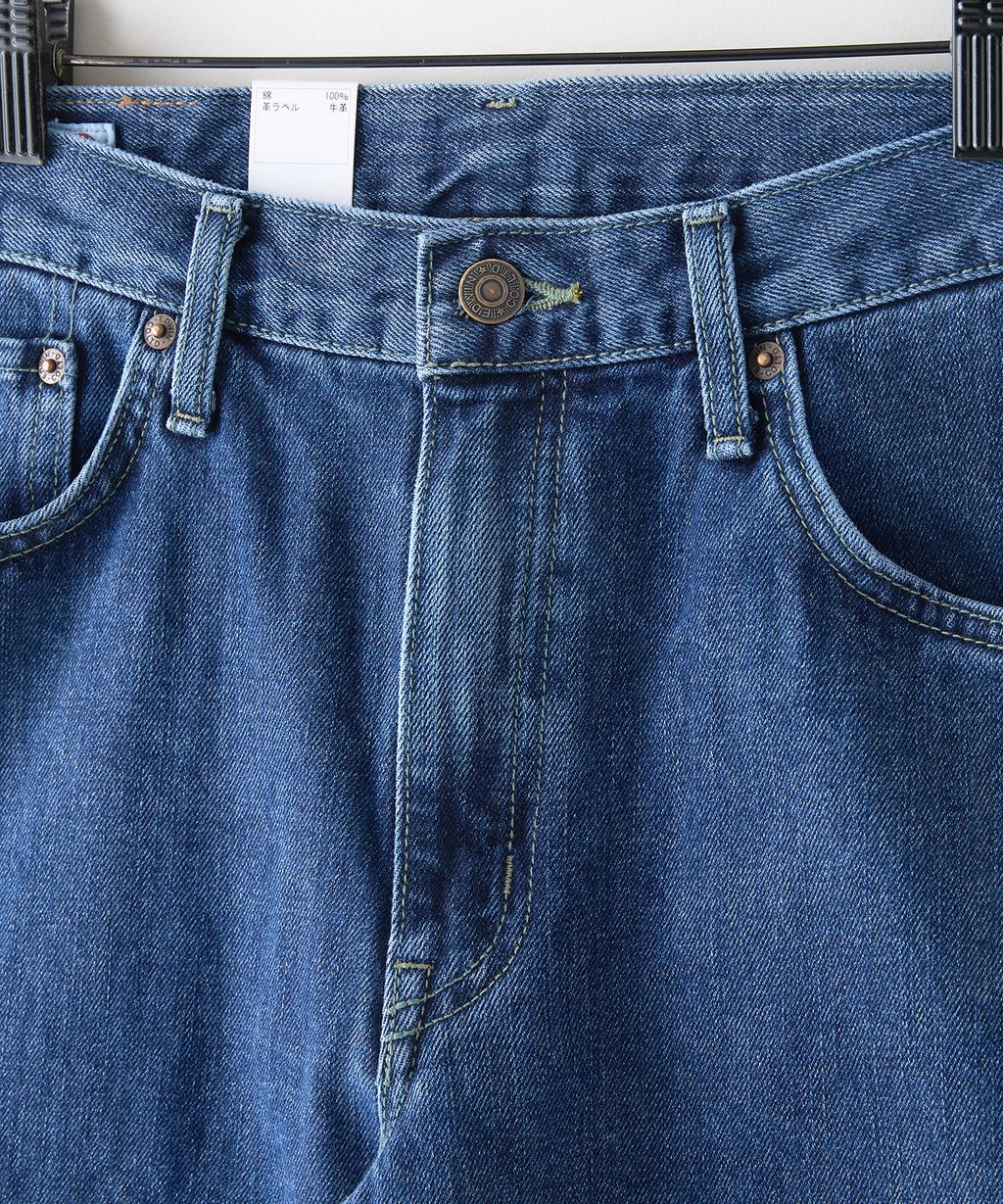 1981年のデビュー当時に使用していた、強度が高く肌ざわりの良いこだわりのRING糸に回帰。13.75オンスデニム生地を使用し、インディゴの濃度を変えて加工によって使い分けています。ワンウォッシュ用には、インディゴ濃度にこだわり濃く、糊の濃度も微妙に調整した綾立ちの美しい生地を使用。ストーンウォッシュ用には、やや浅めのインディゴで、すっきりとしたアタリ感が出やすい生地を採用。