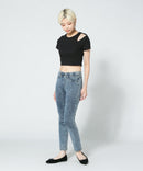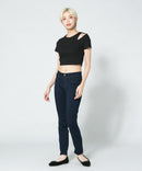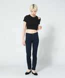 デニムのオシャレさと、レギンスの快適さを兼ね備えた、新しい形のボトムス。
