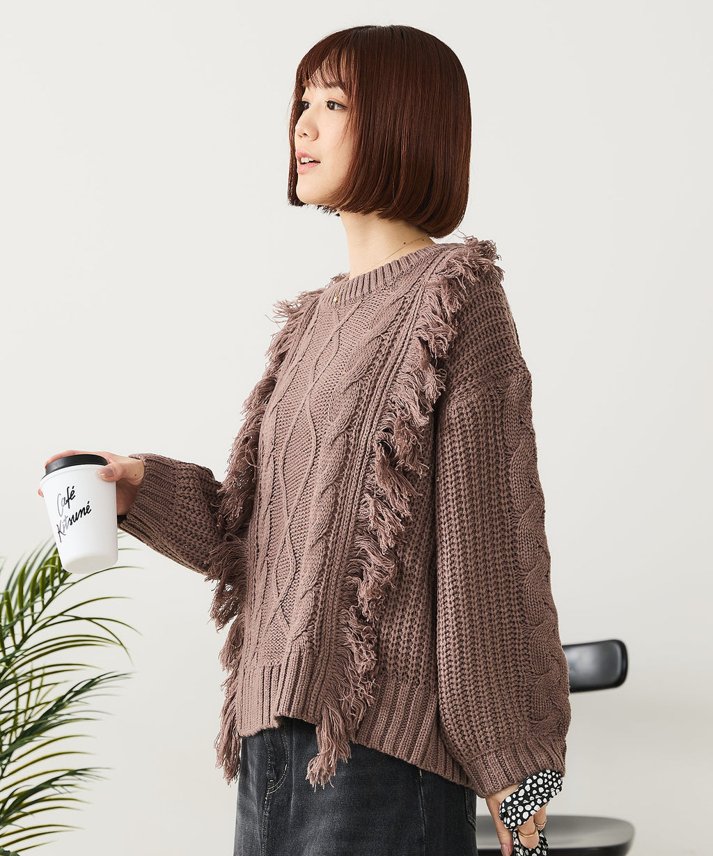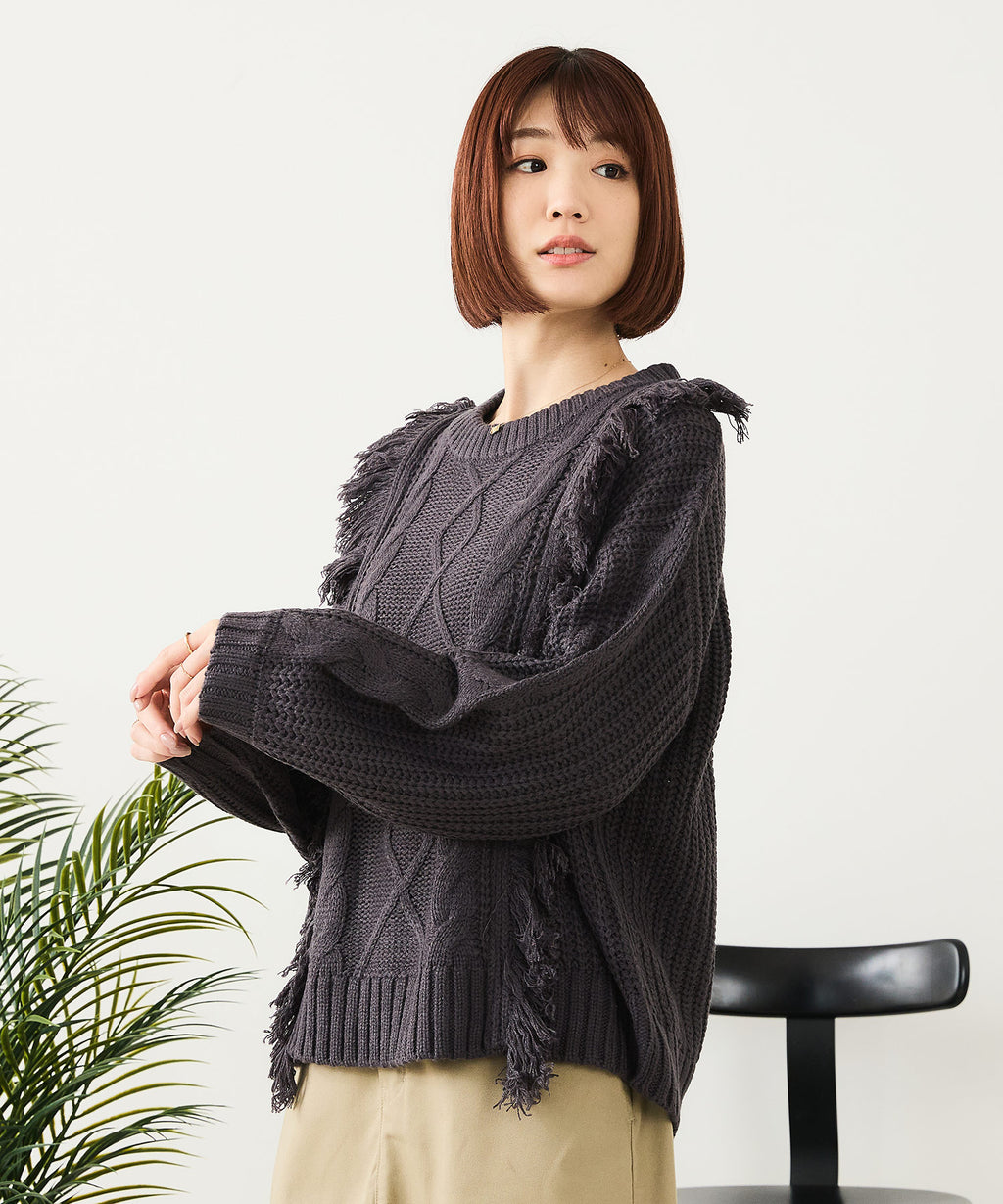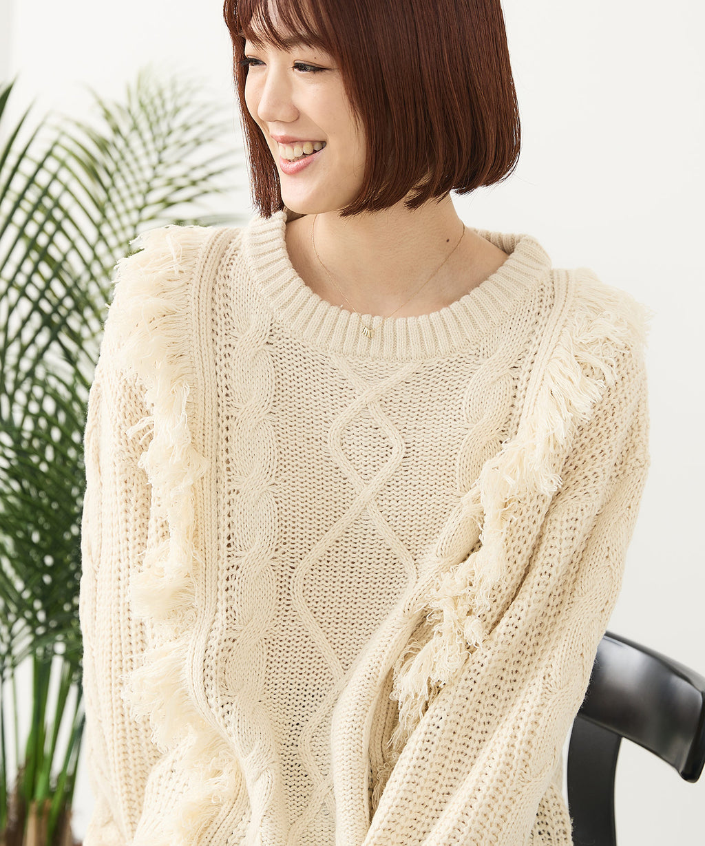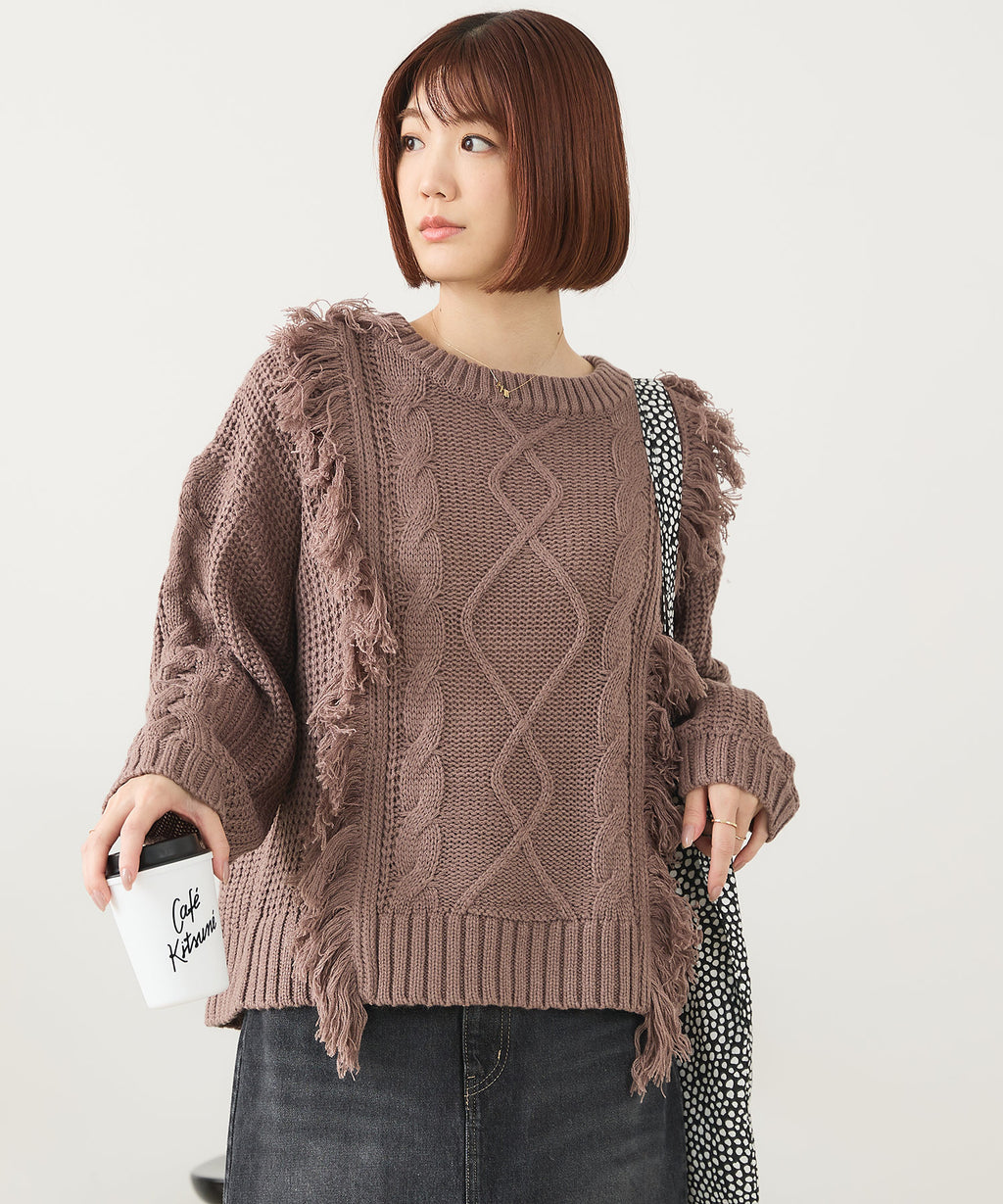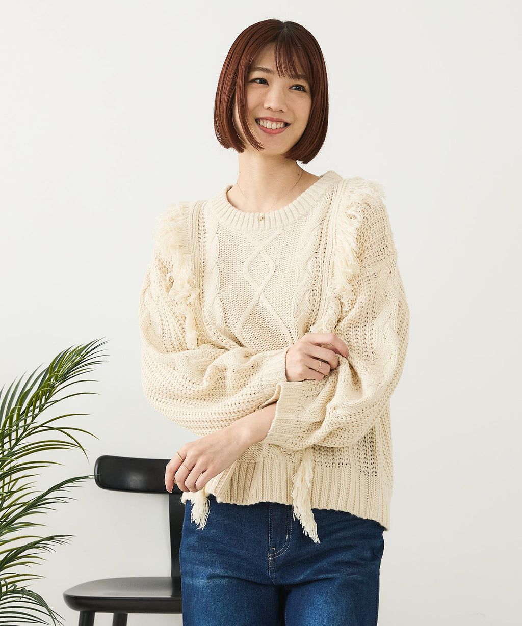◆フリンジが特徴的なゆったり着られるニットプルオーバー◆