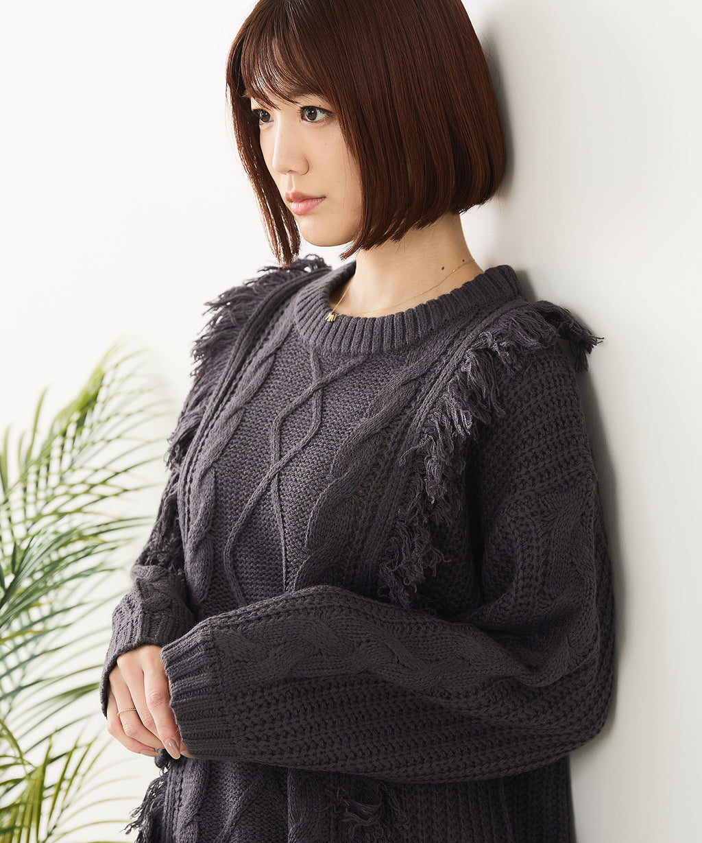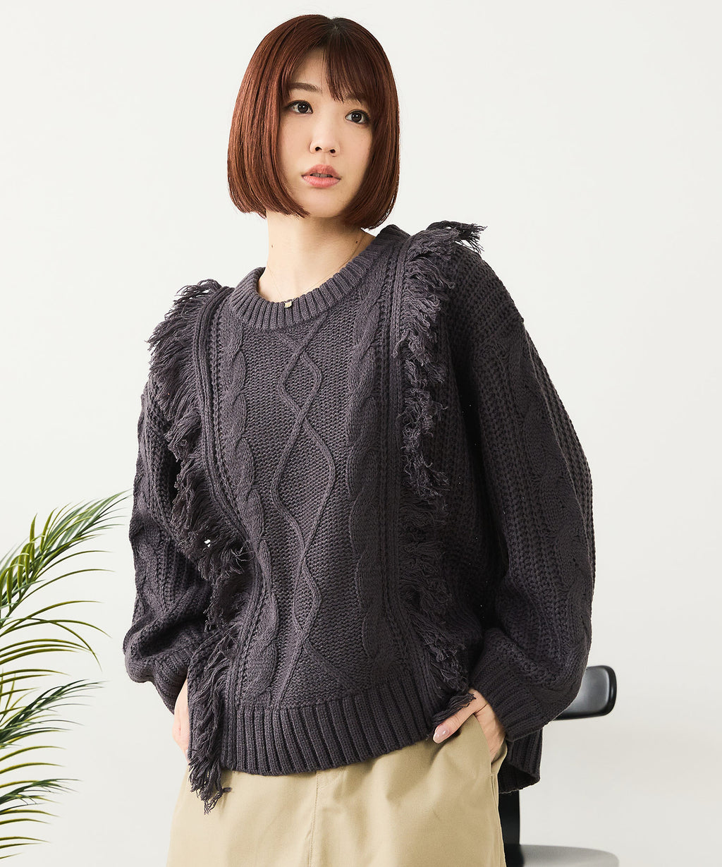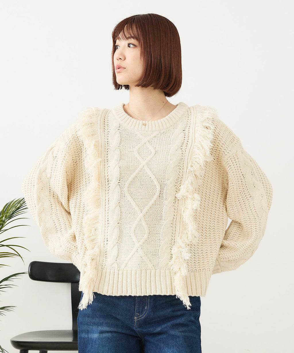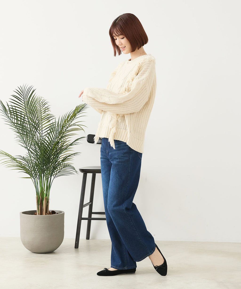 ◆フリンジが特徴的なゆったり着られるニットプルオーバー◆