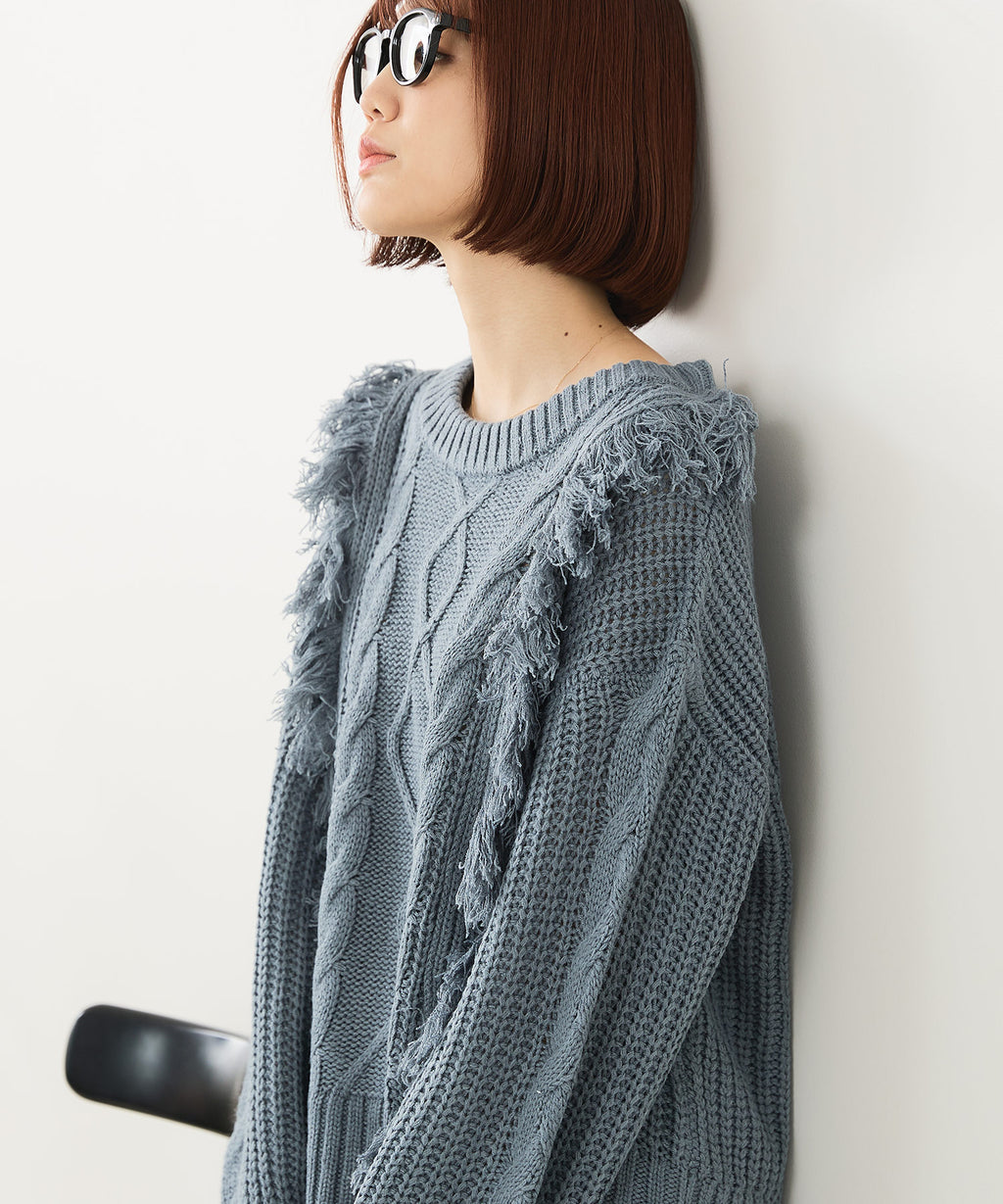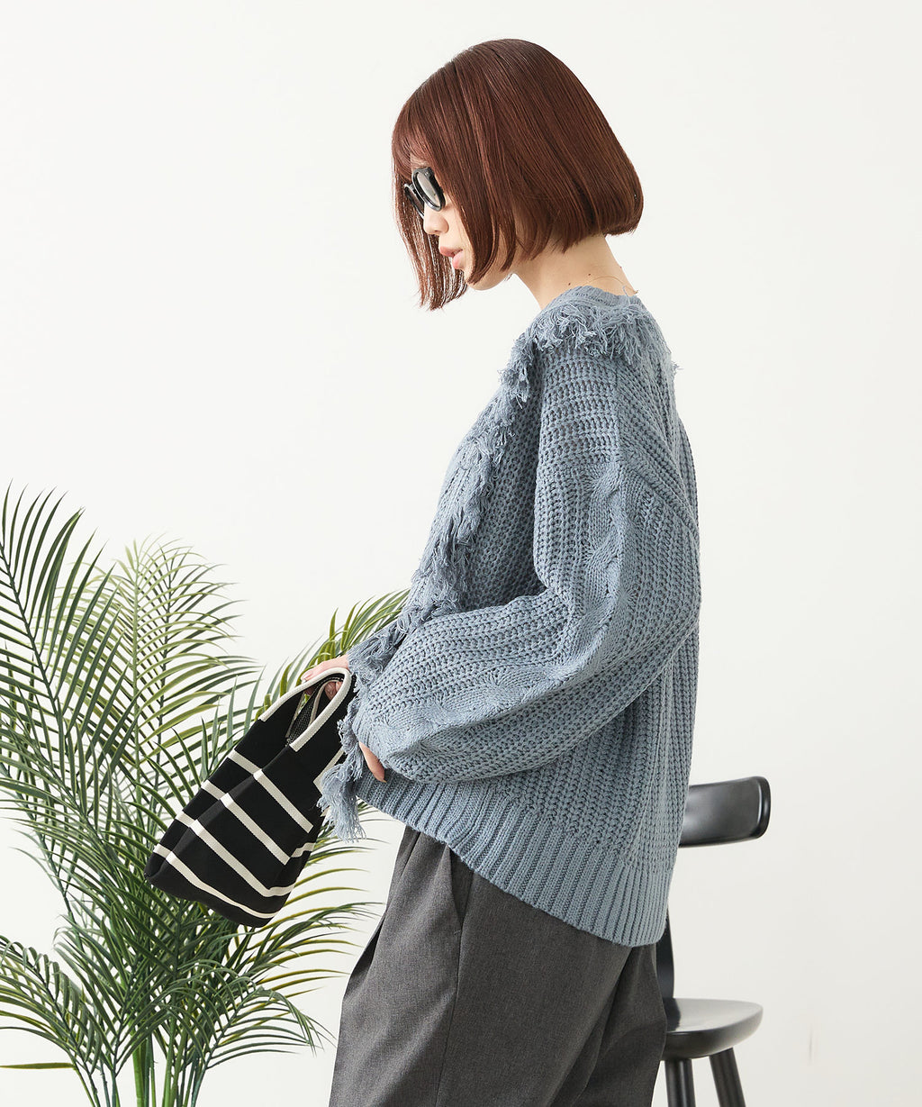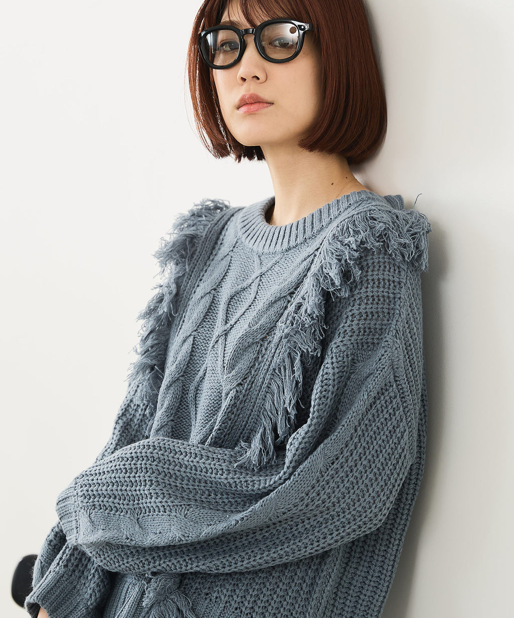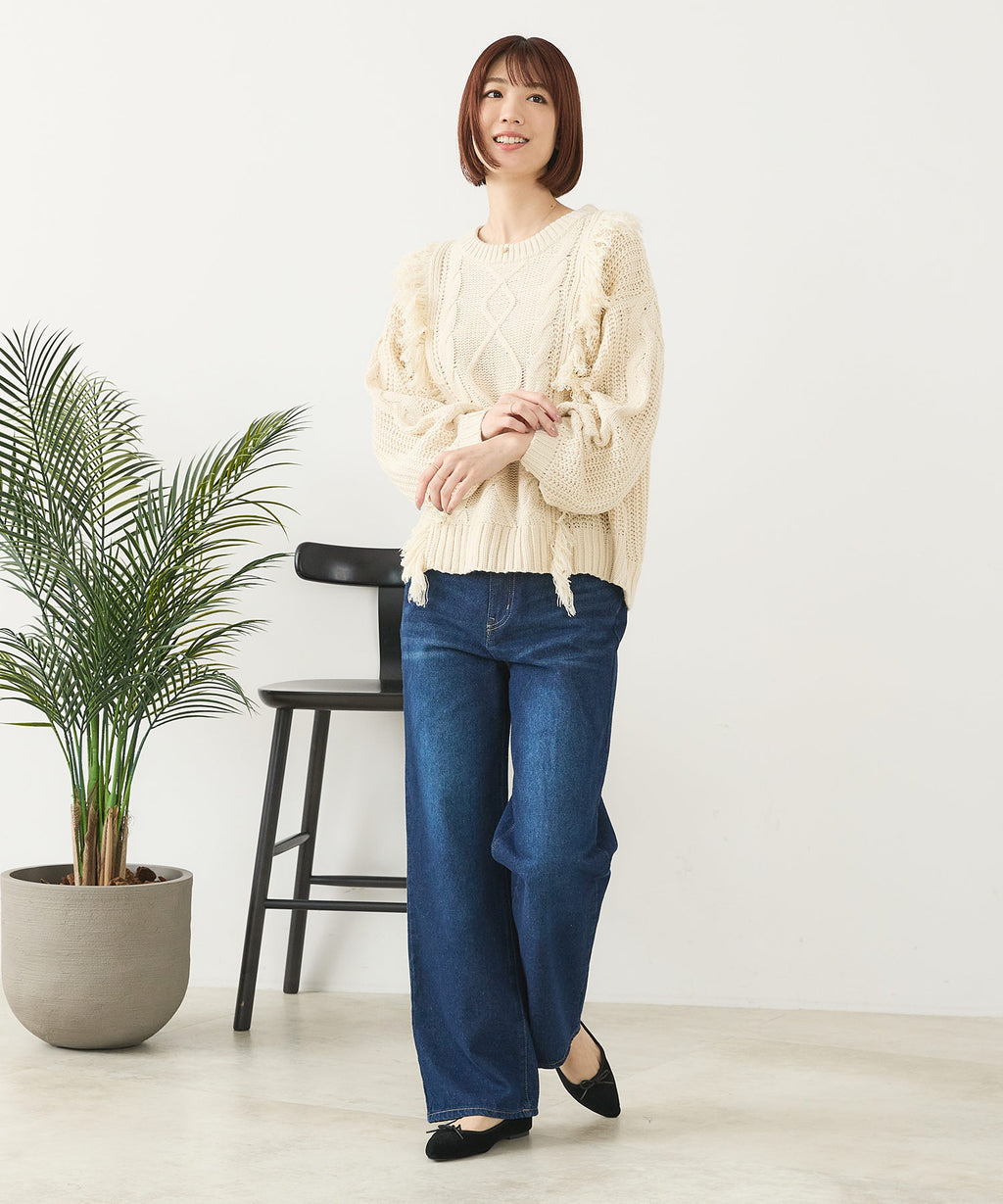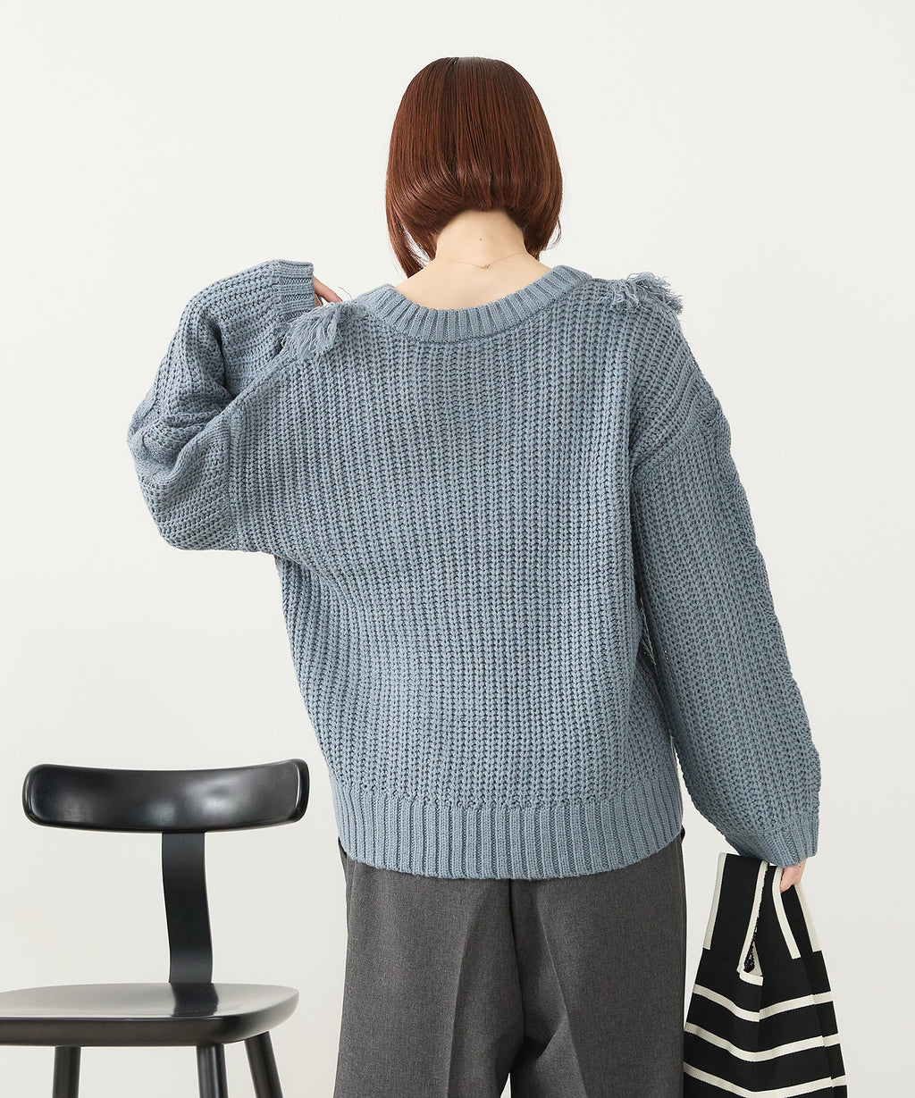 ◆フリンジが特徴的なゆったり着られるニットプルオーバー◆