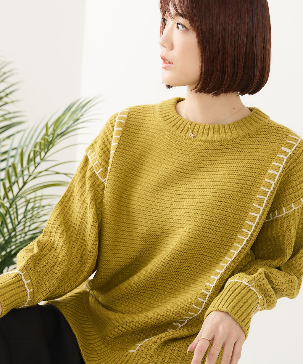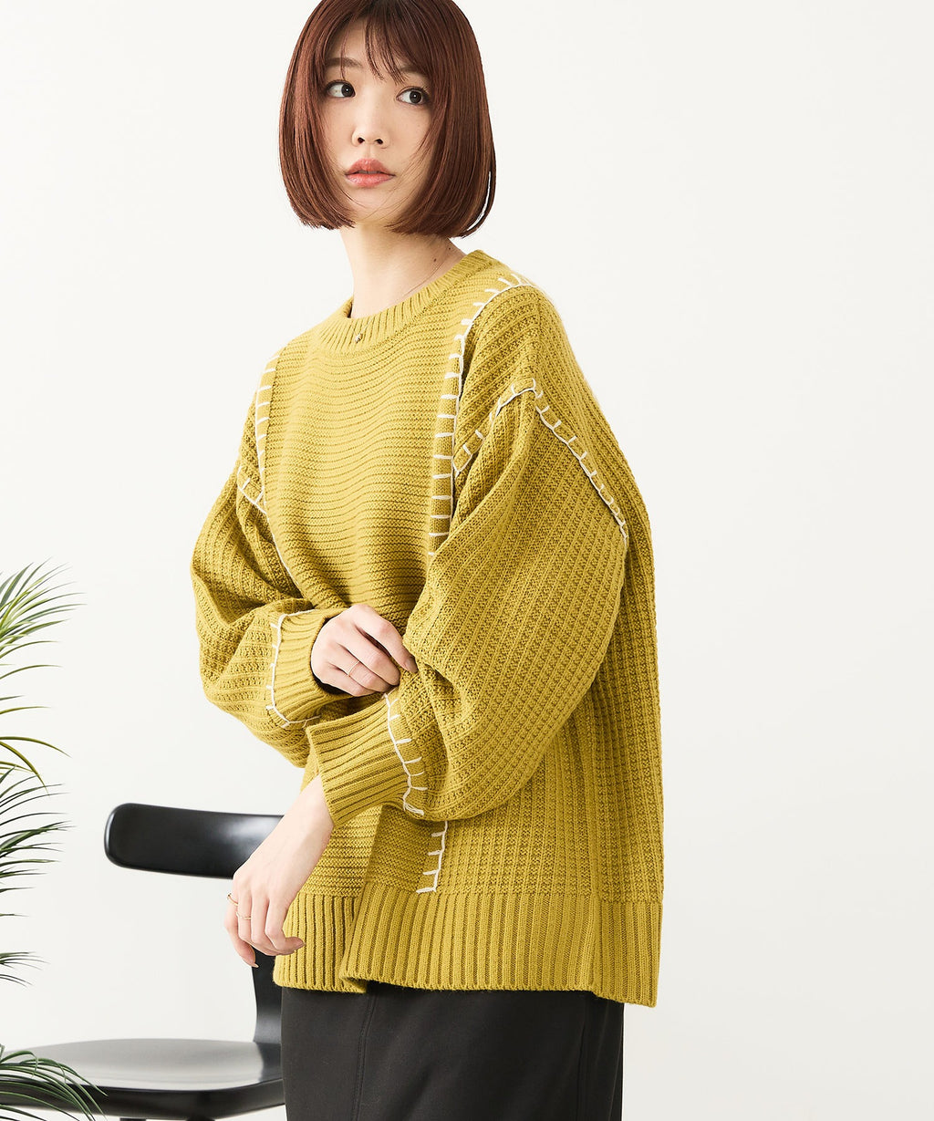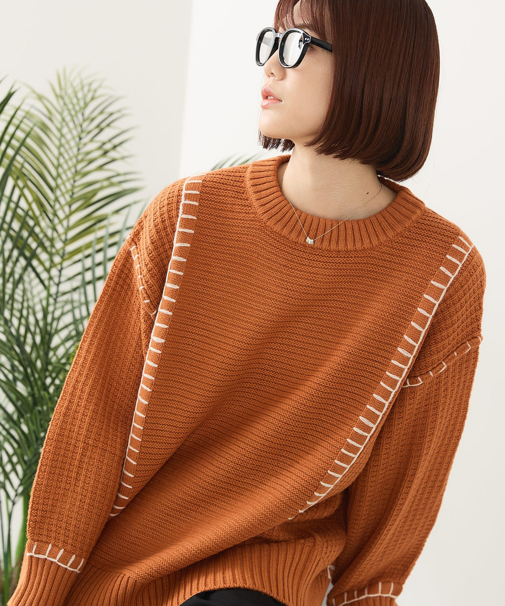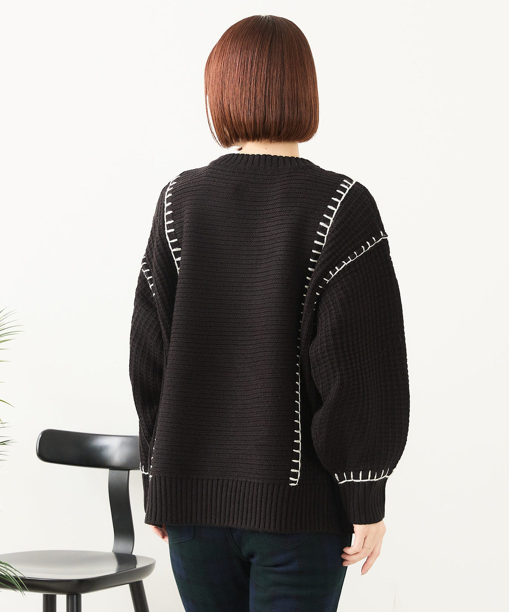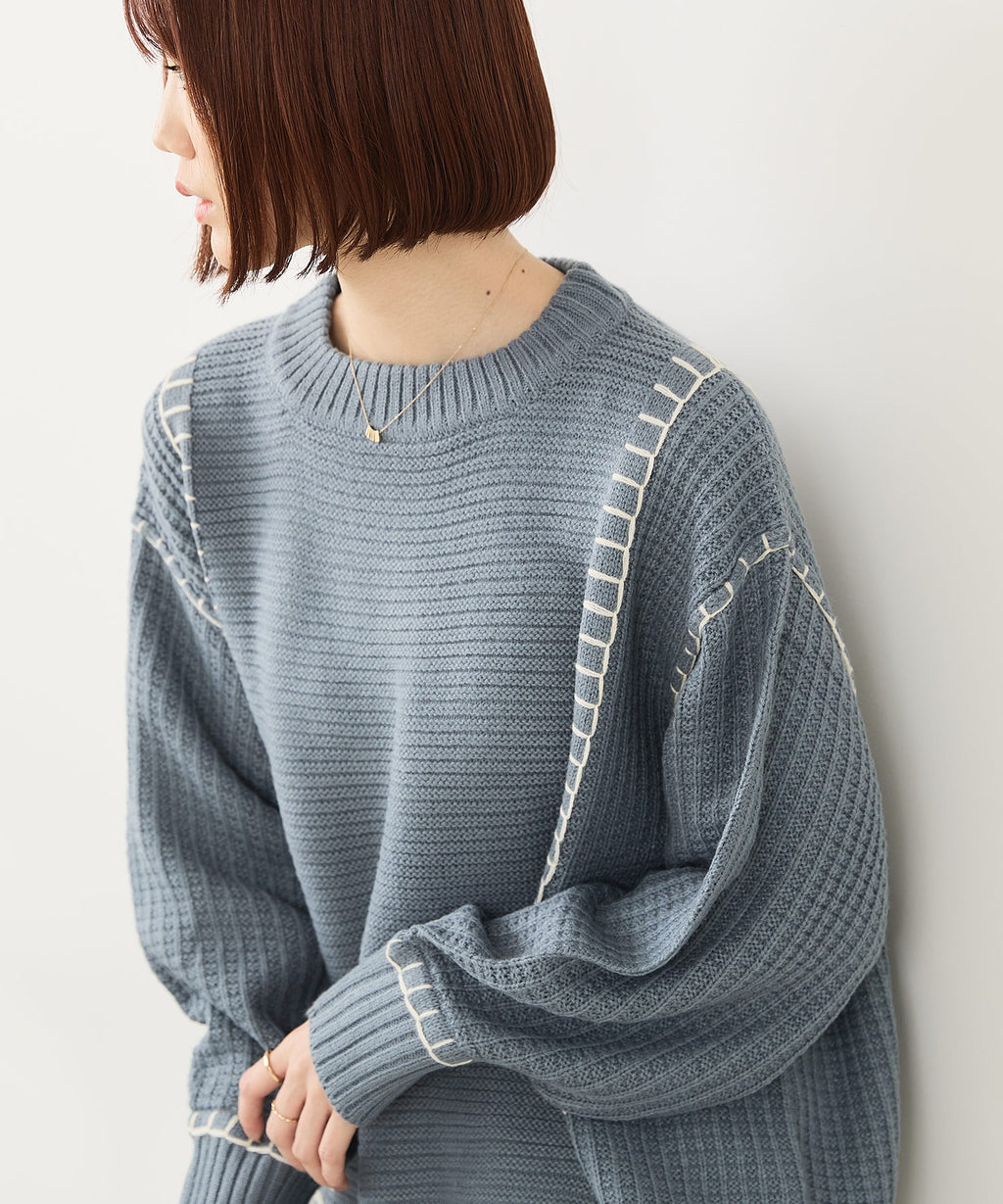 ◆ステッチ使いが目を惹くニットプルオーバー◆