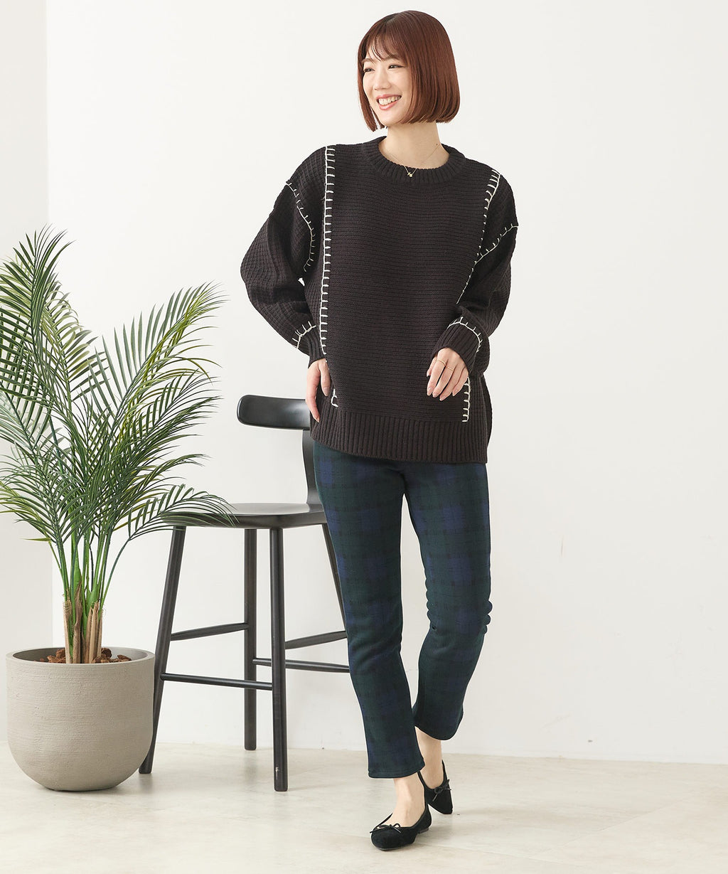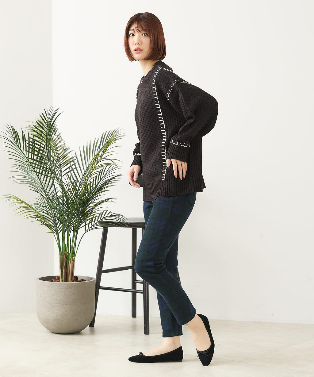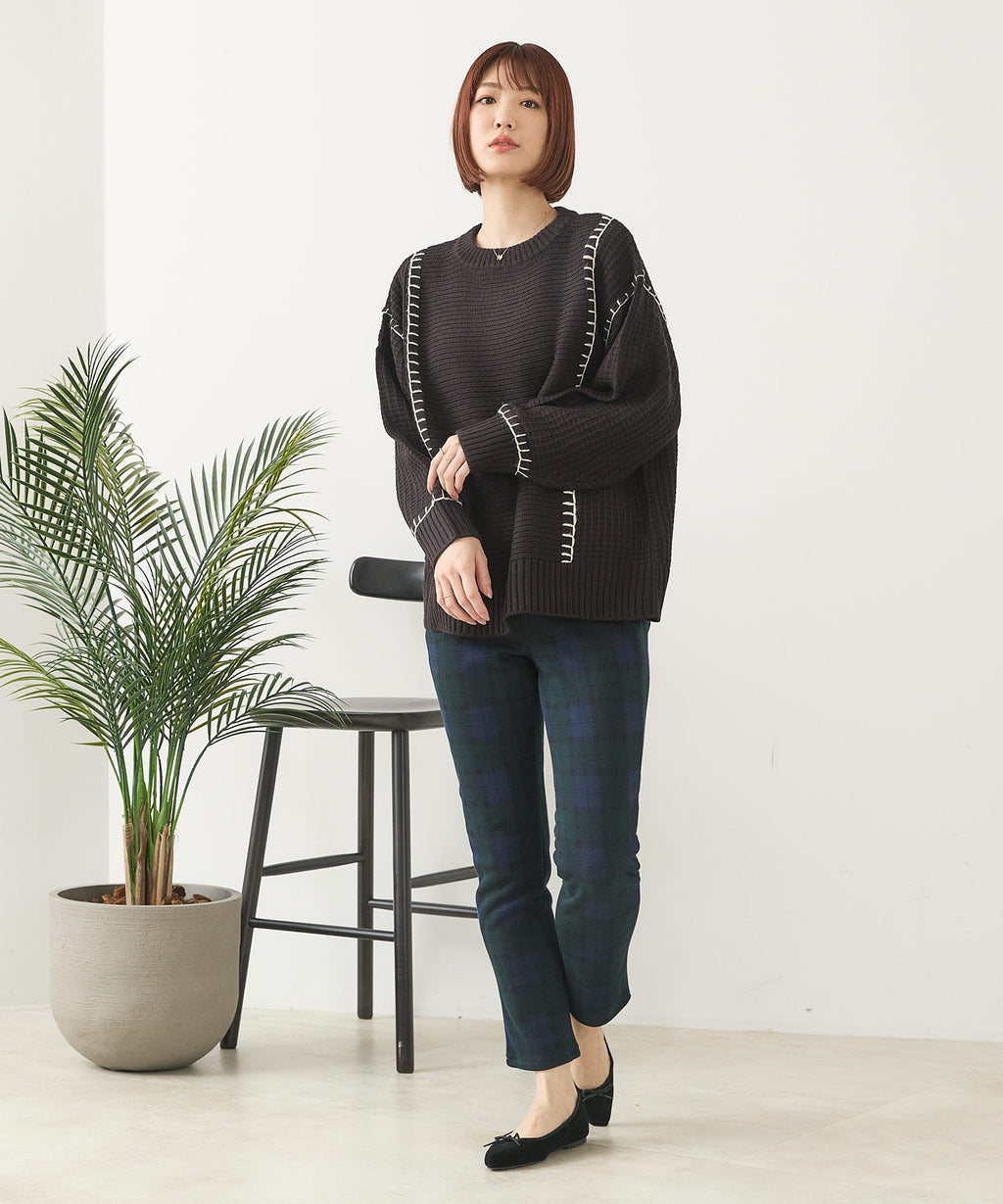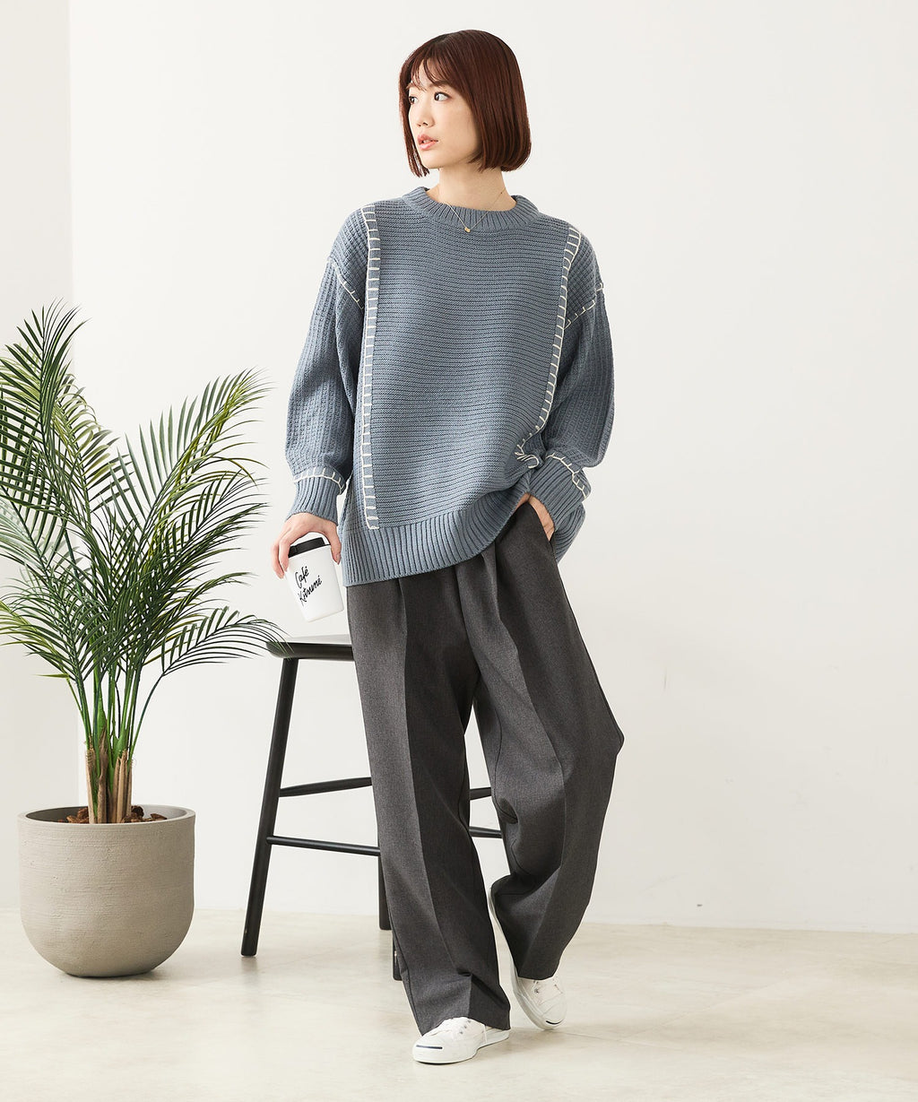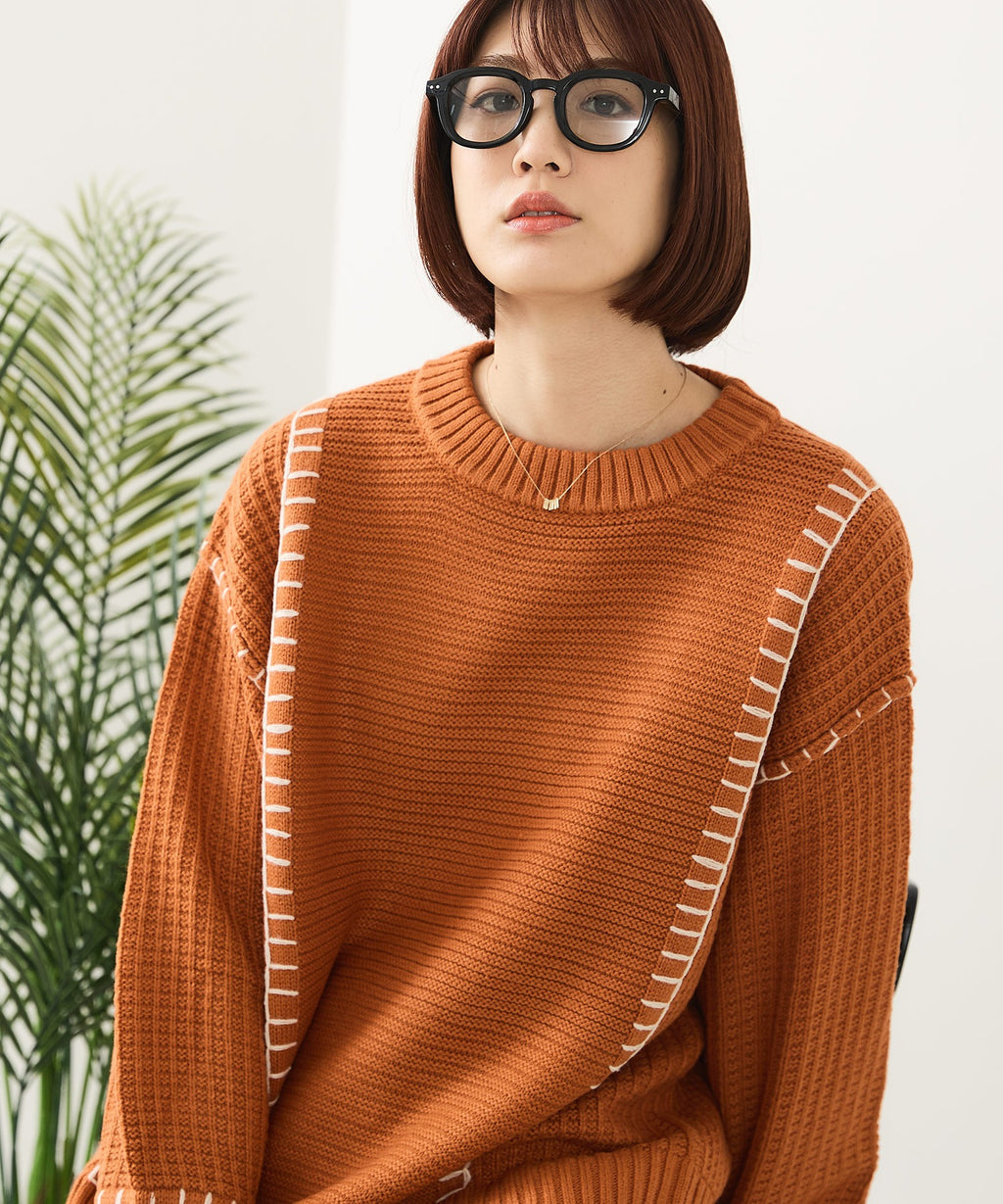 ◆ステッチ使いが目を惹くニットプルオーバー◆