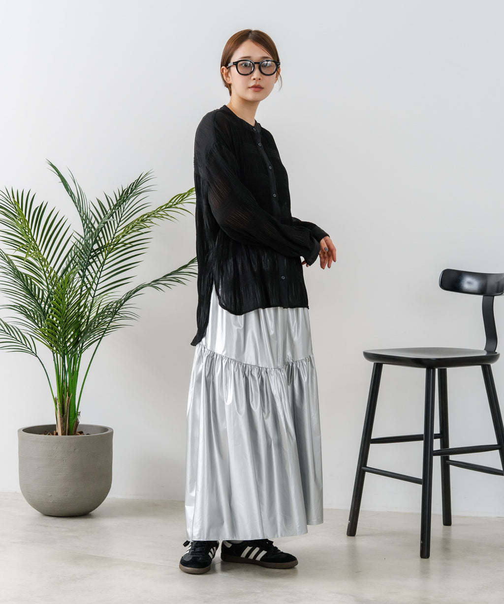 柔らかなマジョリカプリーツが上品な揺れ感を演出し、女性らしさを引き立てます。