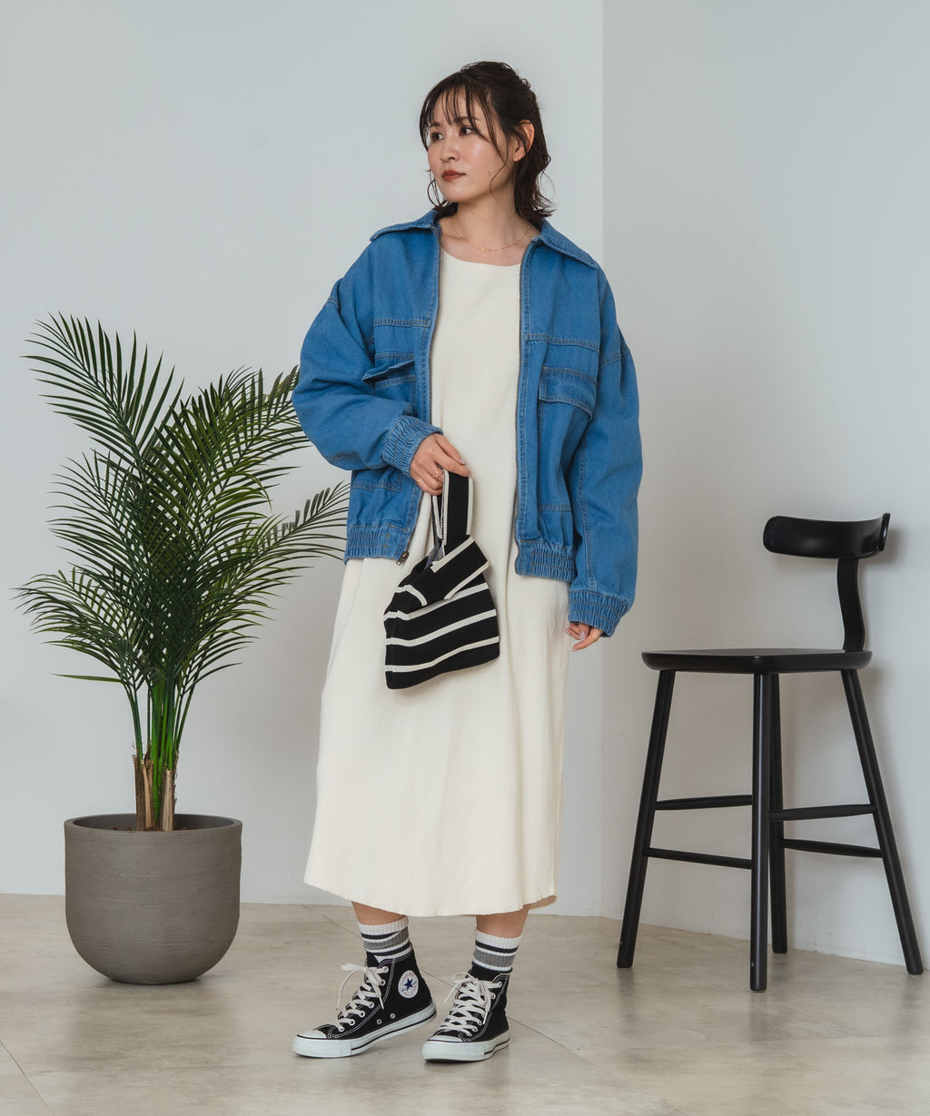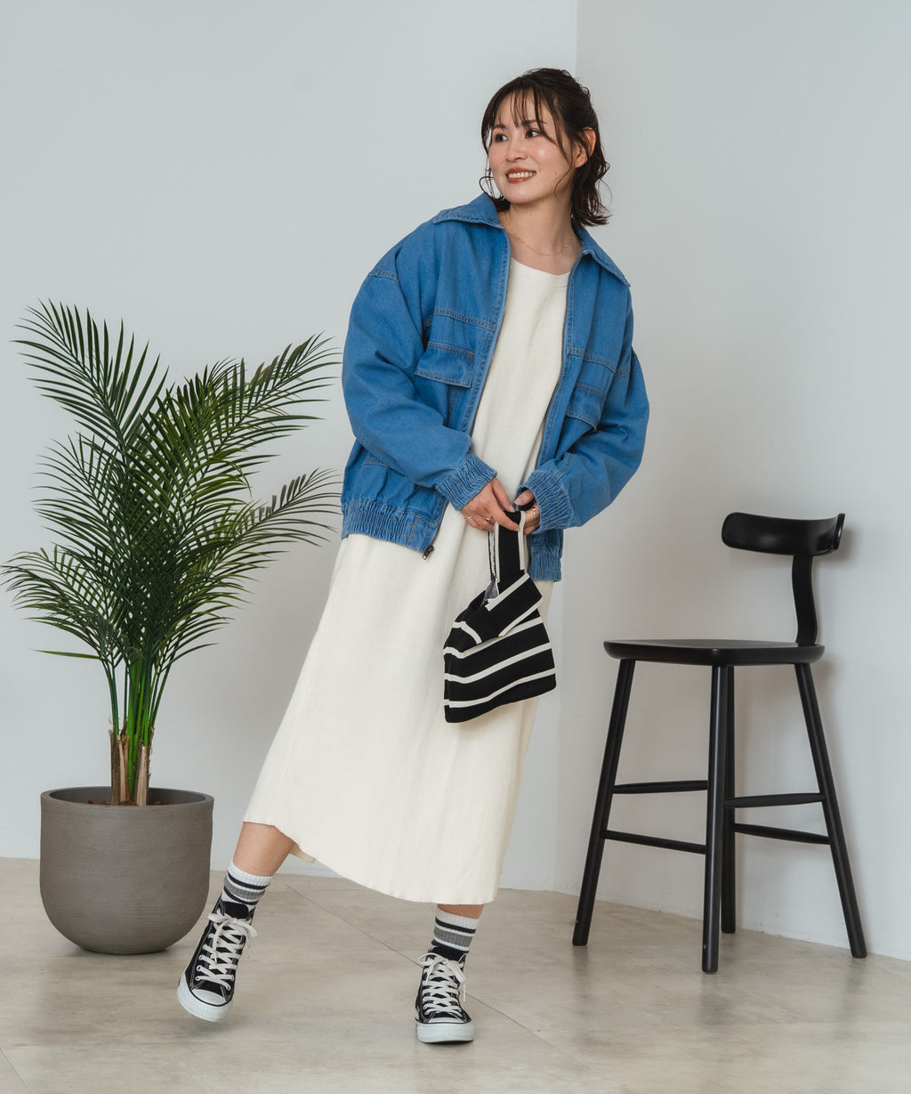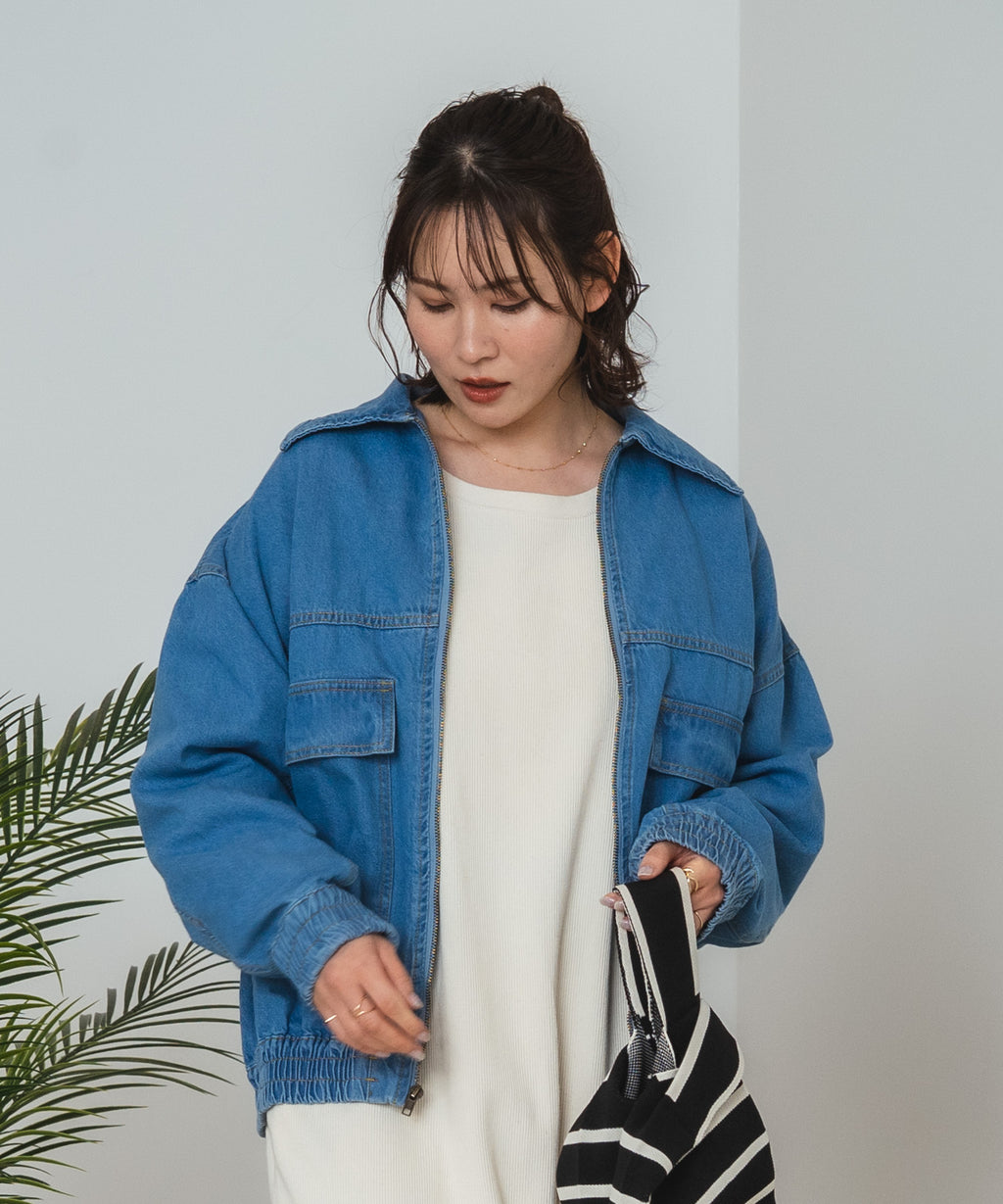 この春の新作として登場した、綿100%素材のデニムフライトジャケットは、肌触りが良くて着心地抜群。