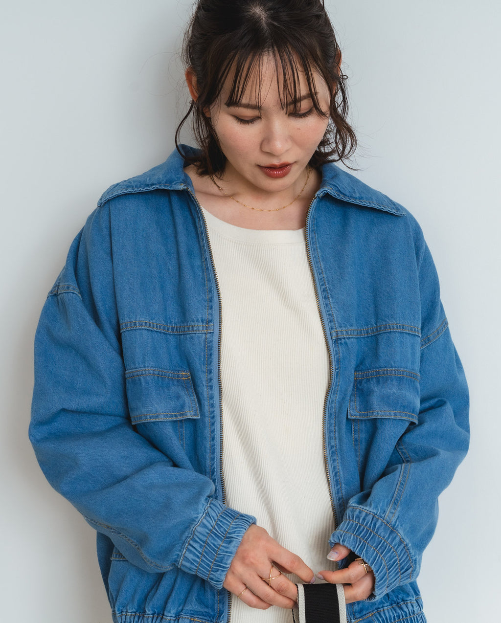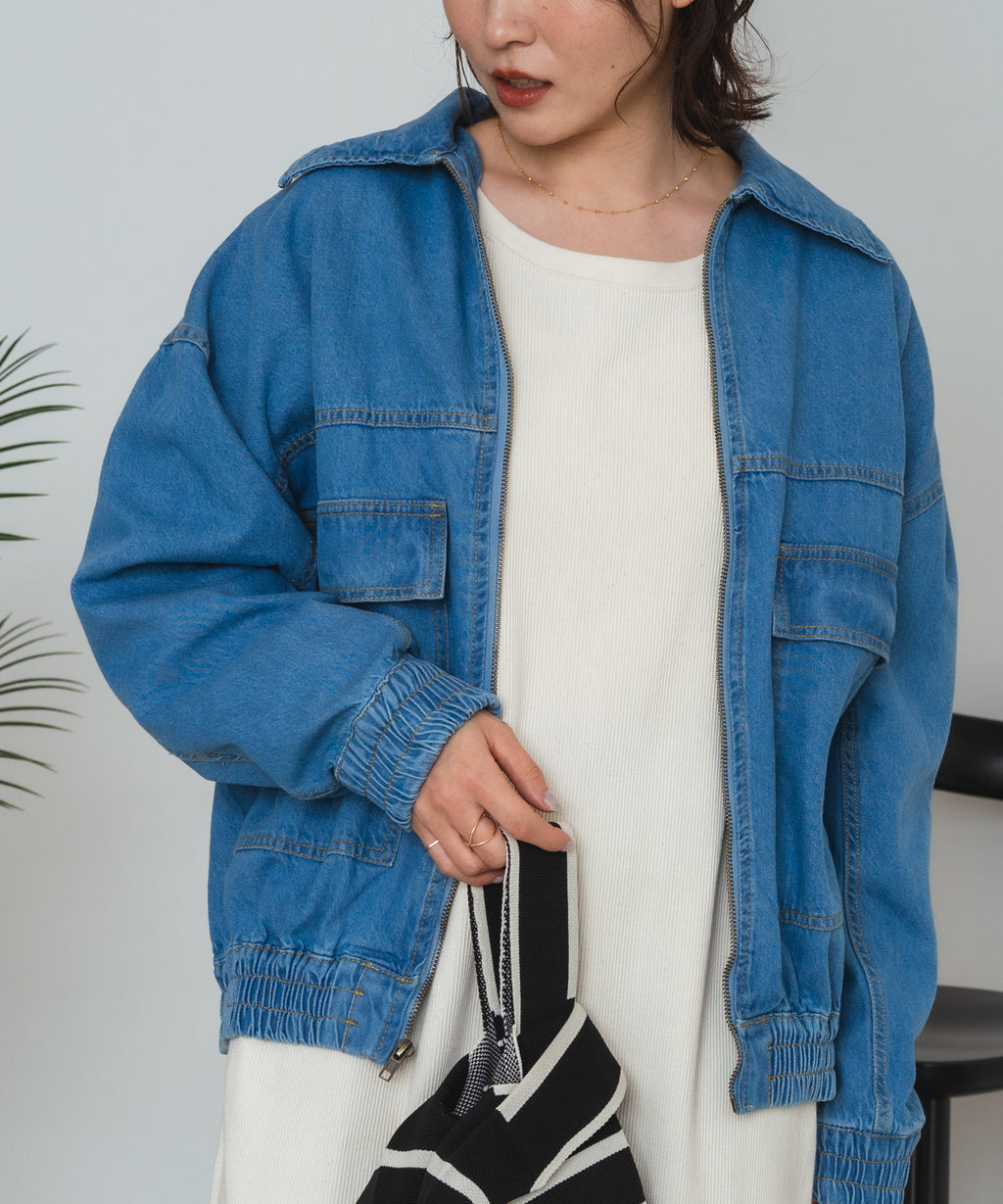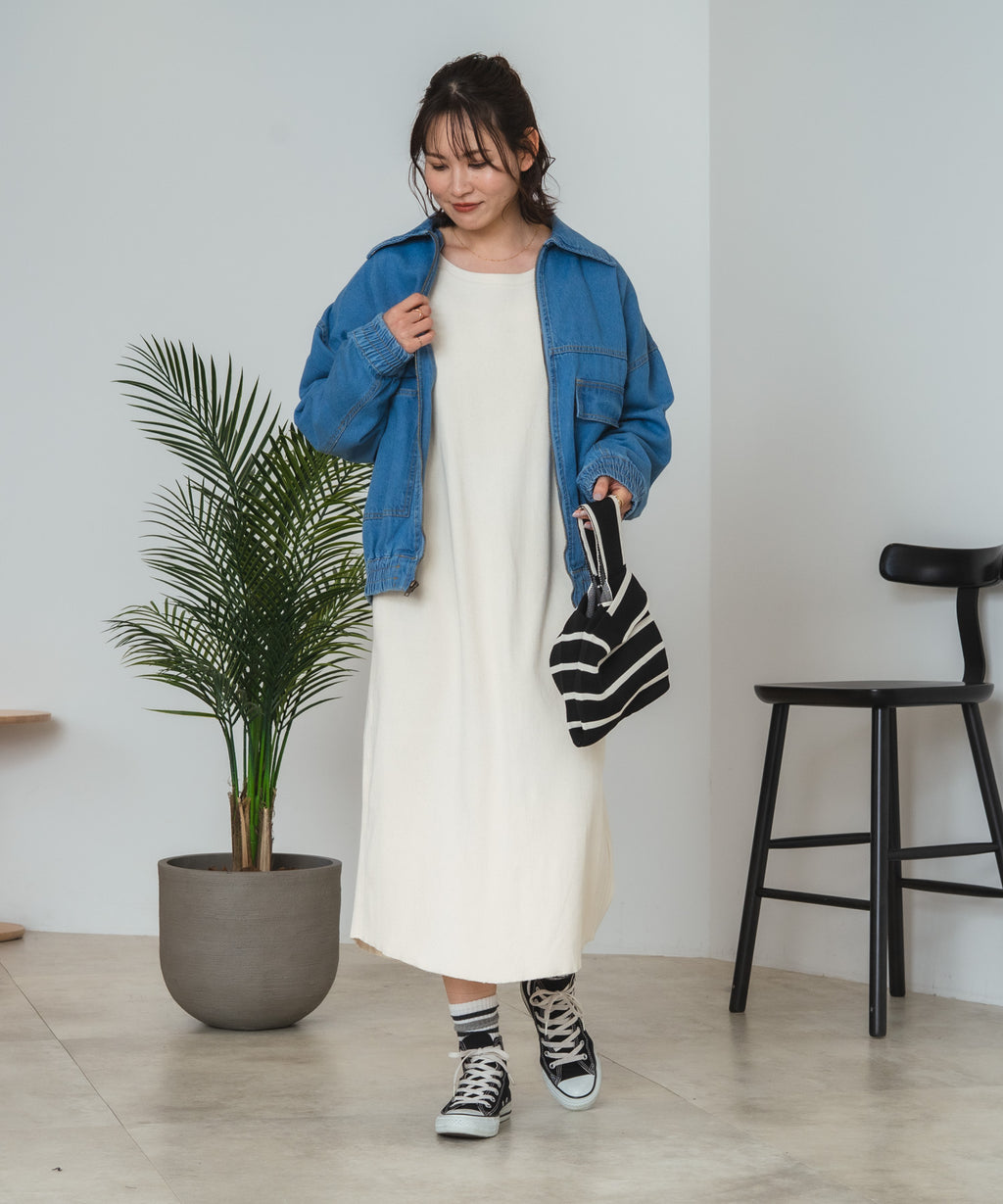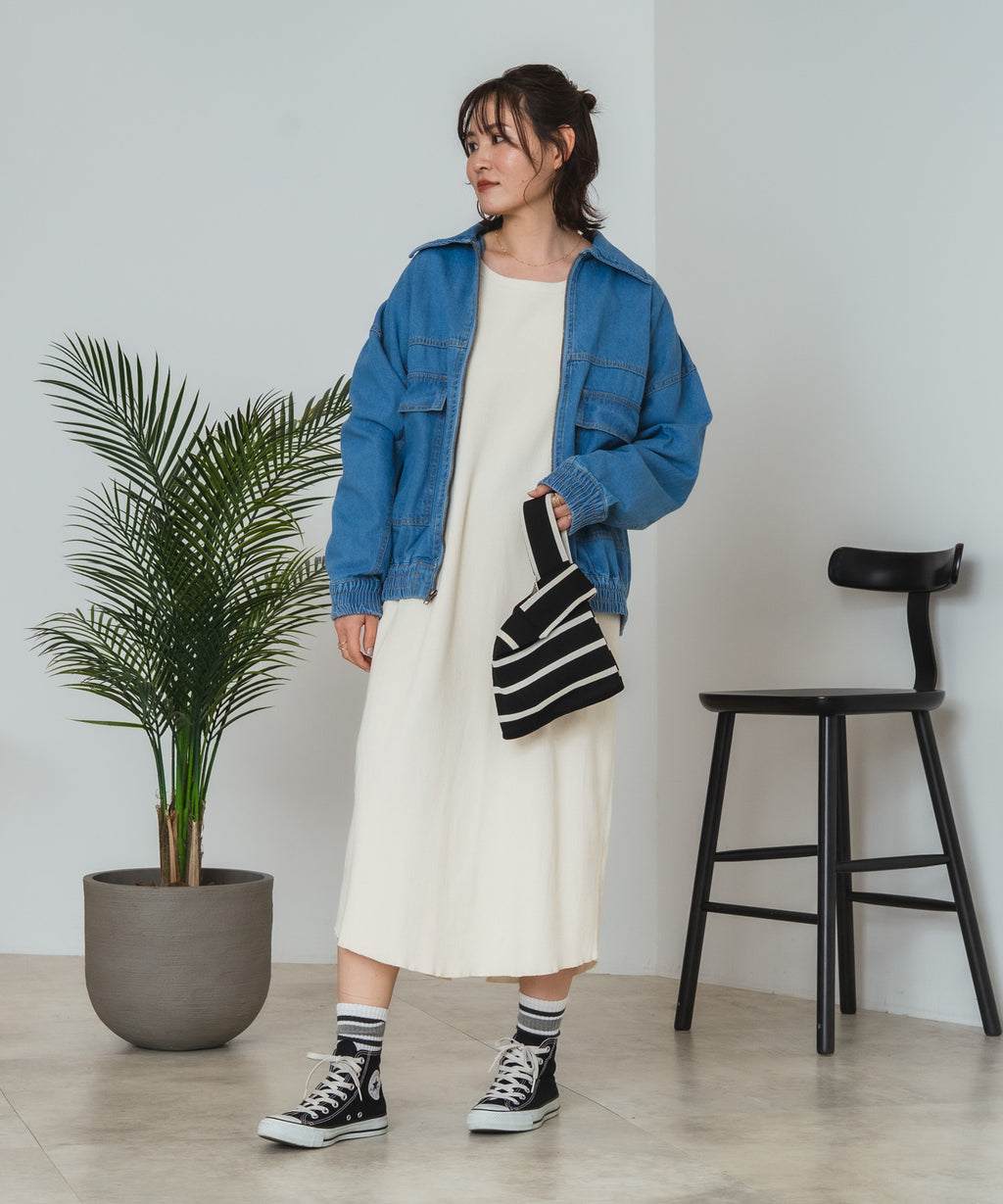 この春の新作として登場した、綿100%素材のデニムフライトジャケットは、肌触りが良くて着心地抜群。