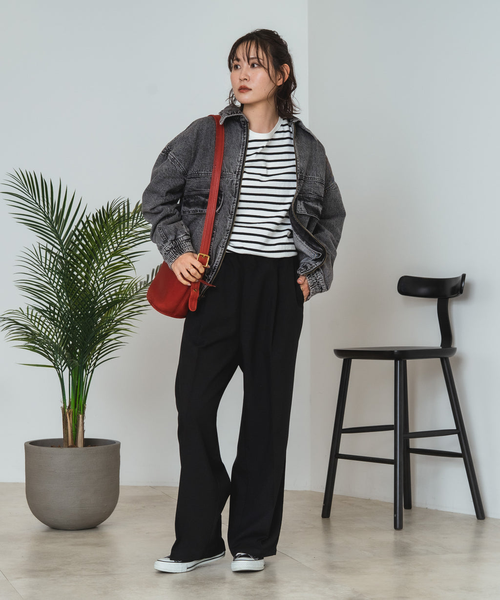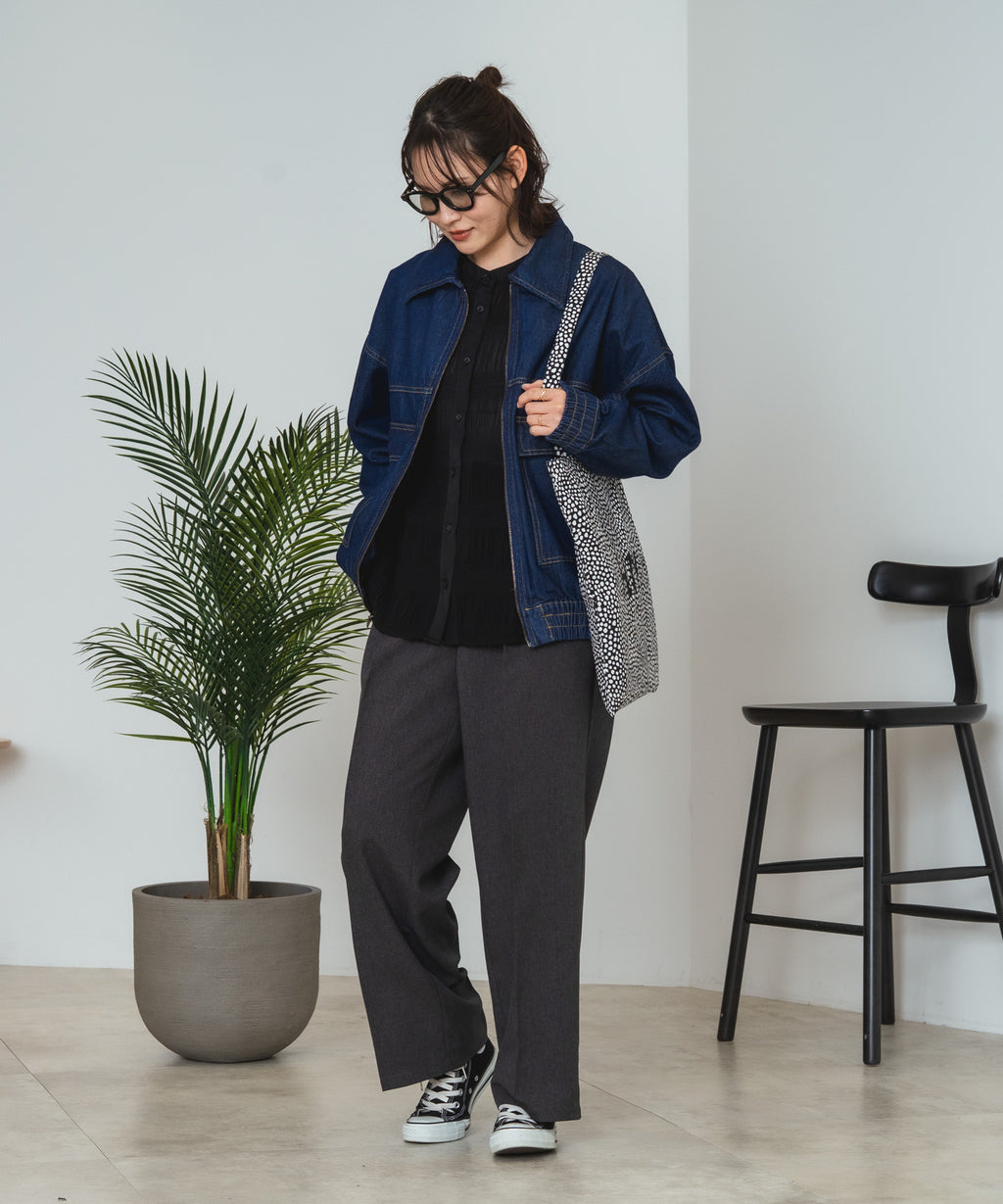同系色のパンツと合わせてセットアップ風のワントーンコーデもイマドキです。